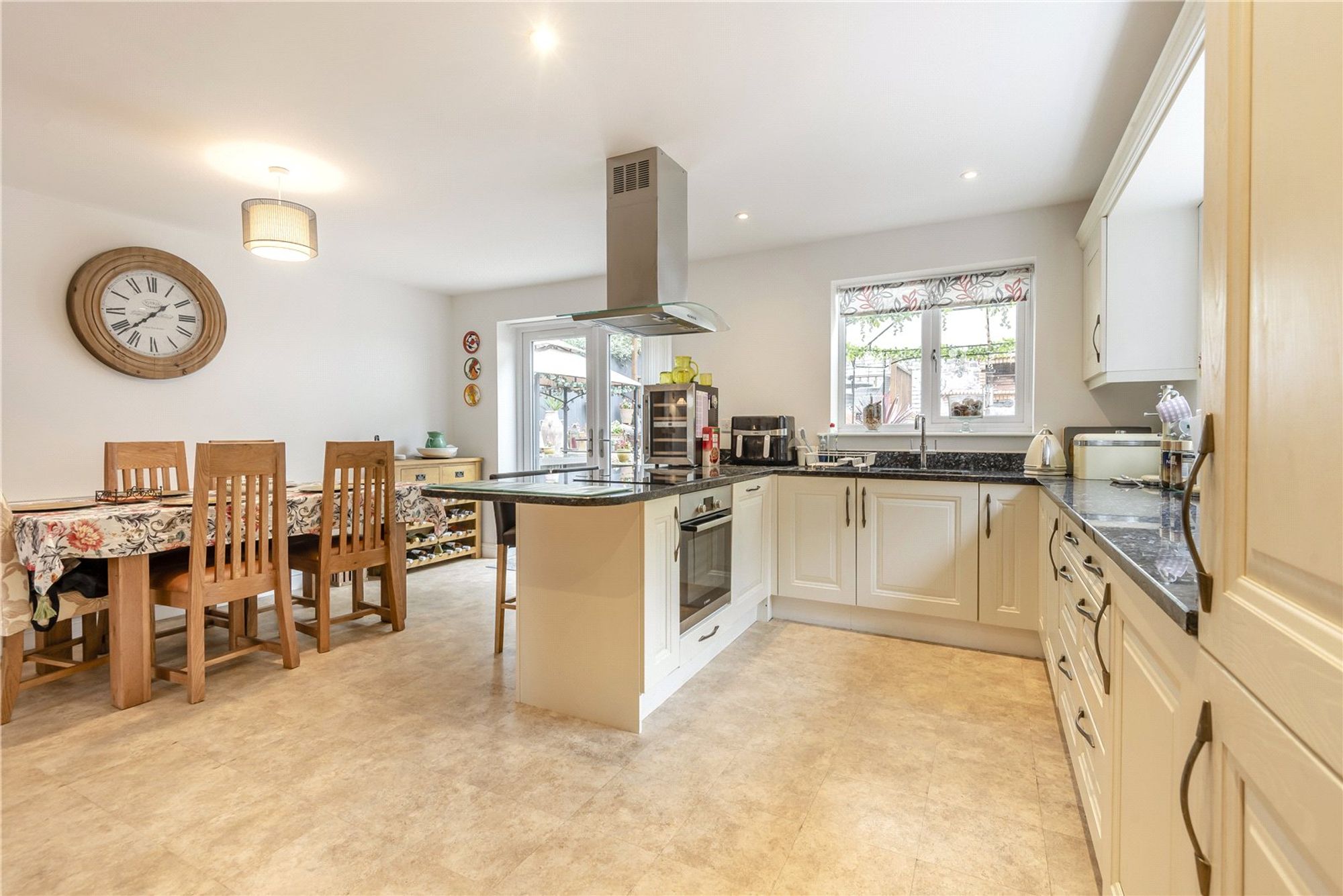 The property opens into a generous entrance hallway. The spacious lounge features a beautiful bay window overlooking the front aspect, filling the room with natural light. Double doors lead through to a bright and open-plan kitchen/diner, complete with a contemporary fitted kitchen and ample space for a six-seater dining table, ideal for family meals or entertaining. Additional ground floor amenities include a separate utility room and a convenient guest WC, enhancing the practicality of the layout.