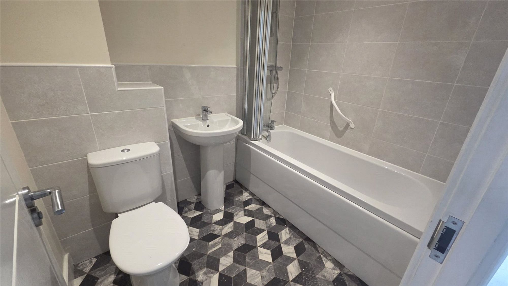 Upstairs, you’ll find two generous double bedrooms. Bedroom 1 is a comfortable main bedroom with plenty of room for furnishings. Bedroom 2 features built-in wardrobe space and offers versatility as a guest room, home office, or children’s bedroom. The modern family bathroom includes a bath with shower over, washbasin, and WC.