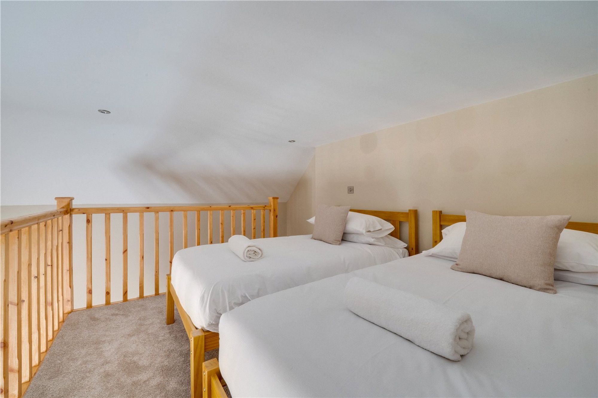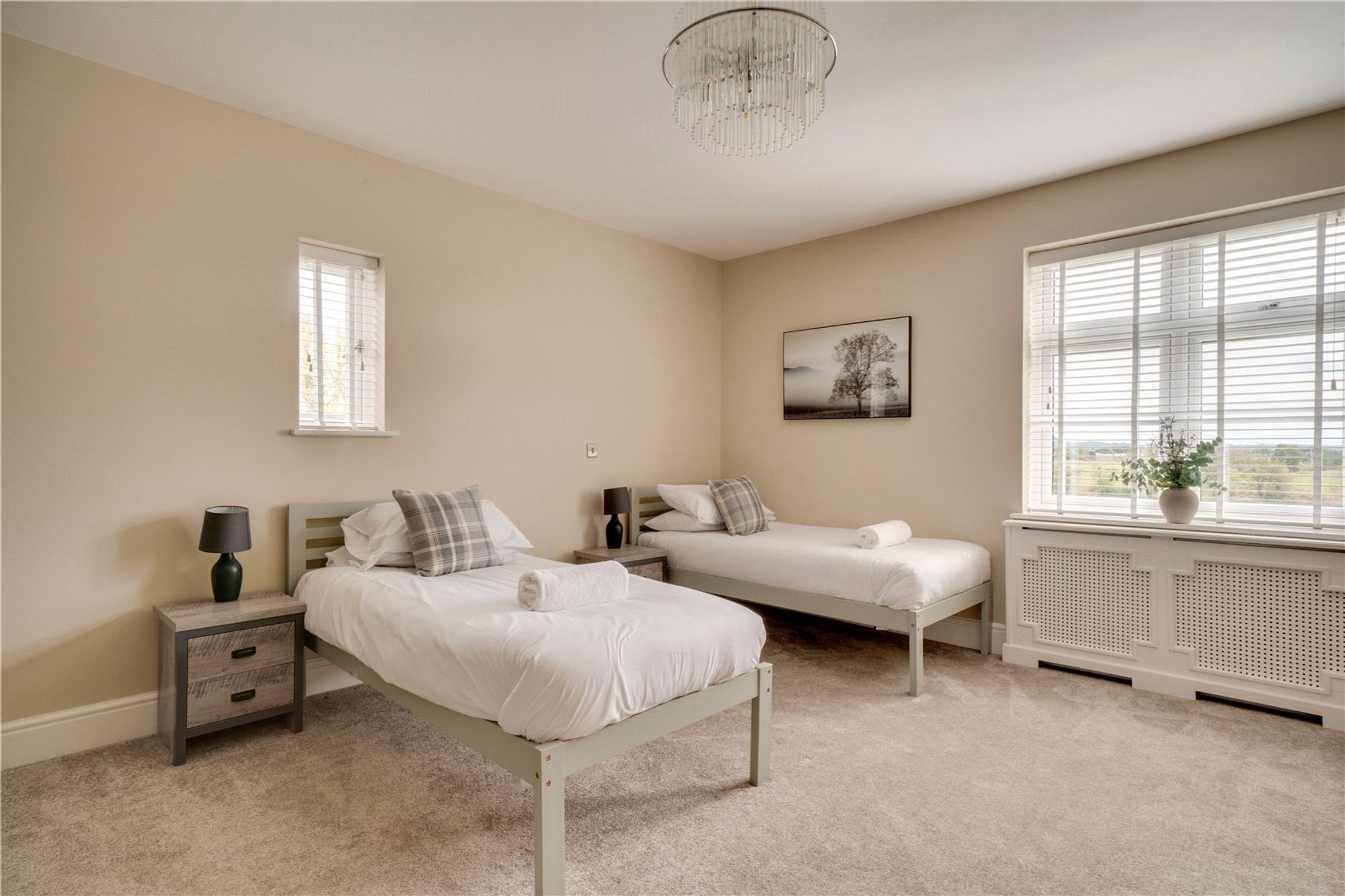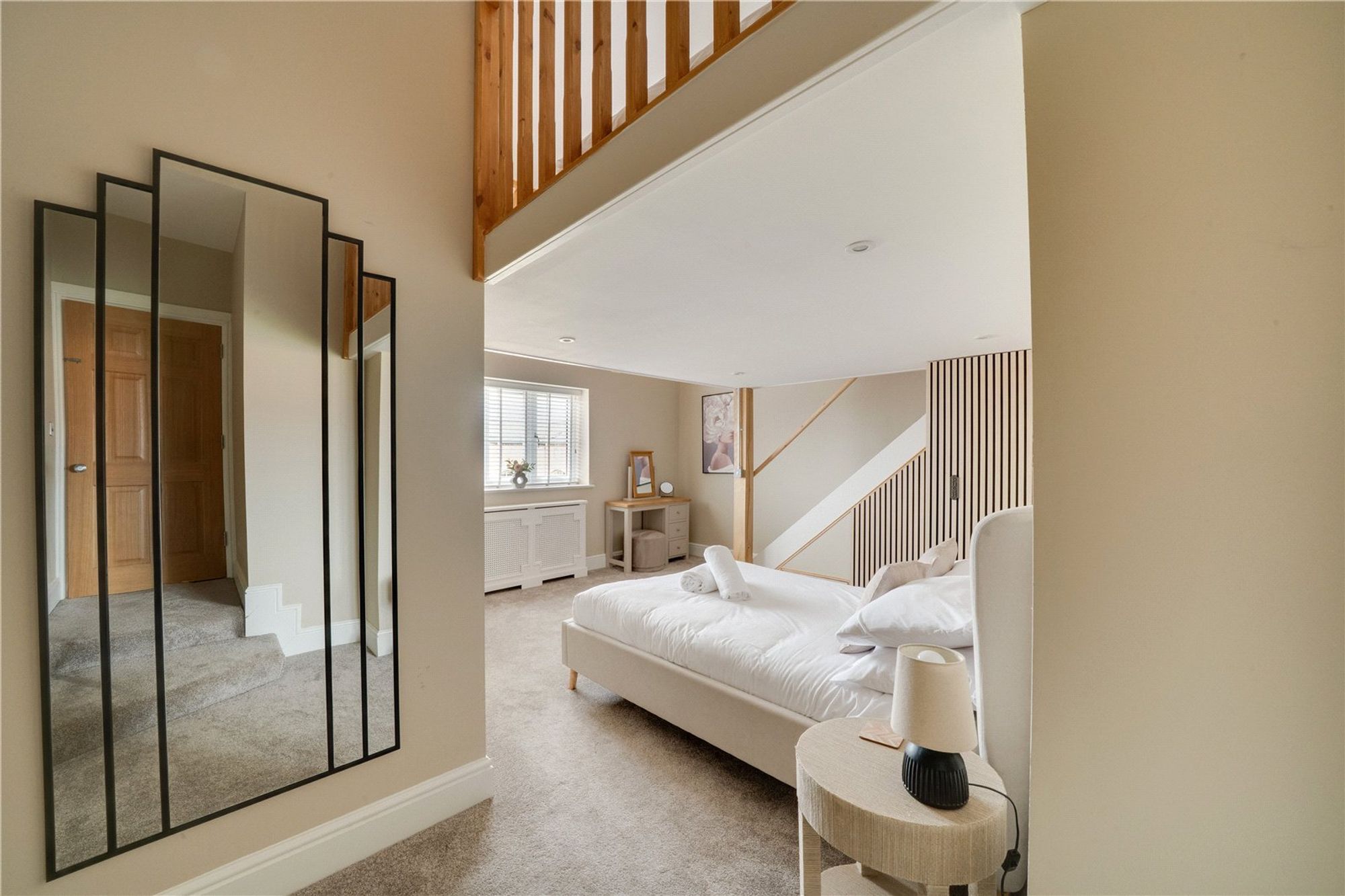 The impressive accommodation continues in style with seven beautifully appointed bedrooms. A private king-size with en-suite is accessed via the dining room staircase, while the remaining six—each with countryside views and plush finishes—are reached from the main staircase. Most enjoy en-suite facilities, while the family bedroom features a mezzanine twin room, and one twin is served by a luxurious family bathroom.