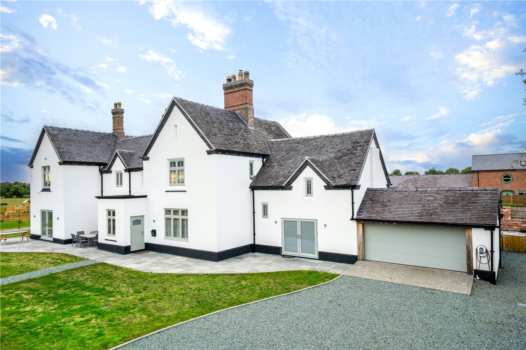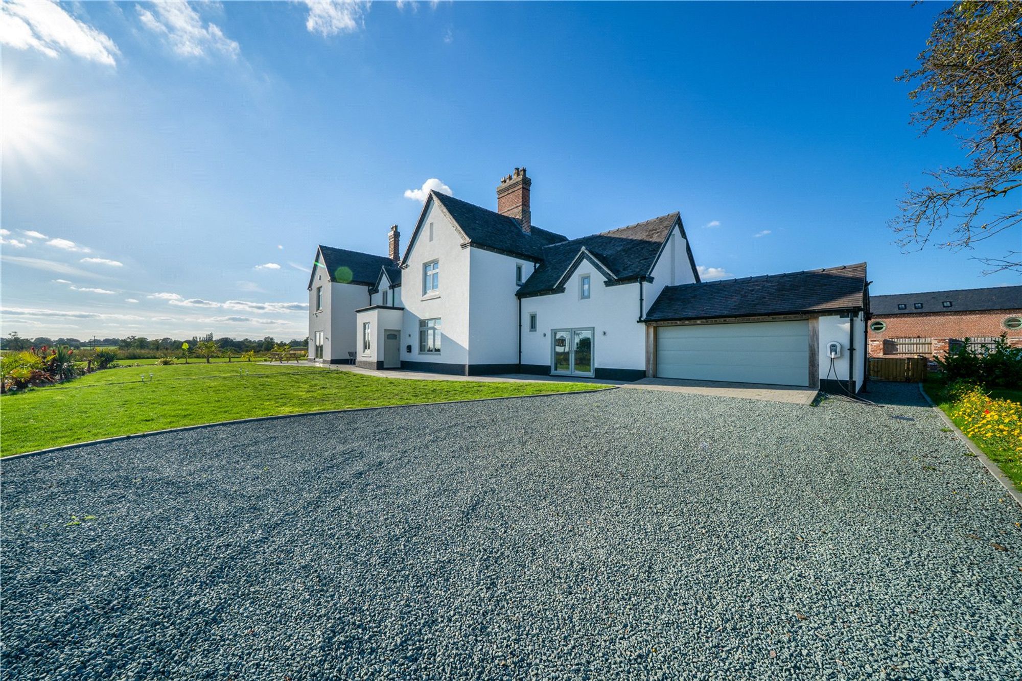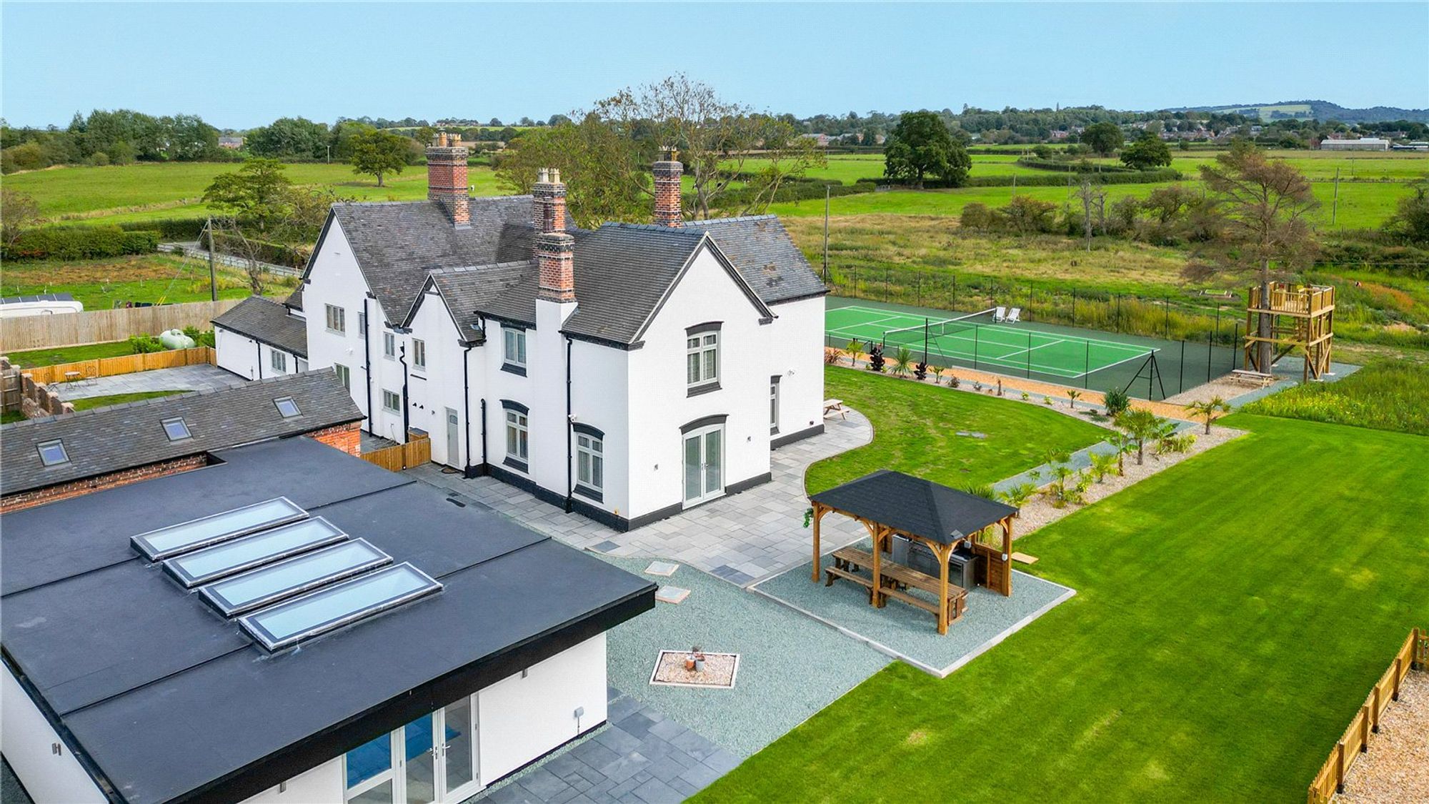 This exceptional seven bedroom country residence, located just north of Shrewsbury, occupies approx 5 acres in a beautiful rural setting in the highly desirable county of Shropshire. The property has undergone an extensive and thoughtful renovation, resulting in an impressive home with striking white render, which perfectly contrasts against the new roof and sits proudly at the end of the long, private drive.