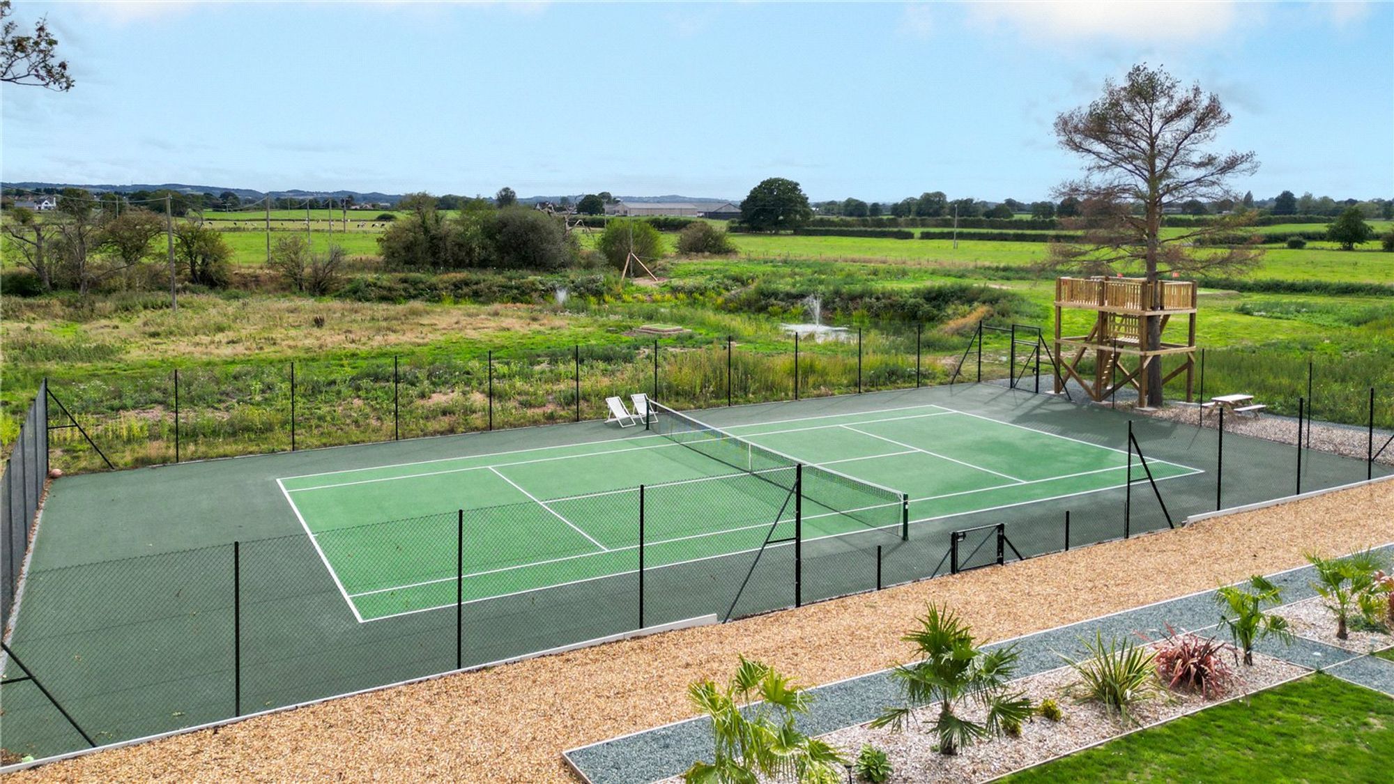 The generous grounds invite exploration, where hares and rabbits dart across the meadow and owls call from the trees at dusk. Outdoor living is equally inspiring, with a large patio, fully equipped outdoor kitchen, and summerhouse. The outdoors provides plenty of entertainment for both adults and children alike with a enclosed children’s playpark, zip line for the adventurous, tennis court and getting green with four tee’s for keen golfers to practise their chip and put. Ample parking and double garage ensures plenty of space for all family and guests.