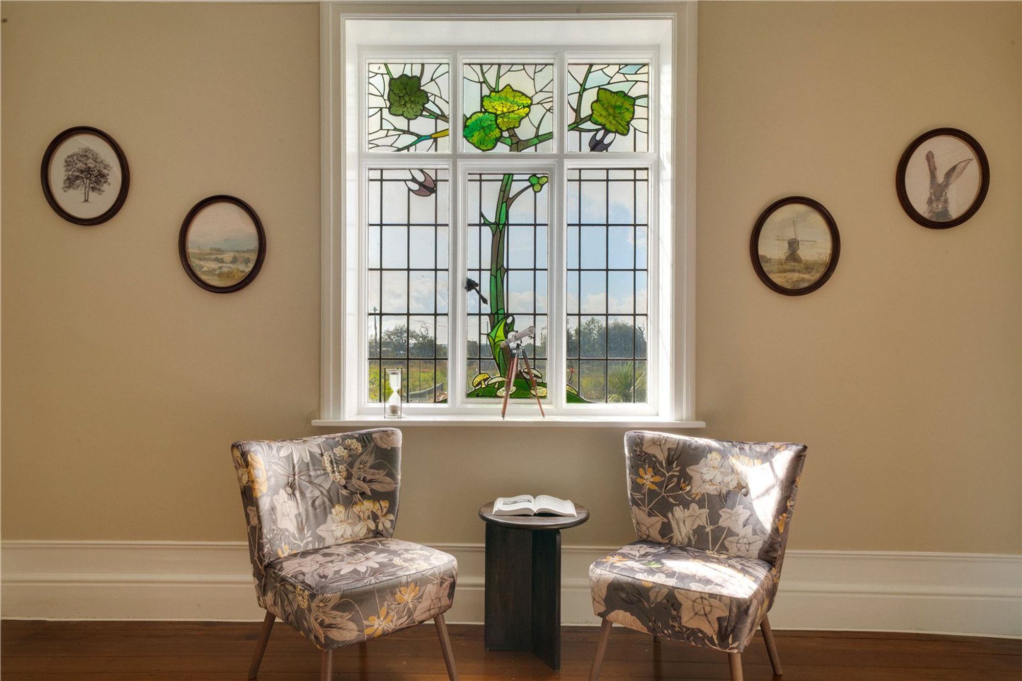 Step into the grand entrance hall, where original features such as the traditional staircase and a striking stained-glass window are complemented by elegant modern décor. Practicality meets style in the utility and boot room, complete with laundry facilities and a WC, ideal for drying dogs and storing walking gear after a day outdoors.