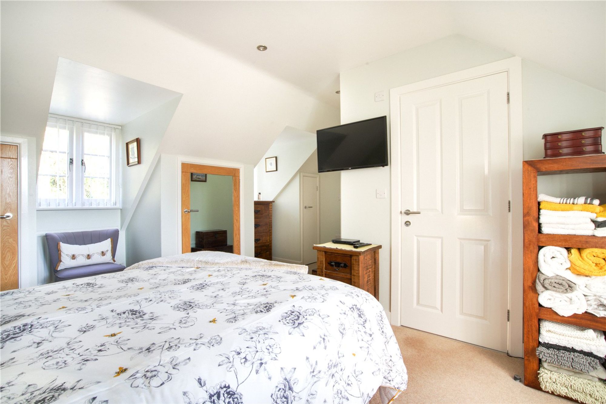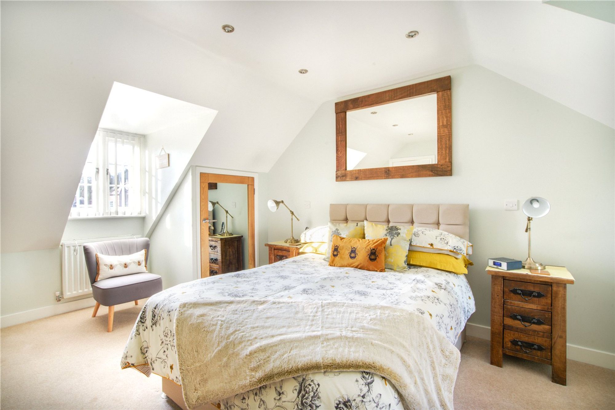 The first floor has two bedrooms, one benefitting from bespoke storage and a family bathroom.