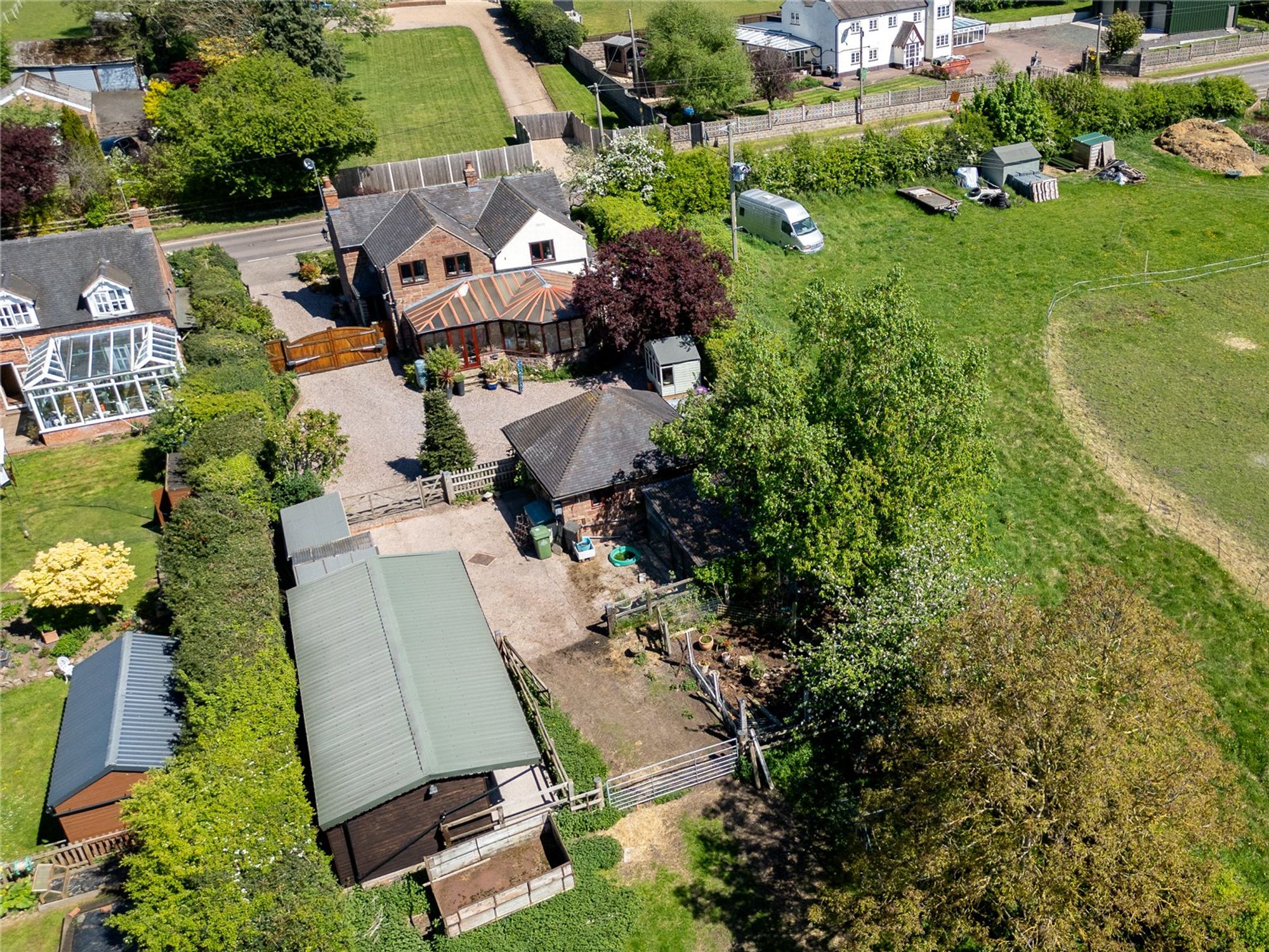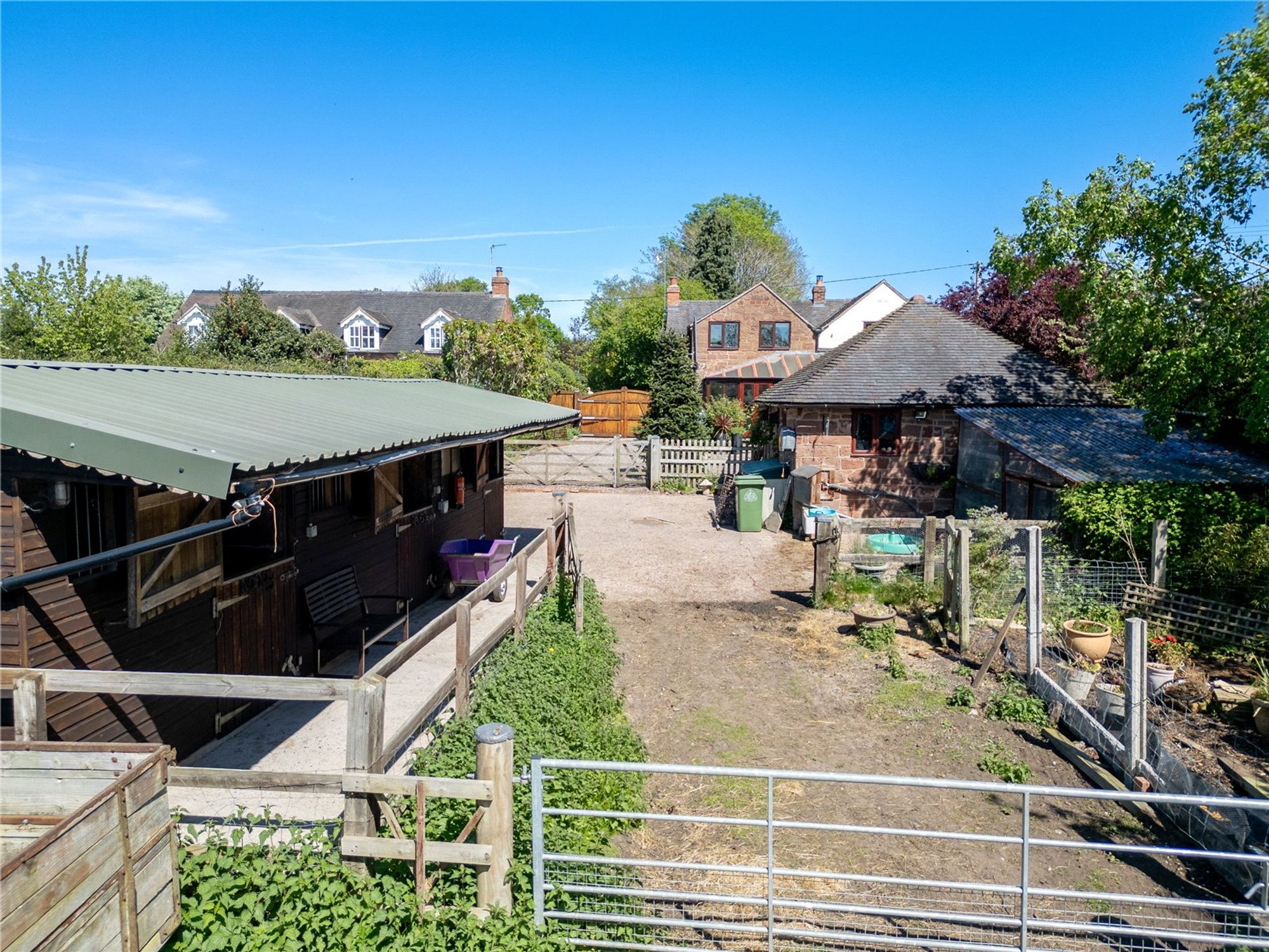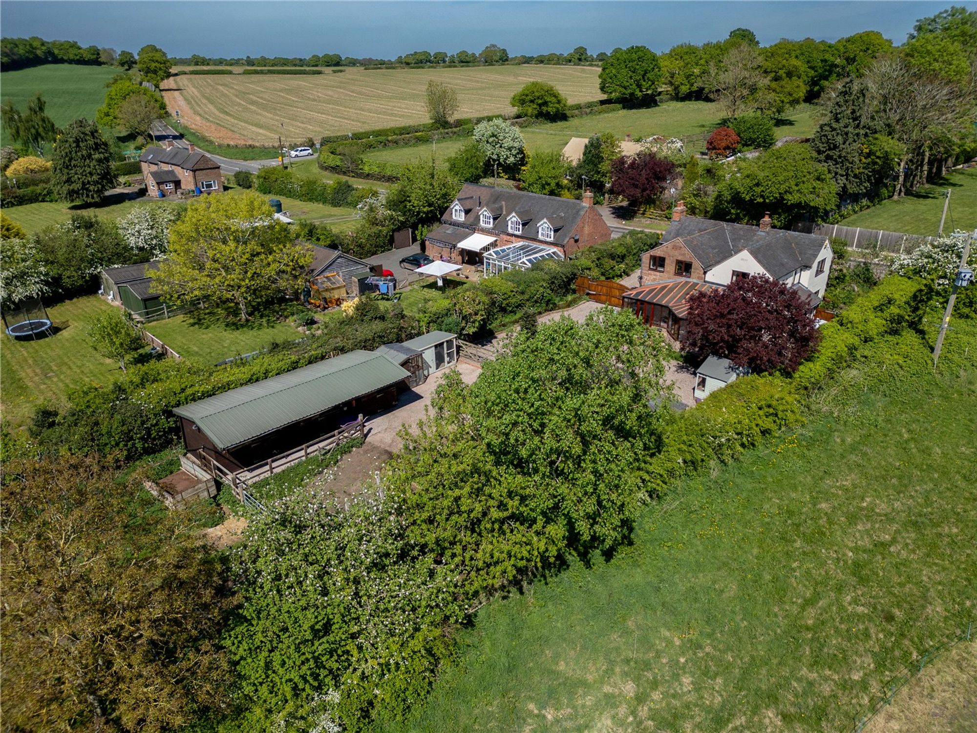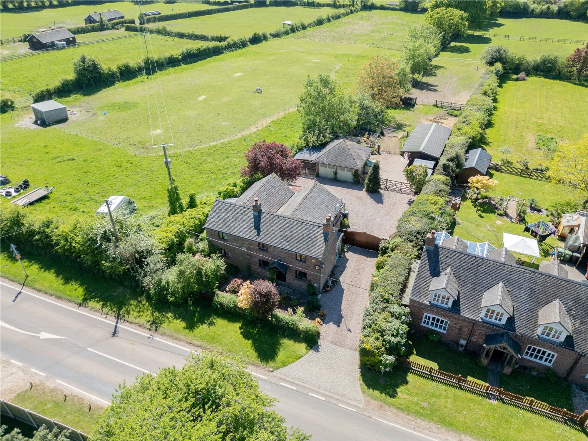 Set on a substantial plot totalling over 2 acres, the rear of the property is a particular highlight, offering a double garage, 2 paddocks with their own water supply, stables, outbuildings, chicken coup and a new shelter. The broad expanse of outdoor space is also ideal for children to play, summer entertaining, or cultivating a garden retreat. The garden