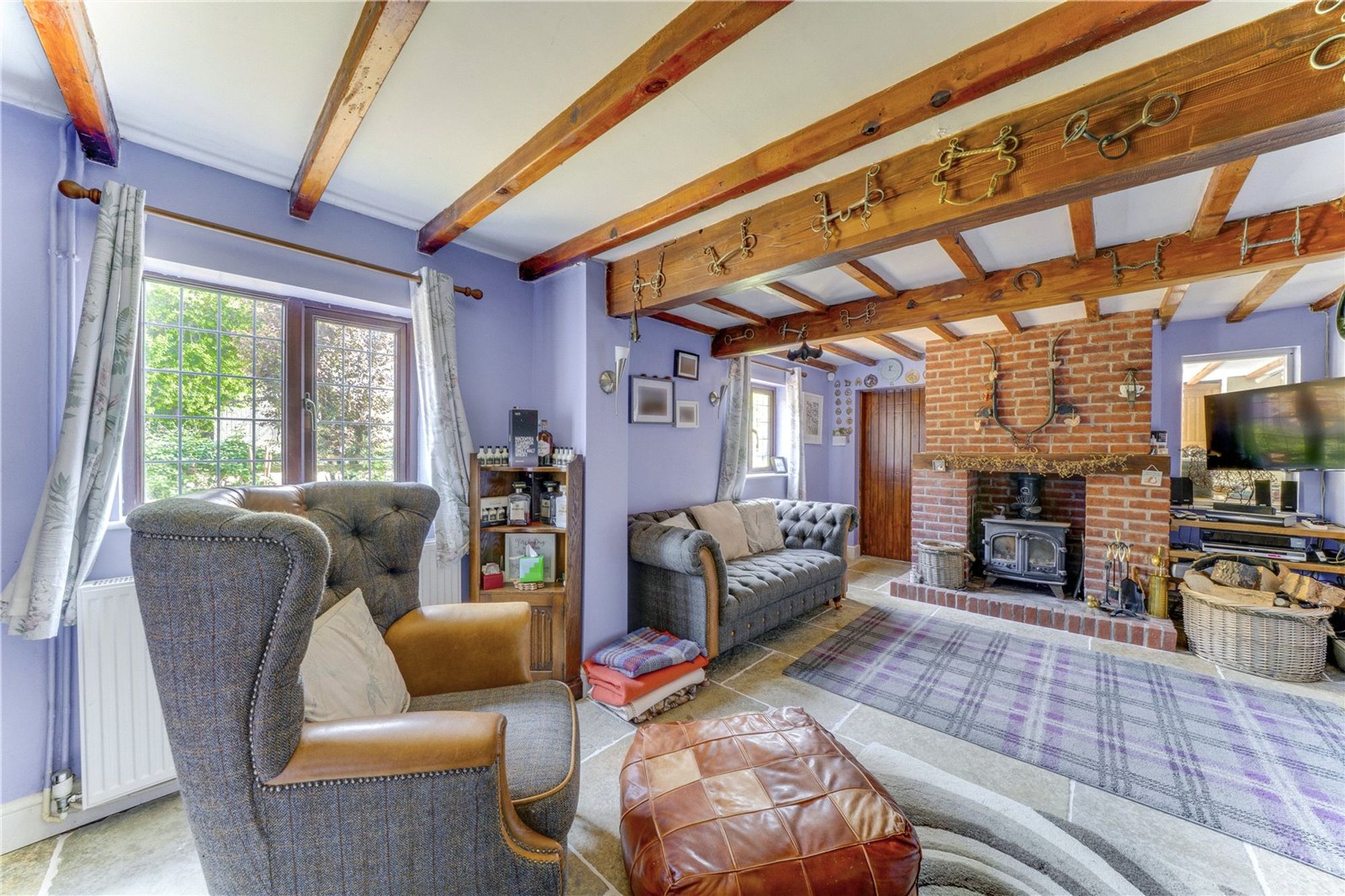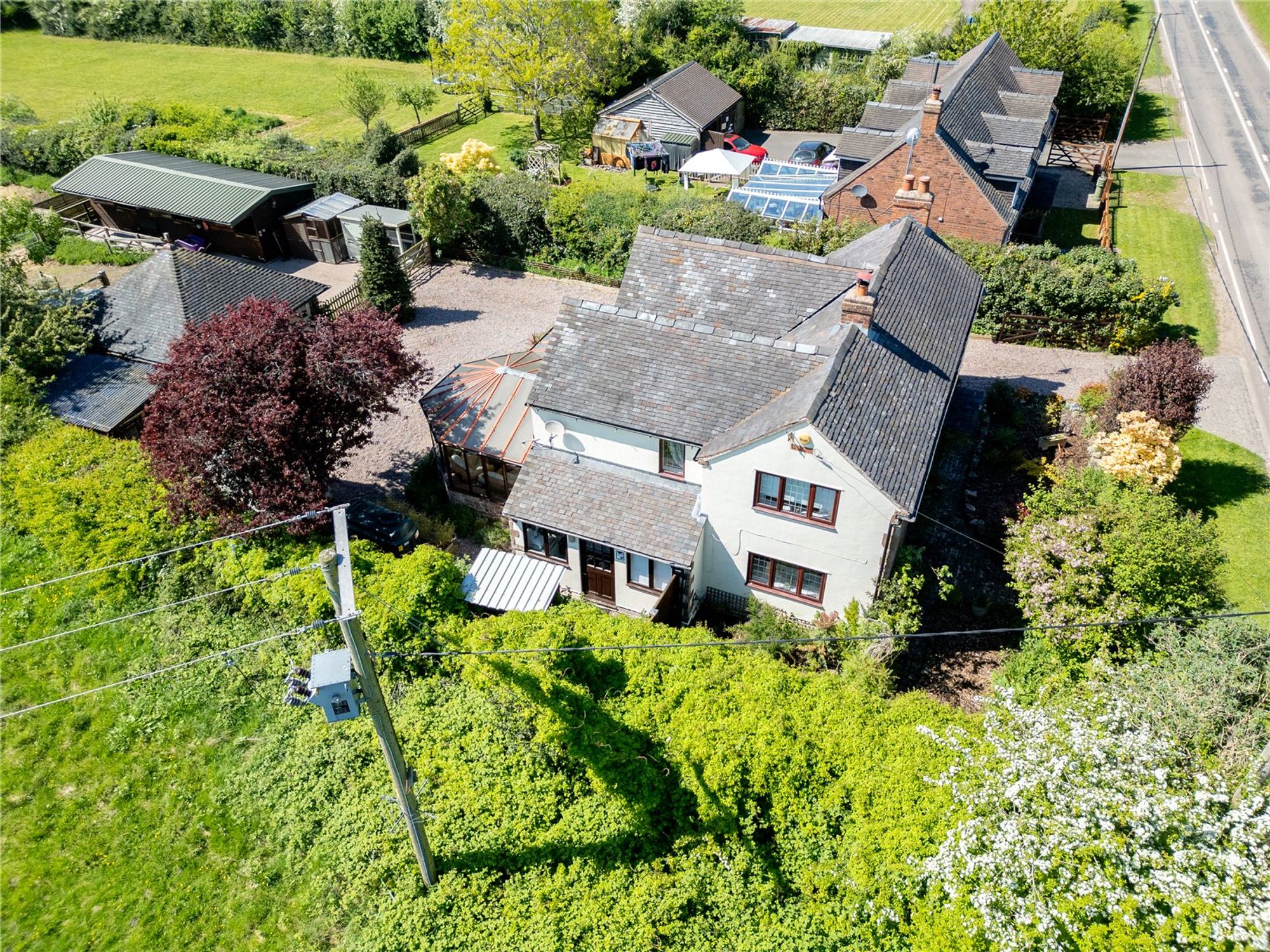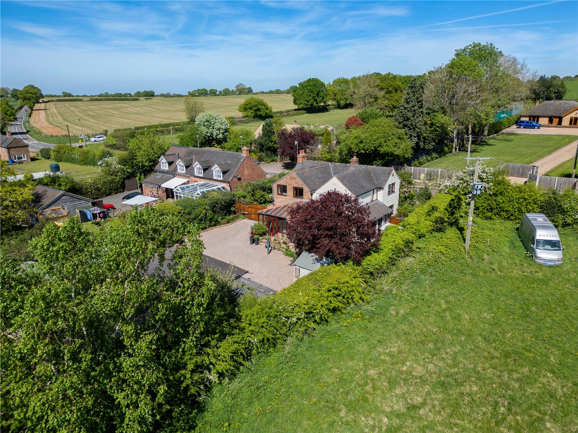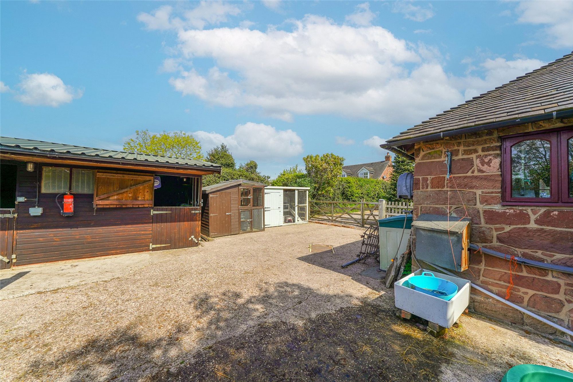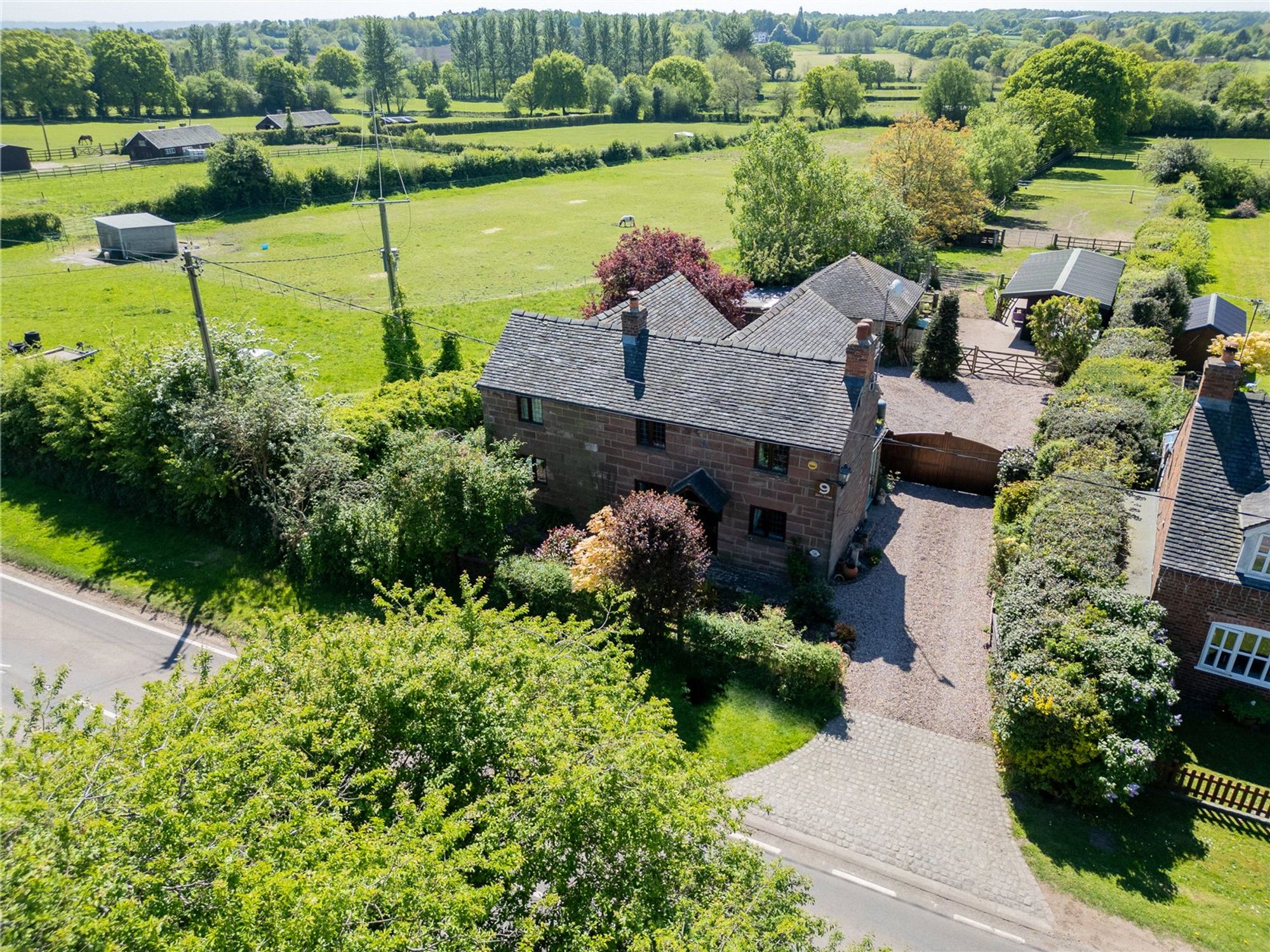 Set on a substantial plot totalling over 2 acres, the rear of the property is a particular highlight, offering a double garage, 2 paddocks with their own water supply, stables, outbuildings, chicken coup and a new shelter. The broad expanse of outdoor space is also ideal for children to play, summer entertaining, or cultivating a garden retreat. The garden