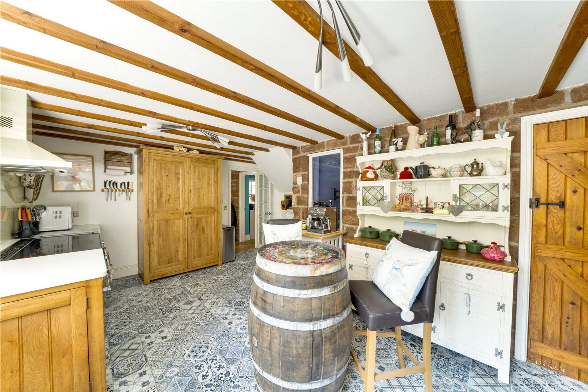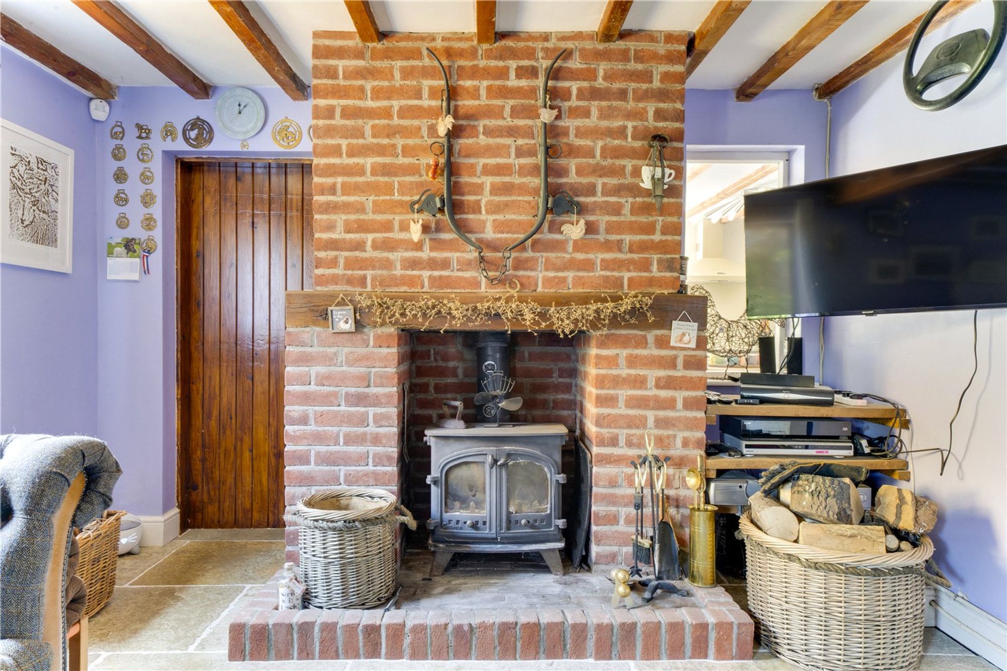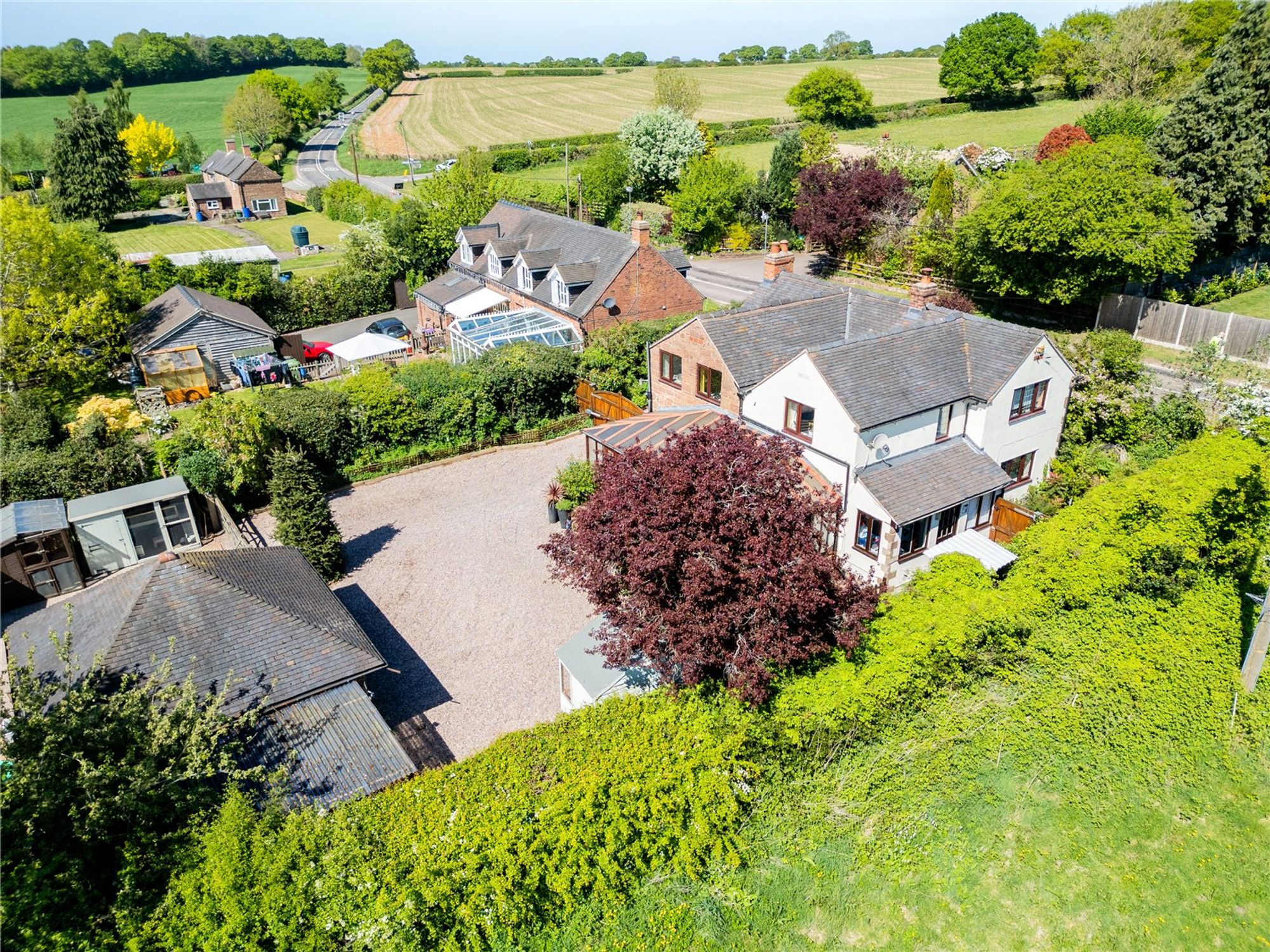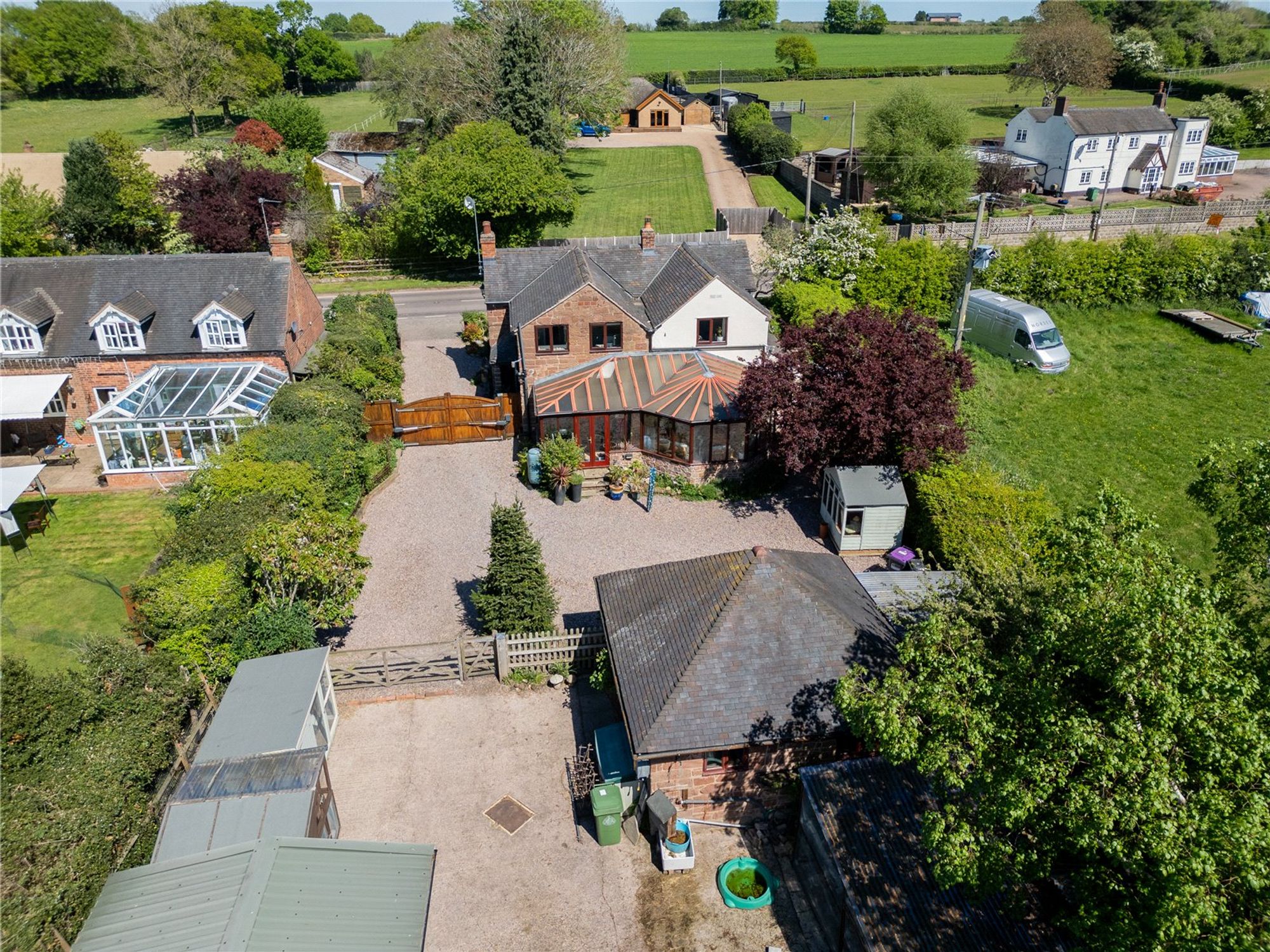 Set on a substantial plot totalling over 2 acres, the rear of the property is a particular highlight, offering a double garage, 2 paddocks with their own water supply, stables, outbuildings, chicken coup and a new shelter. The broad expanse of outdoor space is also ideal for children to play, summer entertaining, or cultivating a garden retreat. The garden