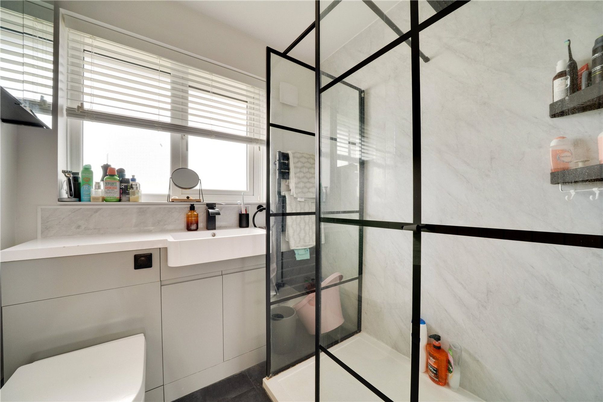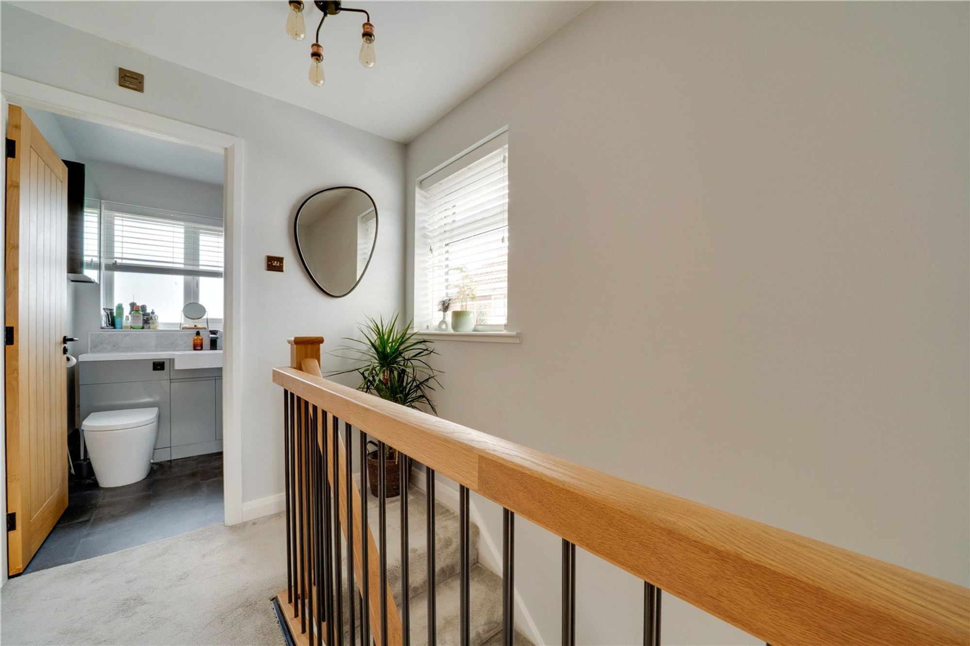Upstairs, the property offers three well-proportioned bedrooms and a sleek, modern shower room. The rear-facing master bedroom enjoys elevated views across the cricket pitch and the rolling Shropshire countryside.