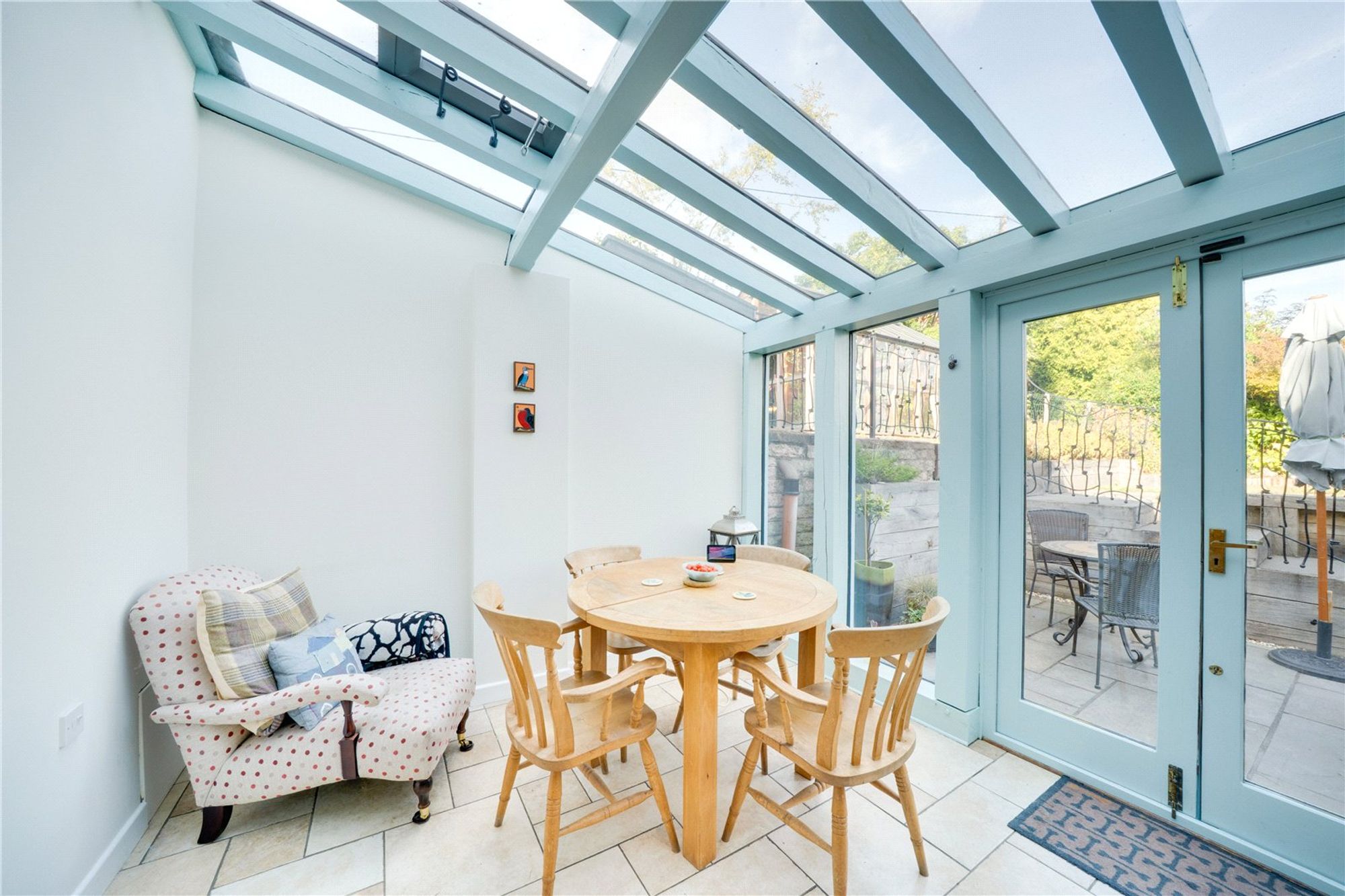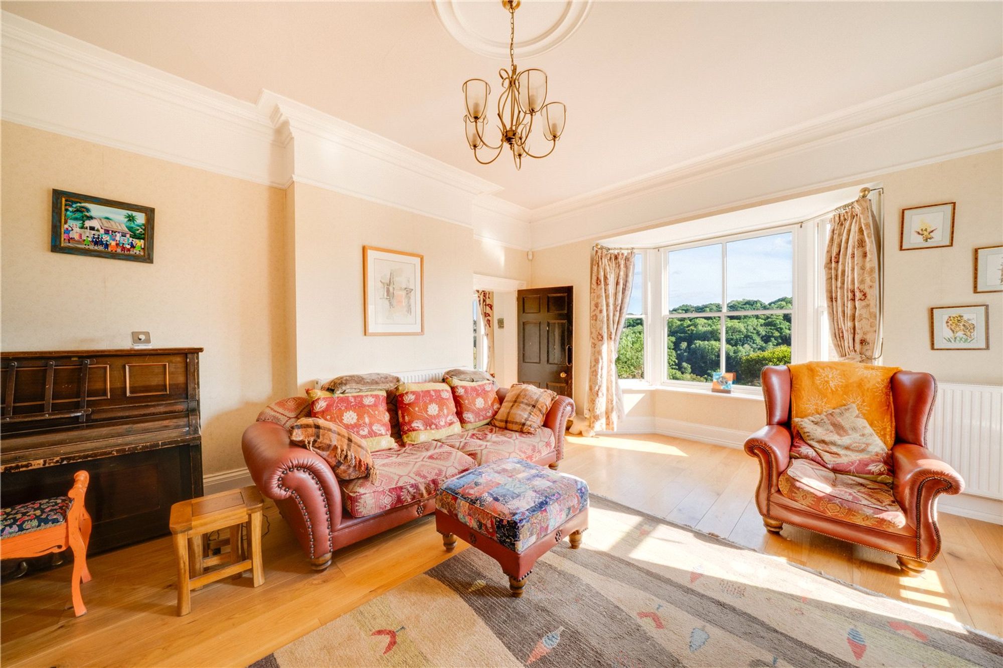 The ground floor includes a bright main lounge with dual aspect and bay window overlooking the Gorge, a dining room, and a snug (which could double as a bedroom with access to a connecting shower room). The heart of the home is the modern kitchen/breakfast room, which leads to a home office, utility room, cellar, and a conservatory providing a beautiful garden outlook.