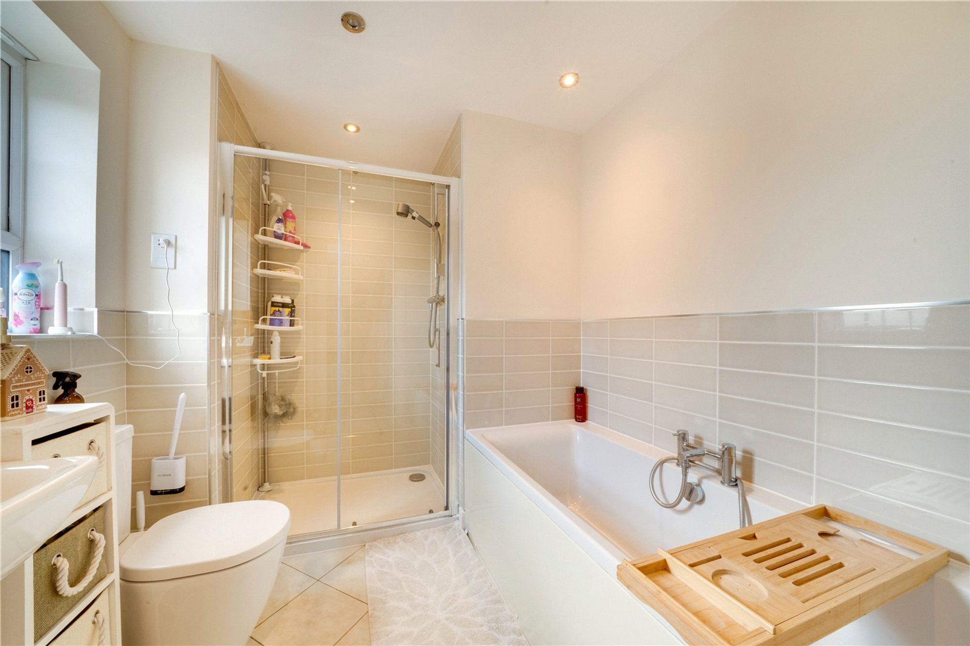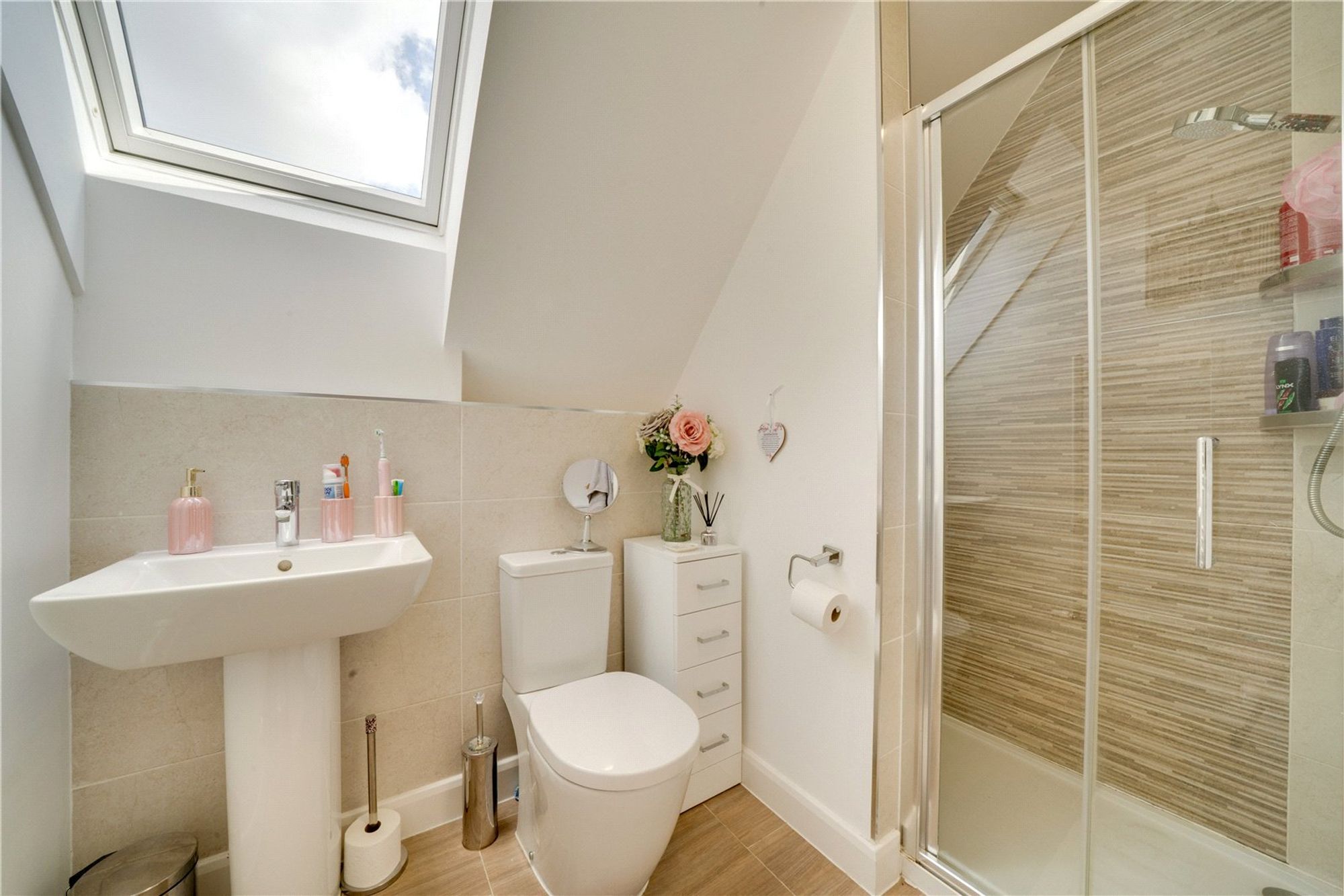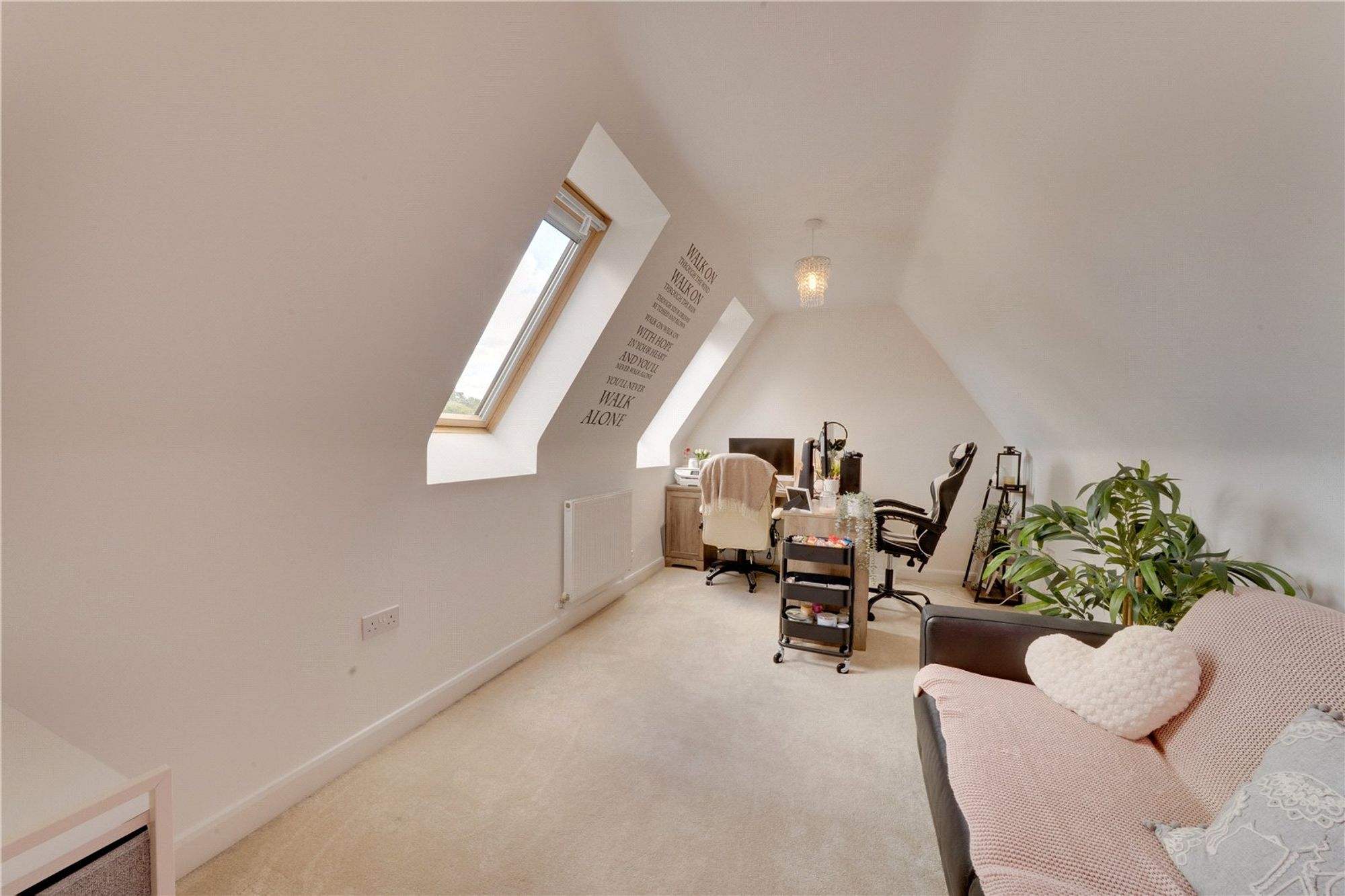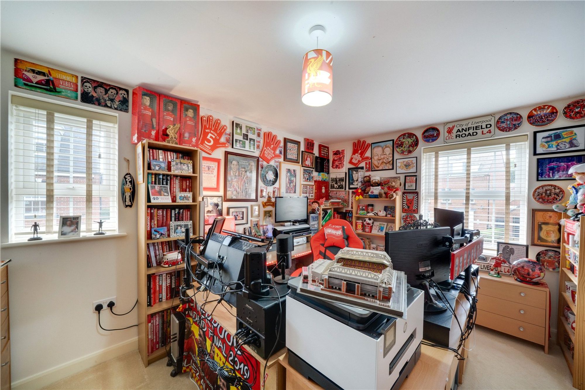 First Floor: A light and spacious landing provides access to the master bedroom with dual aspect windows and en-suite bathroom featuring both bath and separate shower. Three further double bedrooms – two currently used as home offices – and a stylish family bathroom complete this level.