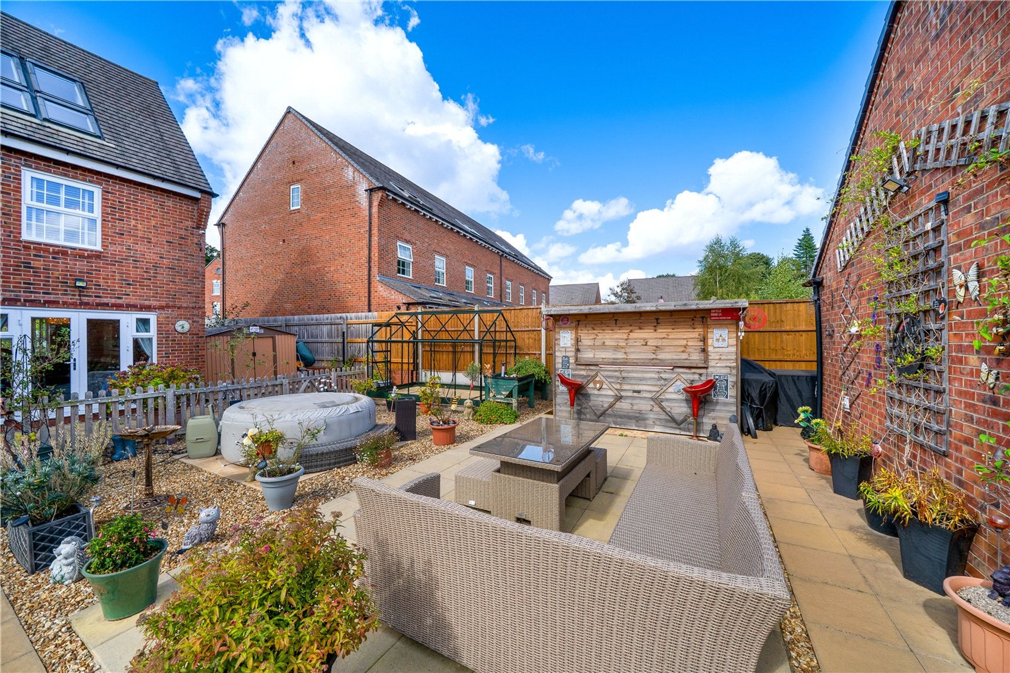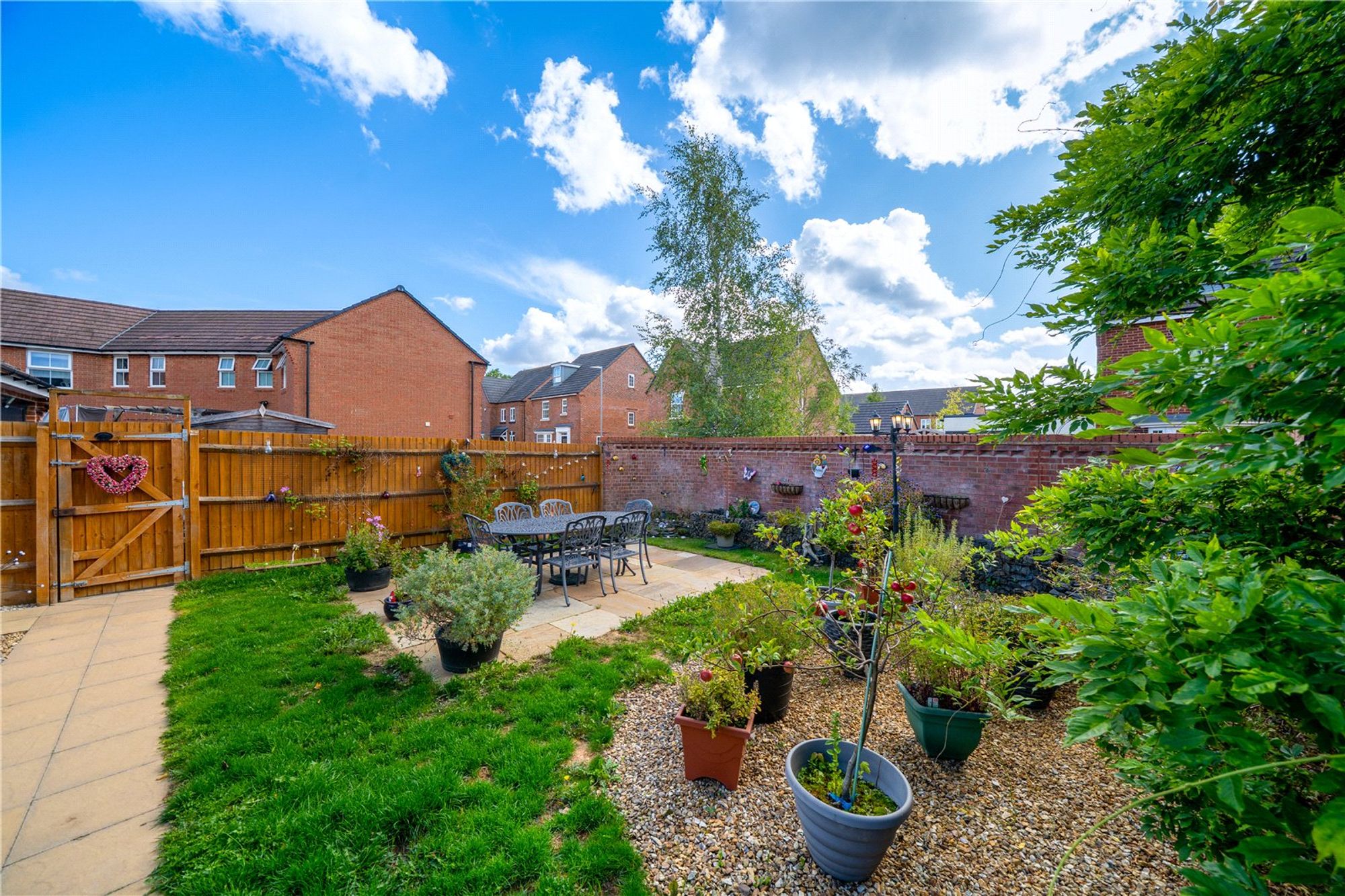 The property enjoys a generous front garden with a hedge border. To the rear, the garden has been cleverly landscaped into distinct zones, including multiple seating areas, imaginative planting, and a secure gated access to the driveway.