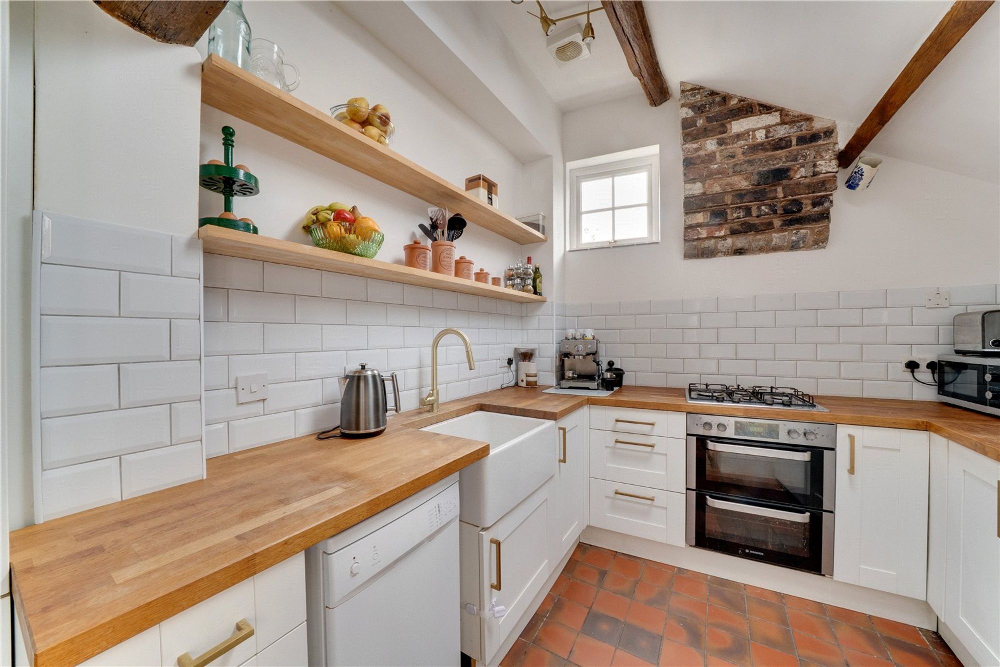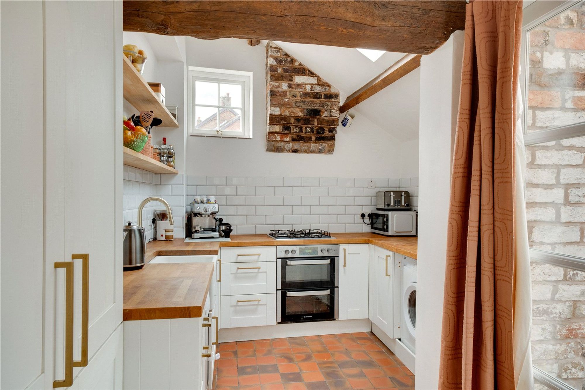 The ground floor offers a cosy lounge featuring oak recessed cupboards, and a dining room that showcases a stunning original cast range, perfect for those who appreciate historic details. The country-style kitchen boasts quarry tile flooring, a woodburning stove, and space for informal dining, making it a warm and welcoming heart of the home. A practical cellar offers excellent additional storage.