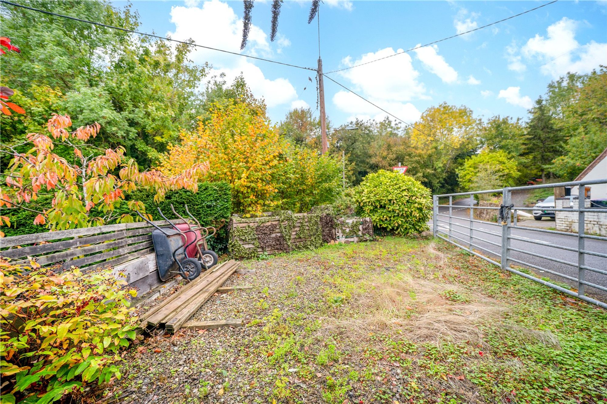 To the rear of the property, a gated driveway off Hodge Bower offers additional parking, including space suitable for a motorhome or multiple vehicles.