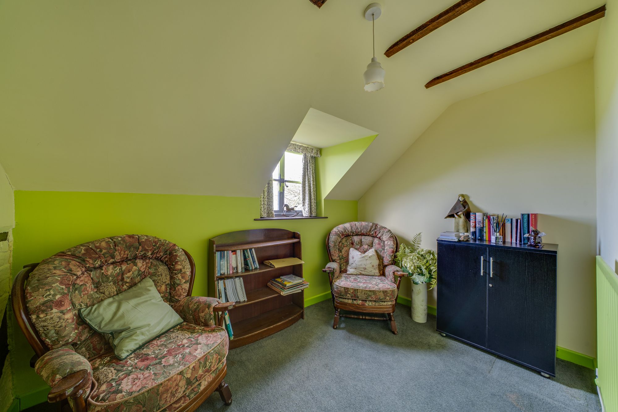 Accommodation briefly comprises an entrance porch into a spacious living room having feature fireplace with woodburner, dual aspect windows for plenty of light, and open access into the study room with understairs storage cupboard.
