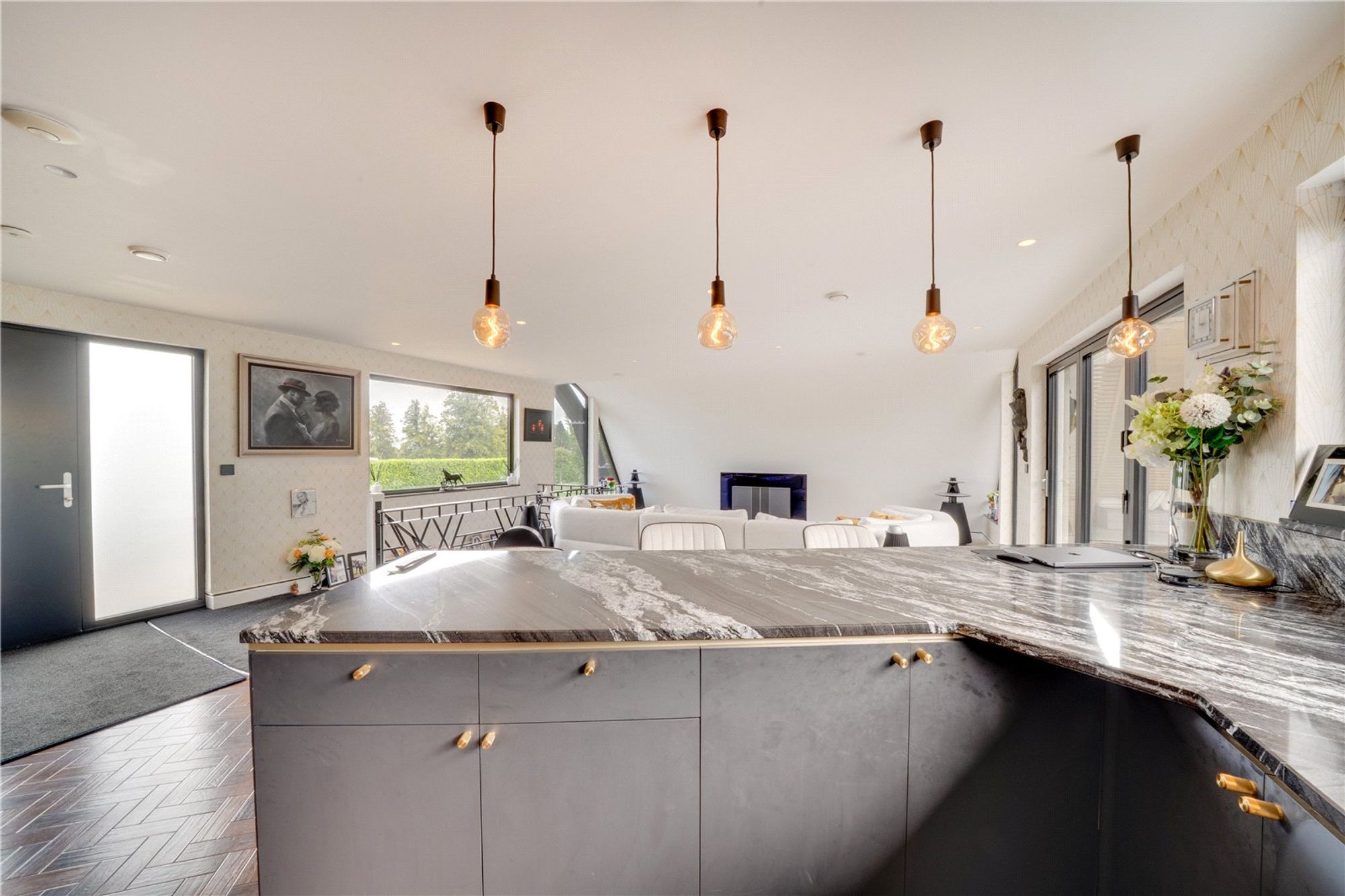 The tone of quality is established from the outset, with a bespoke smart front door featuring fingerprint recognition – a statement of sophistication, security, and cutting-edge design.
