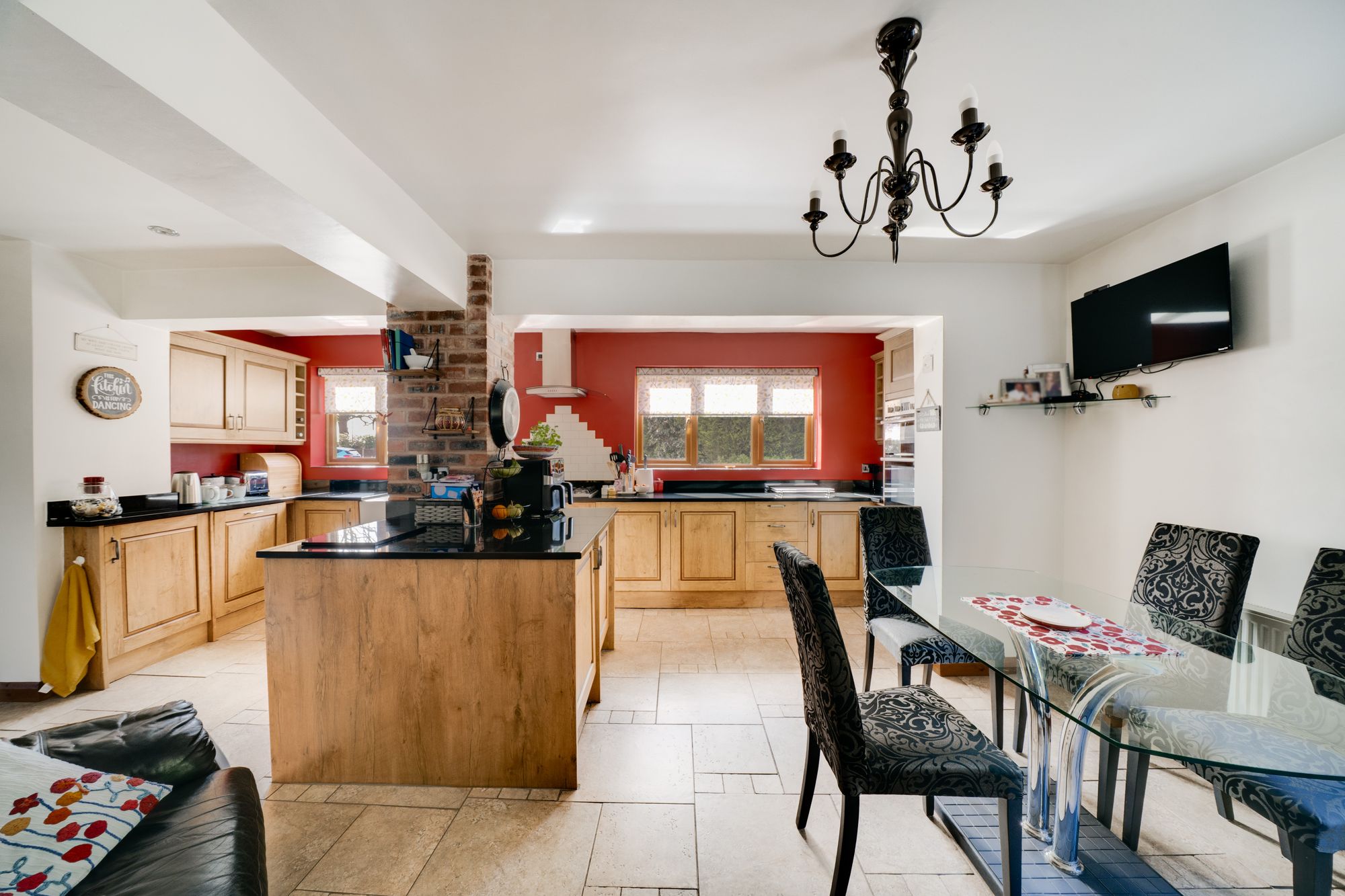 The heart of the home is an exceptional open-plan kitchen/dining room, providing a superb everyday living space with ample room for both family life and entertaining. This sociable area is complemented by an electric fire, while the separate living room offers a more cosy retreat, centred around a charming log burner. Further ground floor accommodation includes a useful office, garden room, utility, shower room and excellent internal flow throughout.