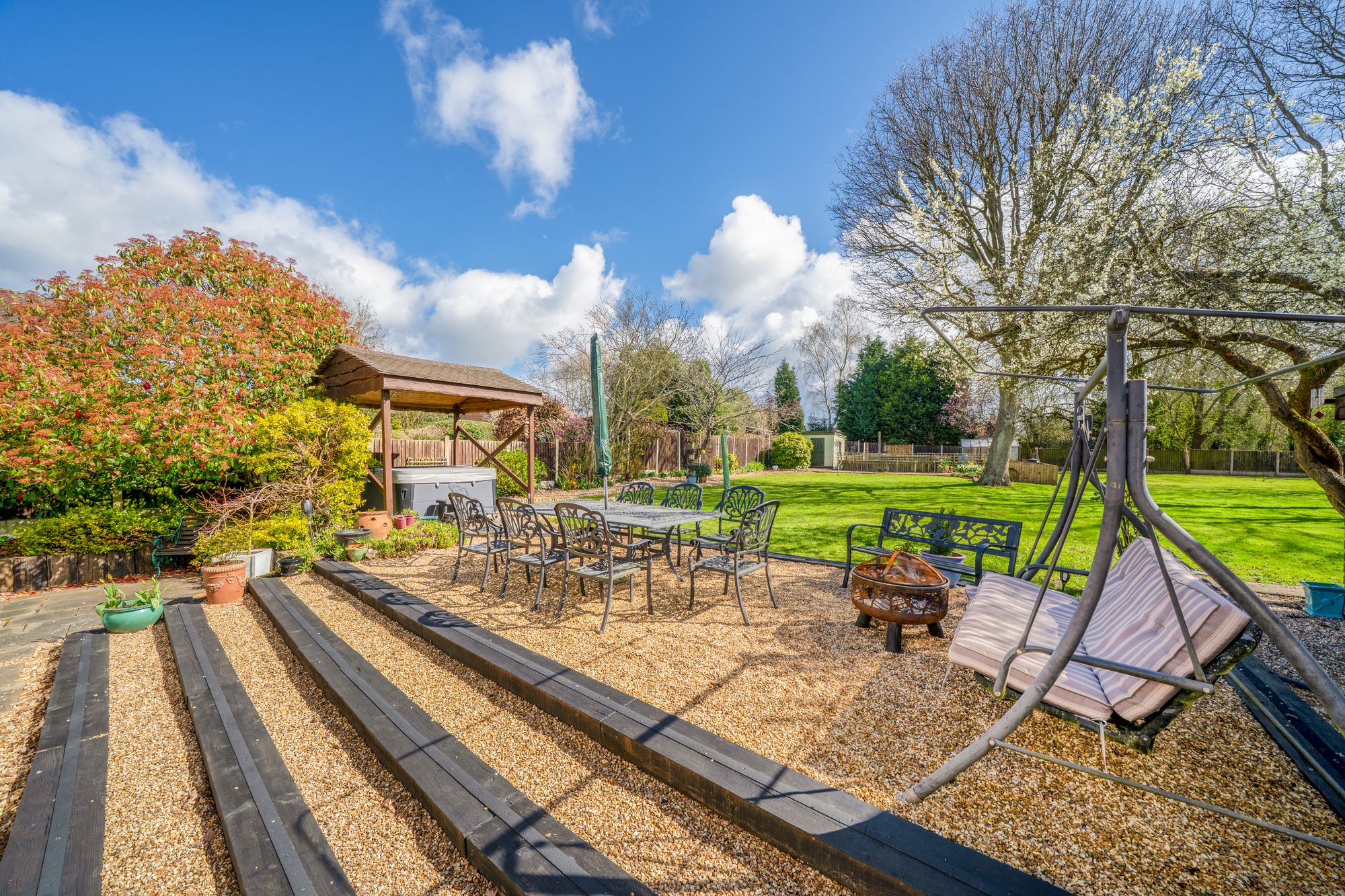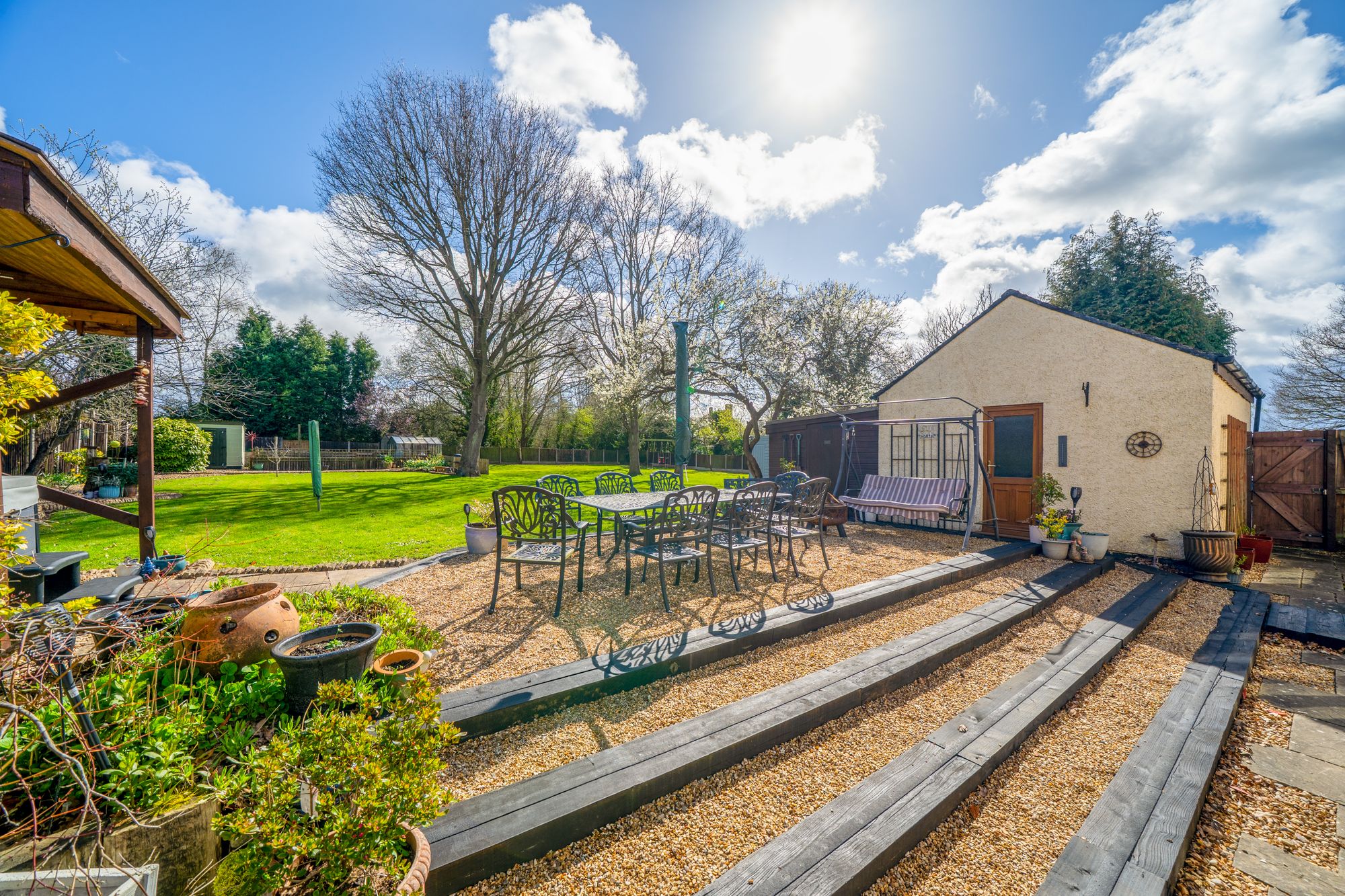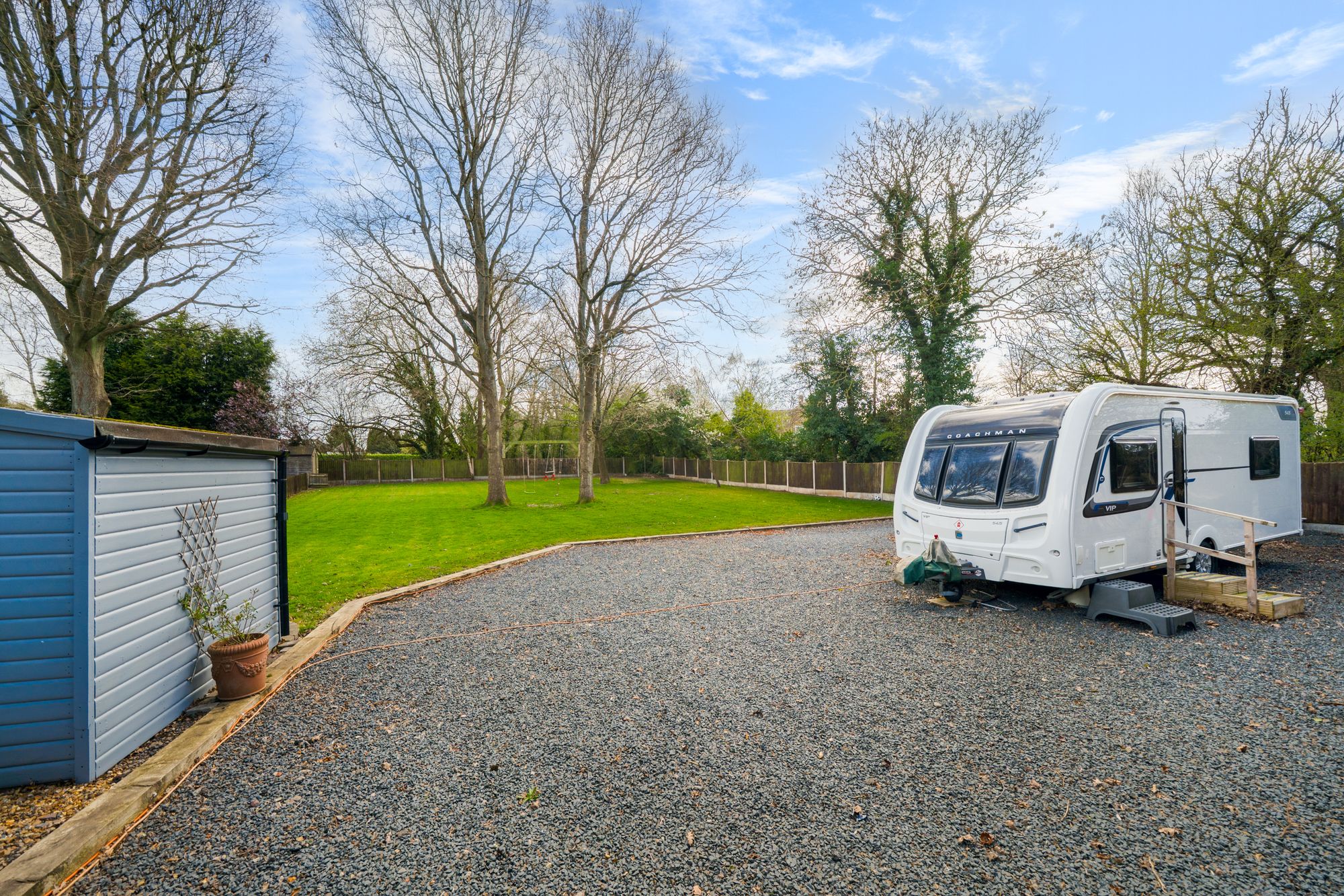 Outside, the property continues to impress. The generous east-facing garden is a standout feature, being notably large and well suited to families, keen gardeners and those who enjoy outdoor entertaining. There is a productive vegetable patch, together with a brick-built shed, adding further practicality to the outside space. To the front, the driveway has been massively extended, providing extensive parking and the advantage of both front and rear access.