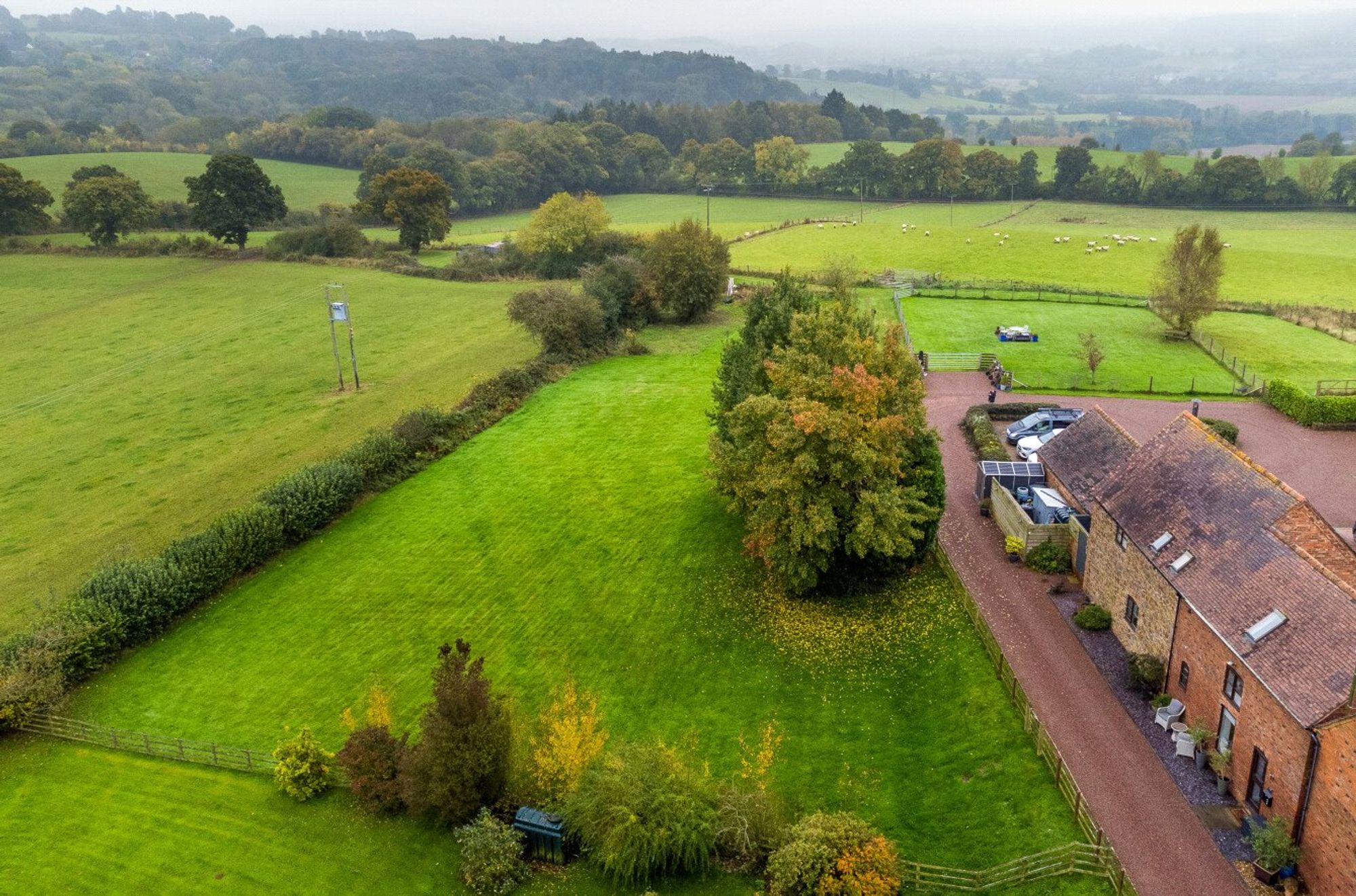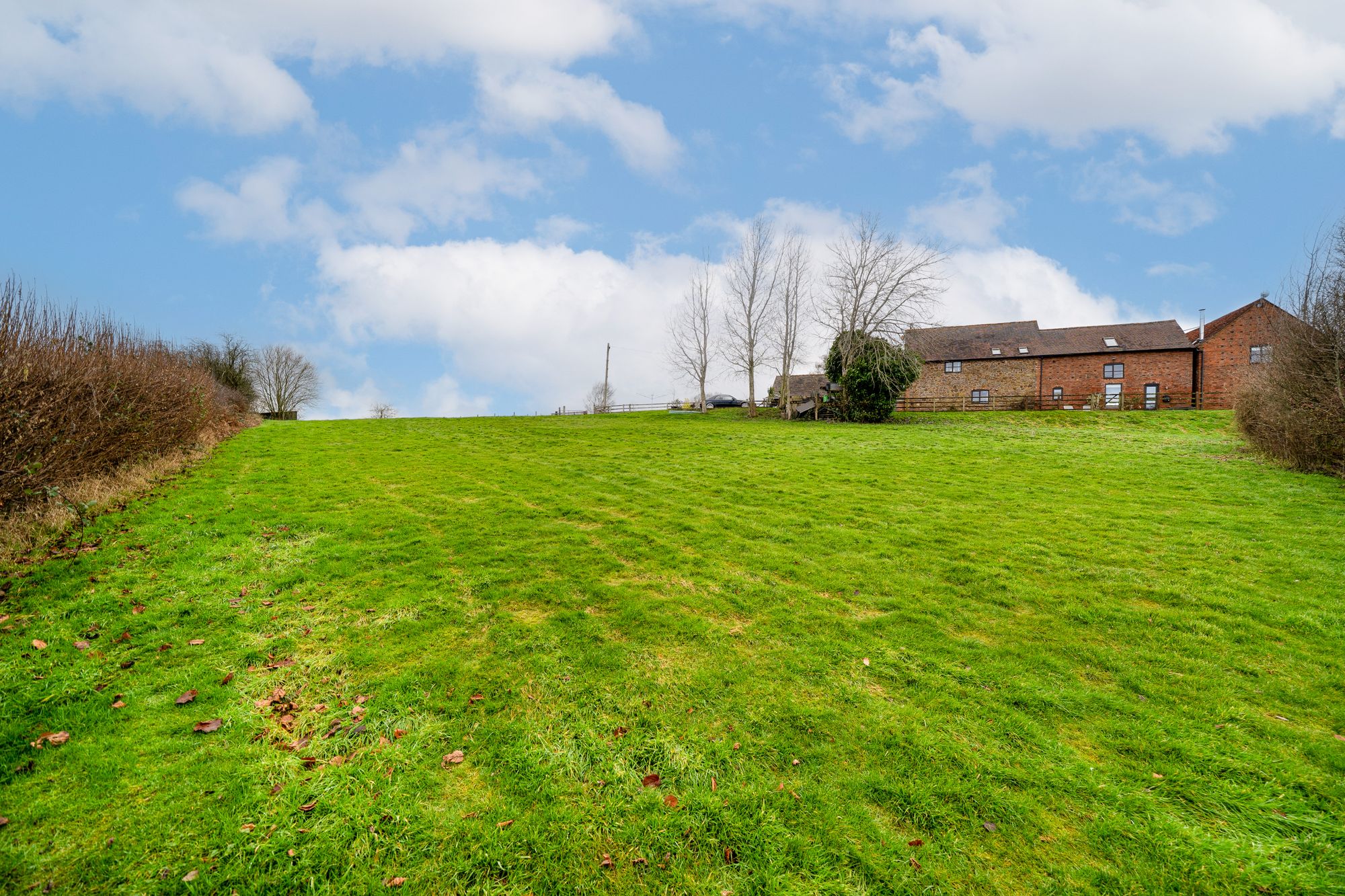 On the opposite side of the driveway, a good-sized paddock enclosed by post and rail fencing provides fantastic versatility, with a gravel hardstanding and a raised timber decked area, perfect for summer dining or simply admiring the beautiful countryside that surrounds Goose Barn.