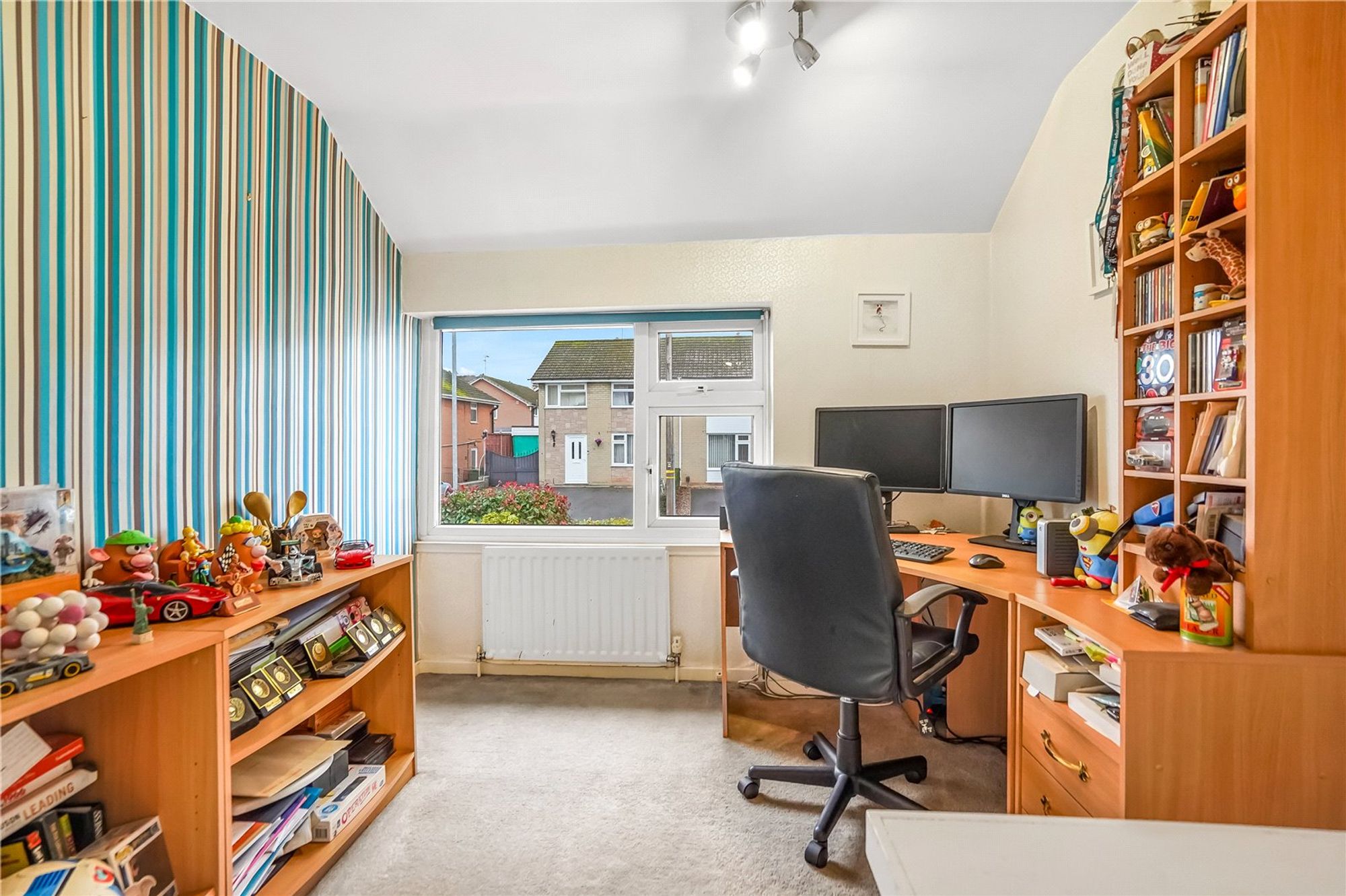 • Bedroom Three, currently used as a study, is a good-sized single room with a uPVC double-glazed window and central heating radiator.