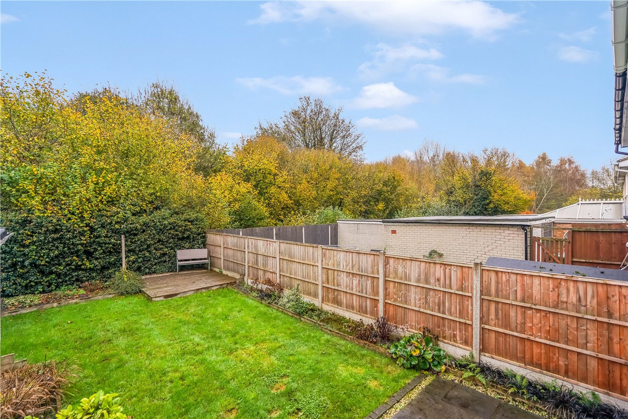 The rear garden is a true highlight, with a paved patio, lawn with slate-chipped borders, and a timber decked area at the rear. The garden is bordered by trees and marshland, offering a peaceful and natural backdrop, a cold water tap is also provided.