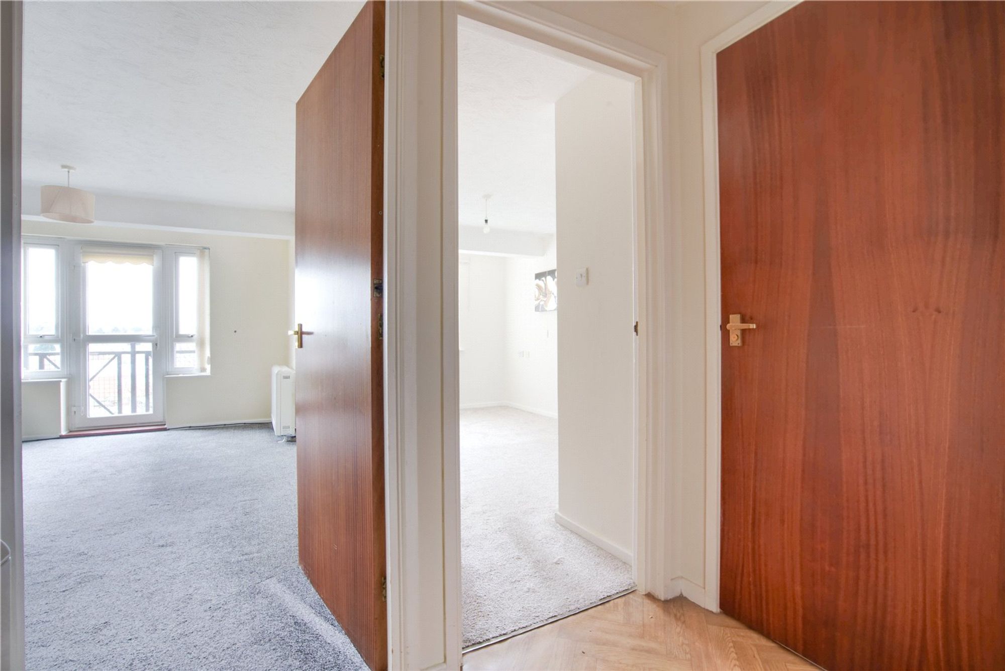 Access to the building is via a secure intercom system, and the communal areas are maintained to a high standard. Upon entering the apartment, you are welcomed into a hallway with wooden flooring, a wall-mounted electric heater, ceiling light point, and a handy storage cupboard. From here, doors lead off to all main rooms.
