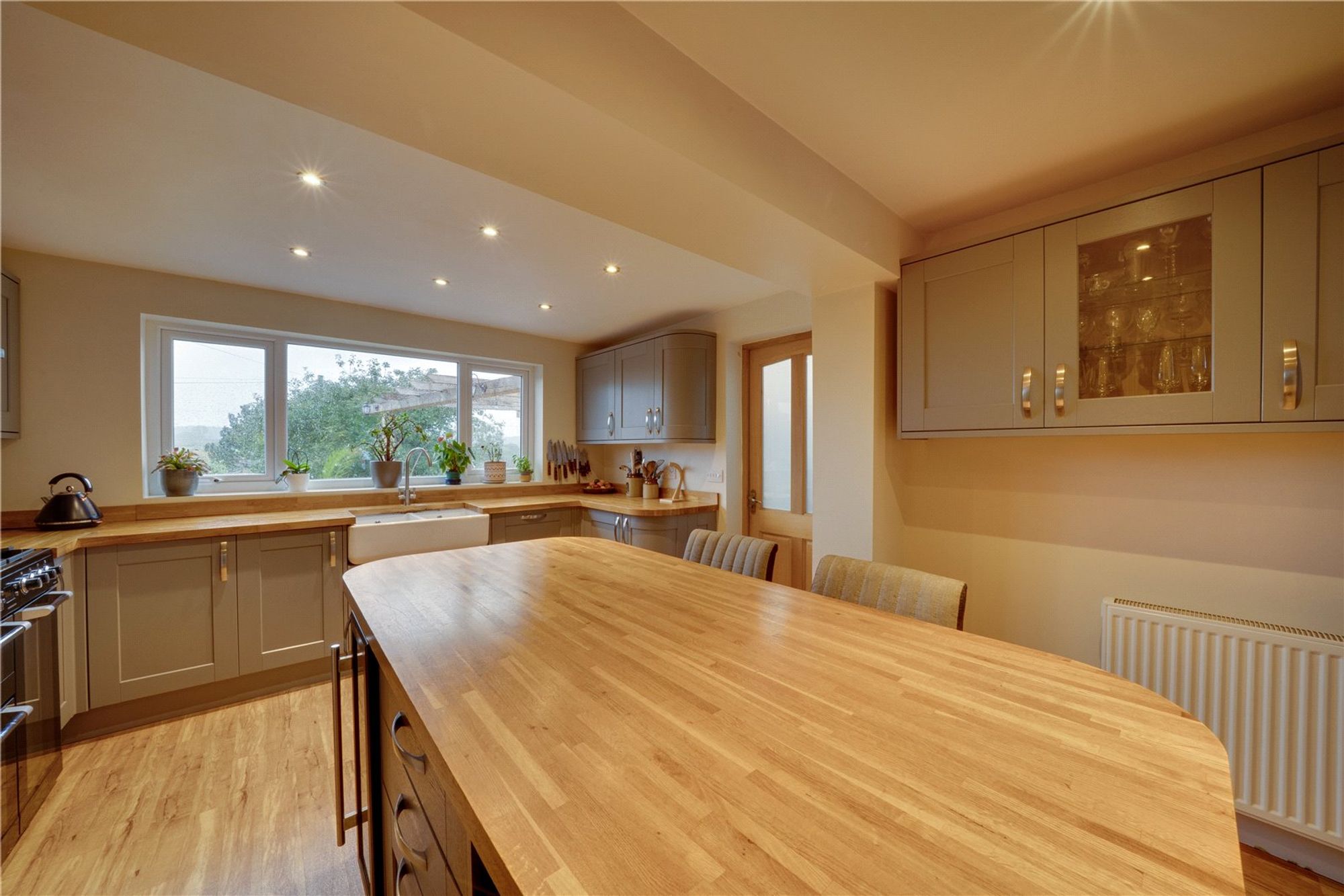 The kitchen has been comprehensively refitted with shaker-style cabinetry, solid wood worktops, and a large central island with breakfast seating. Designed for both practicality and style, it includes a Range-style cooker, farmhouse sink, and integrated appliances, with extensive storage and workspace making it ideal for family life. Adjoining the kitchen is a versatile snug, perfect for use as a cosy second sitting room, home office, or playroom. The utility room provides further convenience, with space for laundry appliances and an external door to the garden. The ground floor also benefits from an integral garage, offering useful storage or potential for conversion (subject to planning).