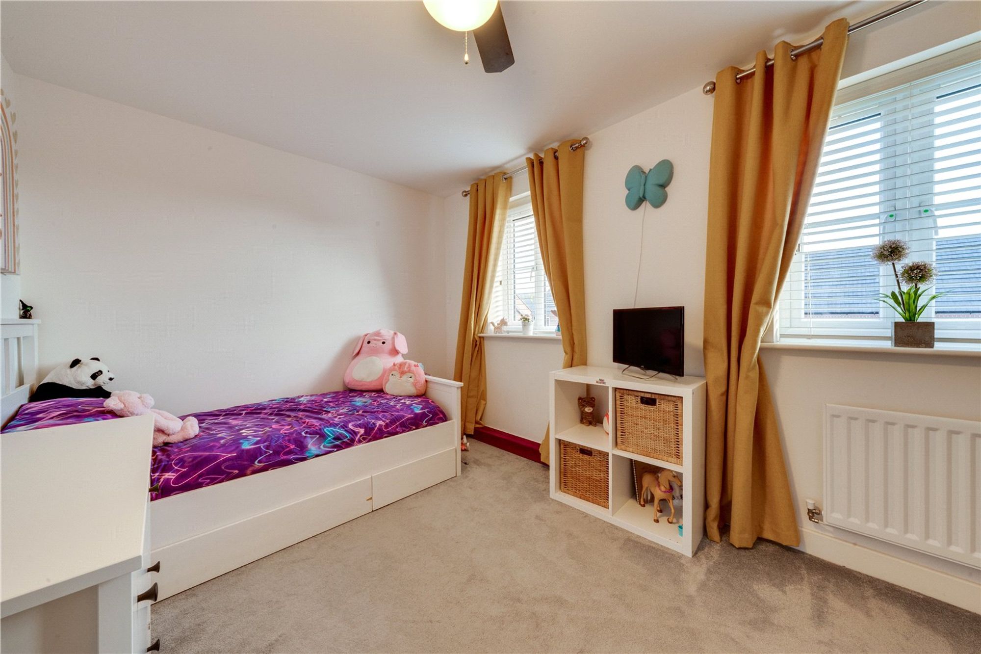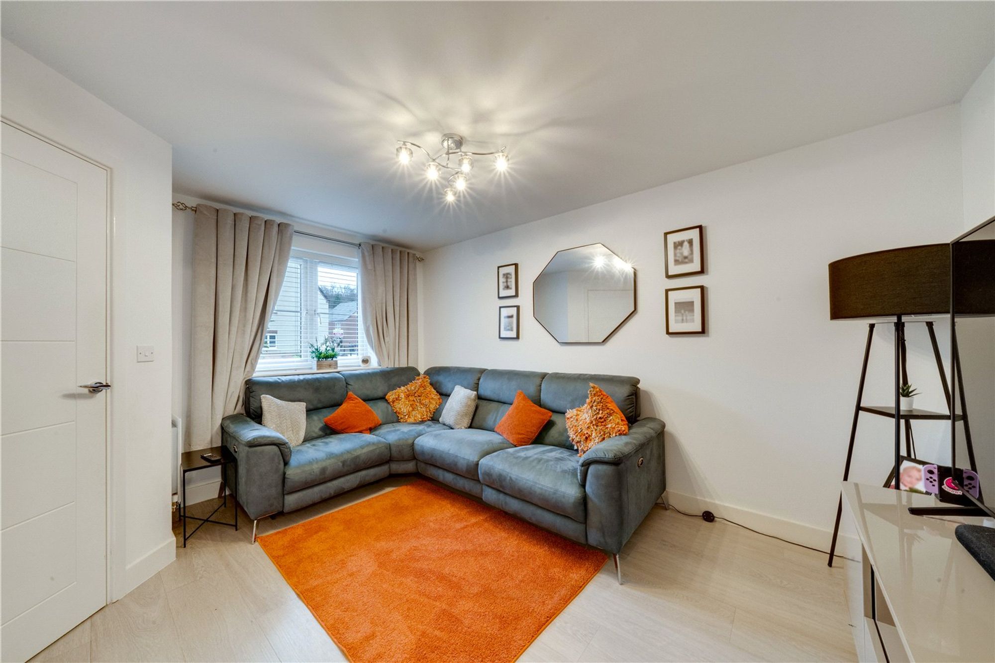 Two generous bedrooms sit alongside the modern family bathroom. Bedroom Three is ideal as a child’s room or office space, offering great flexibility.
