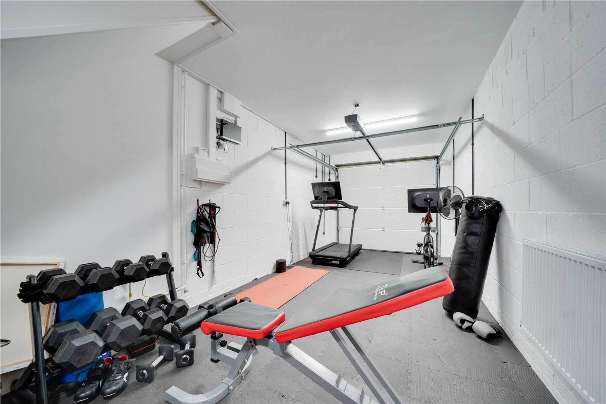 Adjoining the kitchen is a well-appointed laundry room, while the attached garage has been thoughtfully utilised to provide a versatile additional space, currently arranged as a home gym but equally well suited to a variety of uses.