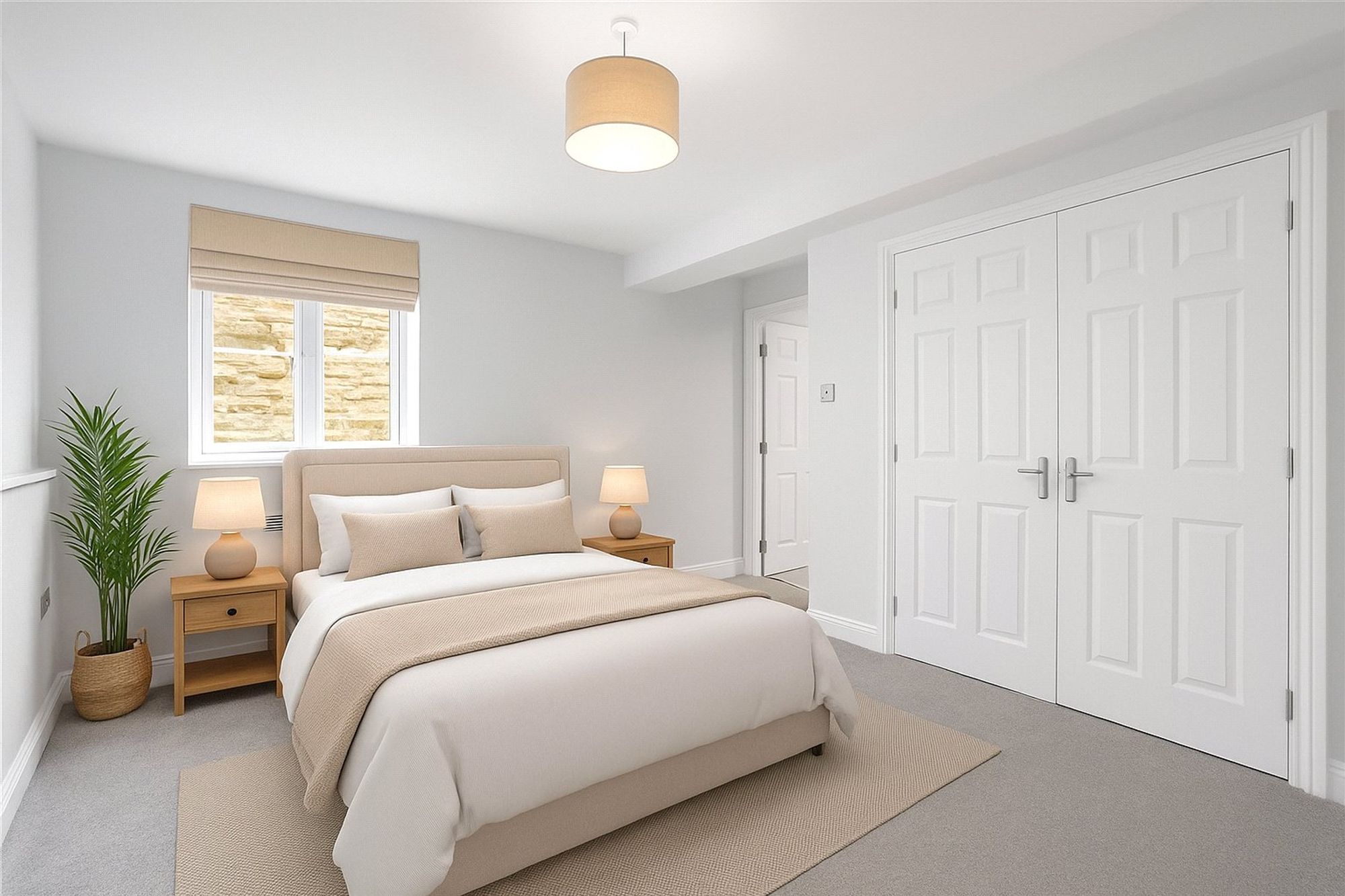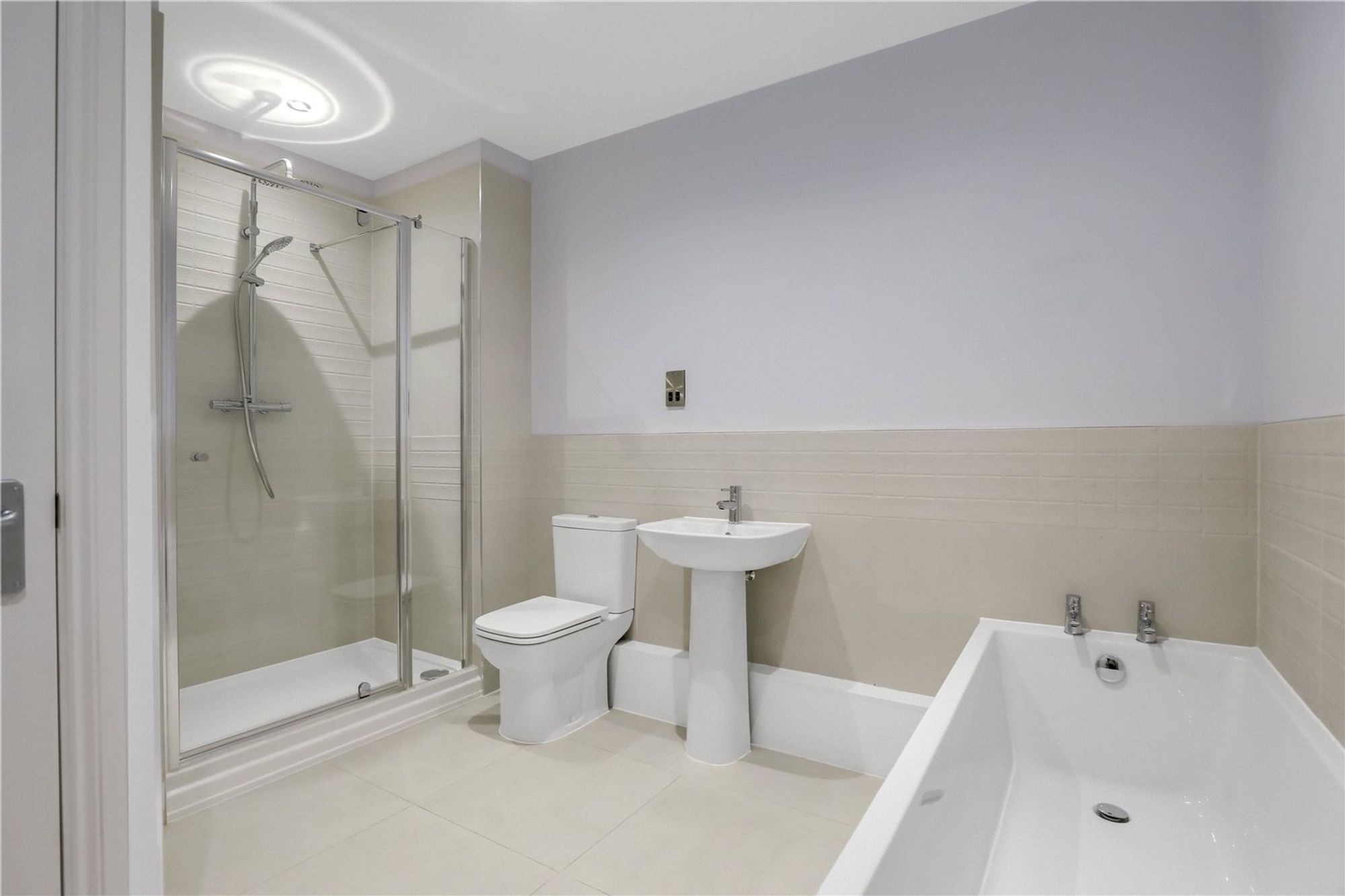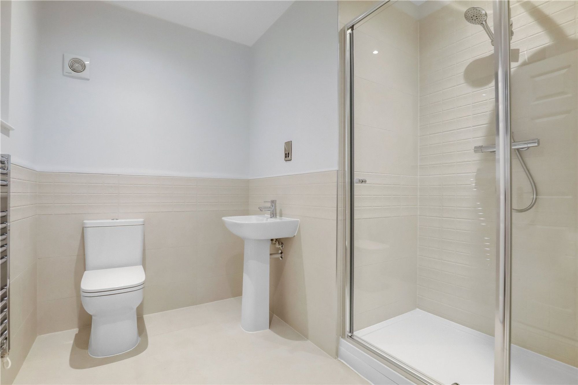 There are two well-proportioned double bedrooms. The principal bedroom benefits from built-in wardrobes and a contemporary en-suite shower room, fitted with a shower cubicle, WC, wash hand basin and heated towel rail. The second bedroom is equally generous in size and is served by the main bathroom.