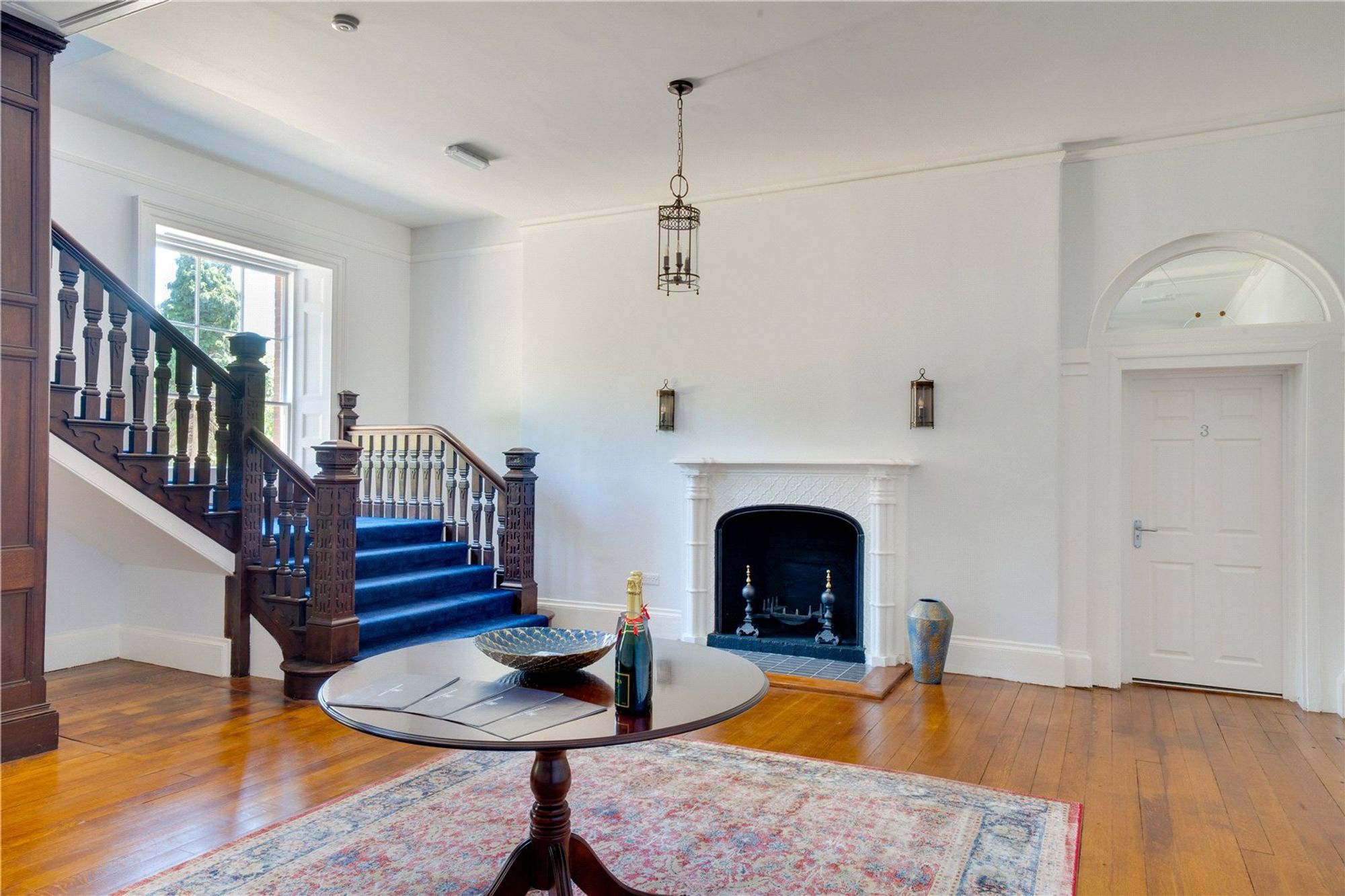 Apartment 6 is situated on the first floor and is accessed via an impressive Georgian main entrance hall, featuring an ornate fireplace and sweeping staircase rising to the upper floors. The apartment is entered through a welcoming hallway, which provides access to all principal rooms and includes a useful storage cupboard.