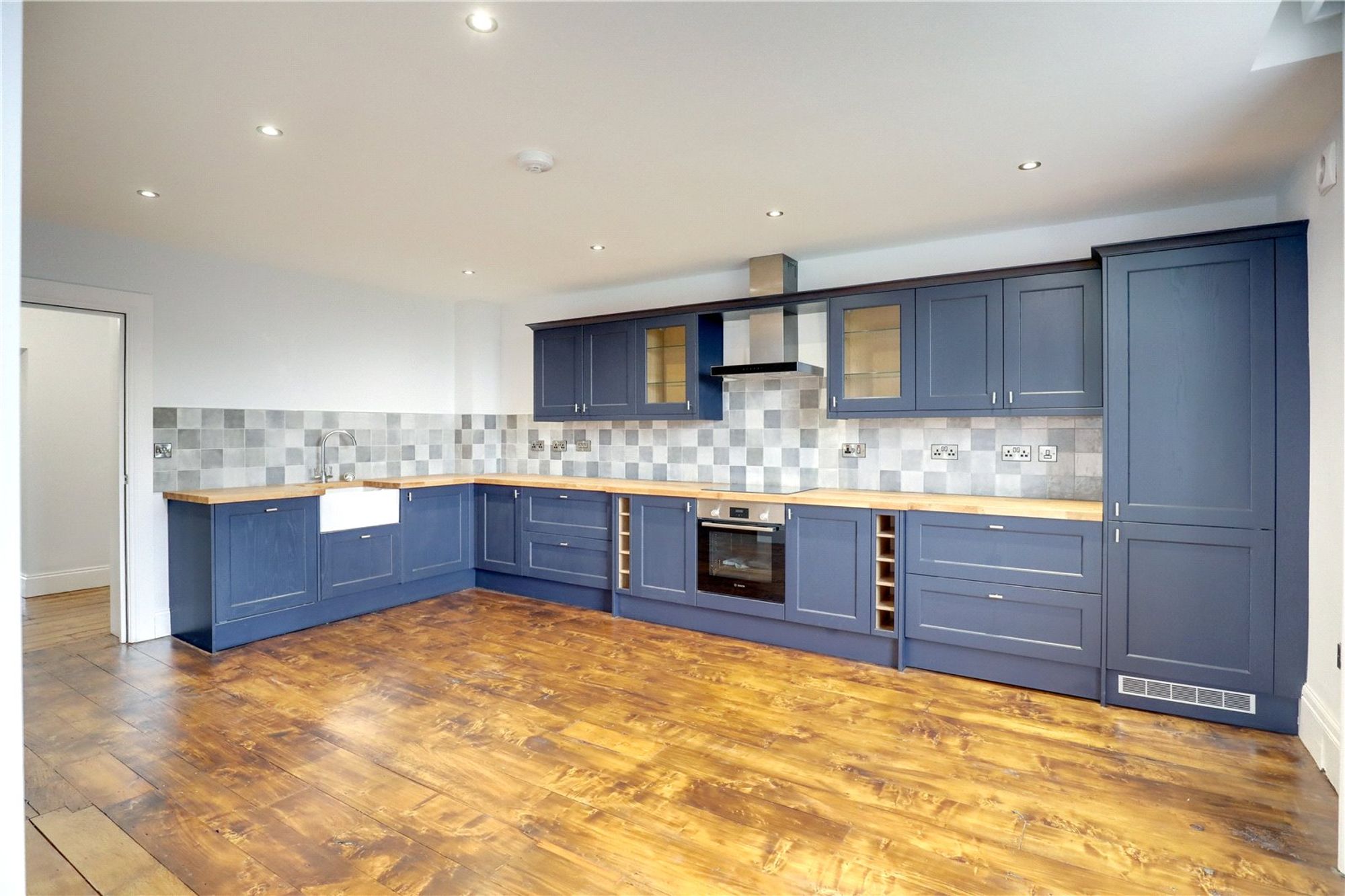 To the left of the hallway is the generous kitchen/dining room, a well-proportioned and inviting space enhanced by a large restored original sash window that allows an abundance of natural light to fill the room. The beautifully restored original wooden flooring further complements the period character. The bespoke kitchen has been fitted with an attractive range of wall and base units with worktops over and incorporates a Bosch integrated oven with hob and extractor. There is also a Beko built-in fridge/freezer, washing machine and dishwasher, providing both style and practicality for modern living.