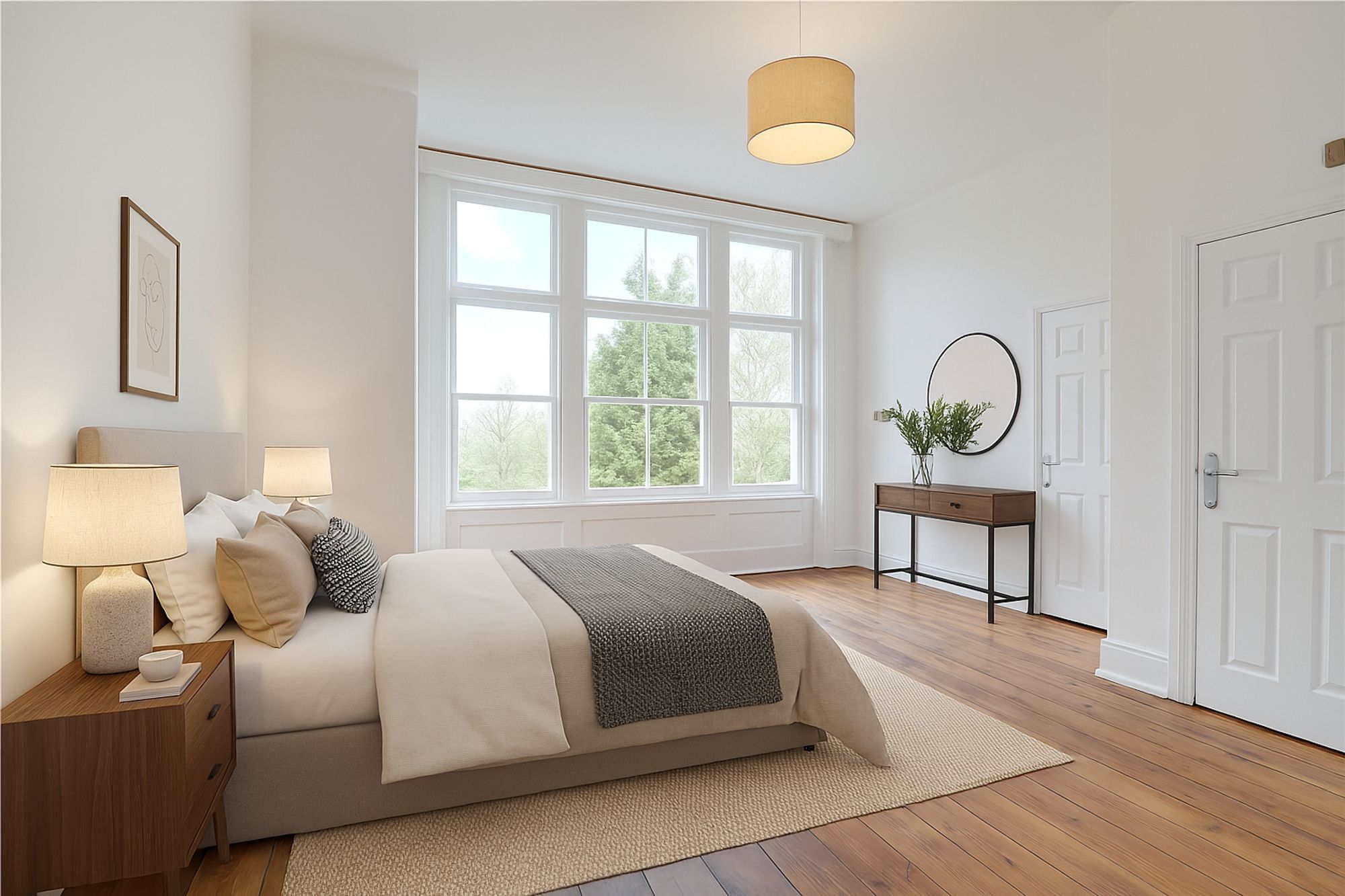 Apartment 6 combines elegant Georgian architecture with thoughtfully designed modern interiors, offering spacious and well-balanced accommodation on the first floor of this distinguished building. With its generous living spaces, high ceilings, original features and far-reaching views, this apartment would appeal to a range of buyers, including professionals, downsizers or those seeking a refined and characterful home in a desirable location.