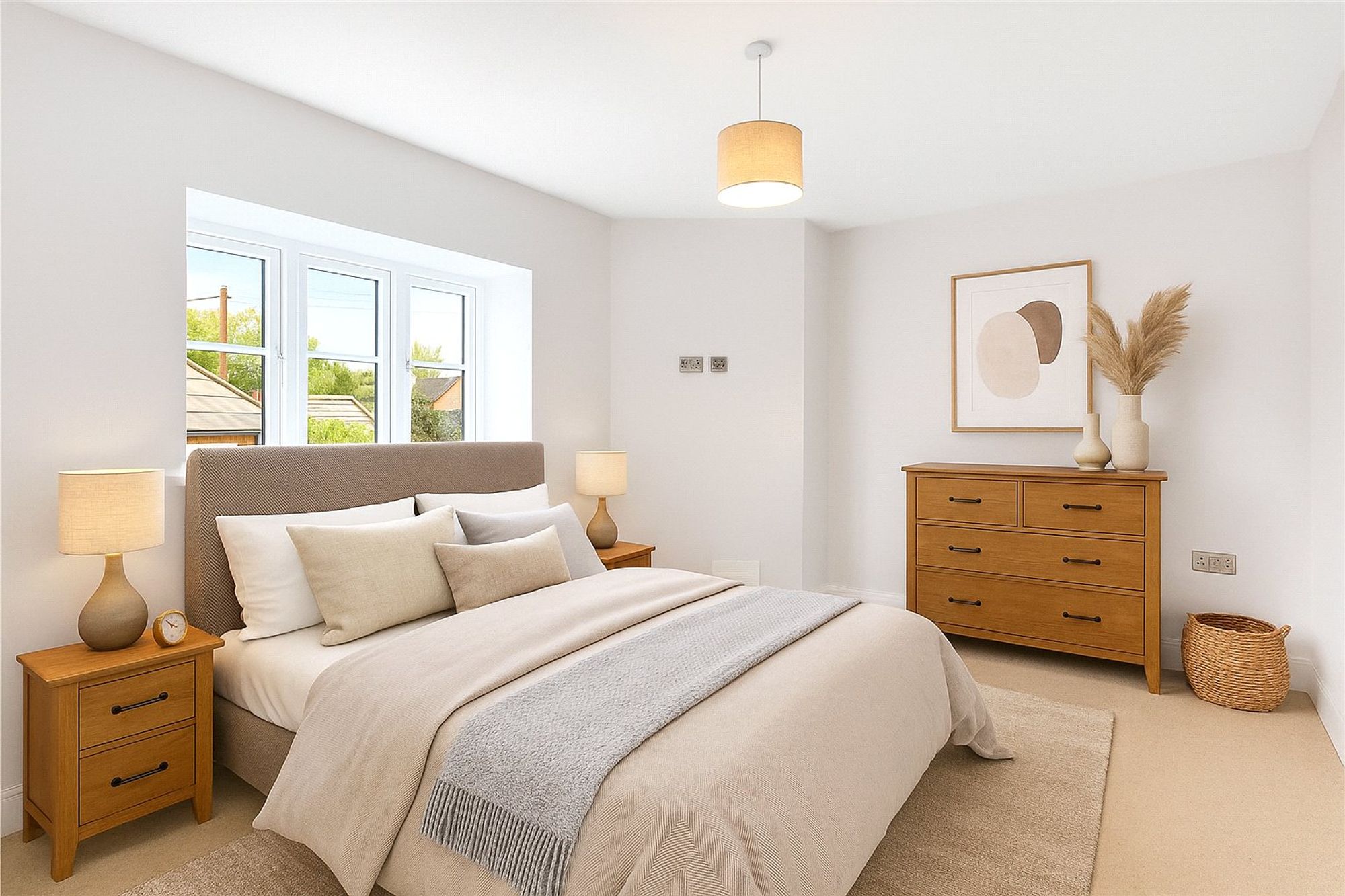 To the first floor, the accommodation continues with two further bedrooms, both generously sized. The second bedroom offers flexible space suitable for a principal or guest bedroom, enjoying good natural light and ample room for furnishings. The principal bedroom benefits from built-in wardrobes and is complemented by a private en-suite shower room, fitted with a shower cubicle, wash hand basin, WC and heated towel rail, creating a comfortable and self-contained retreat.