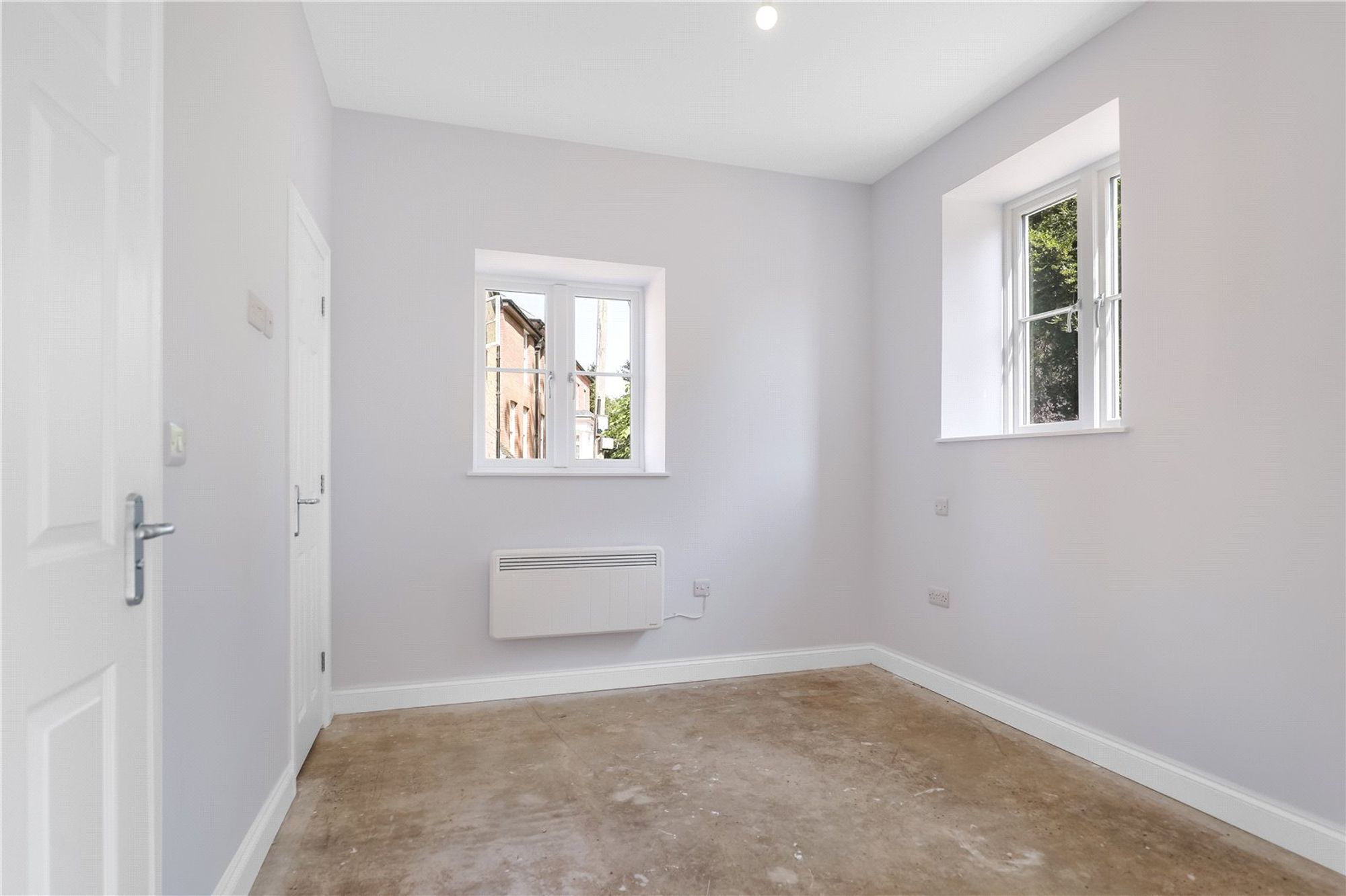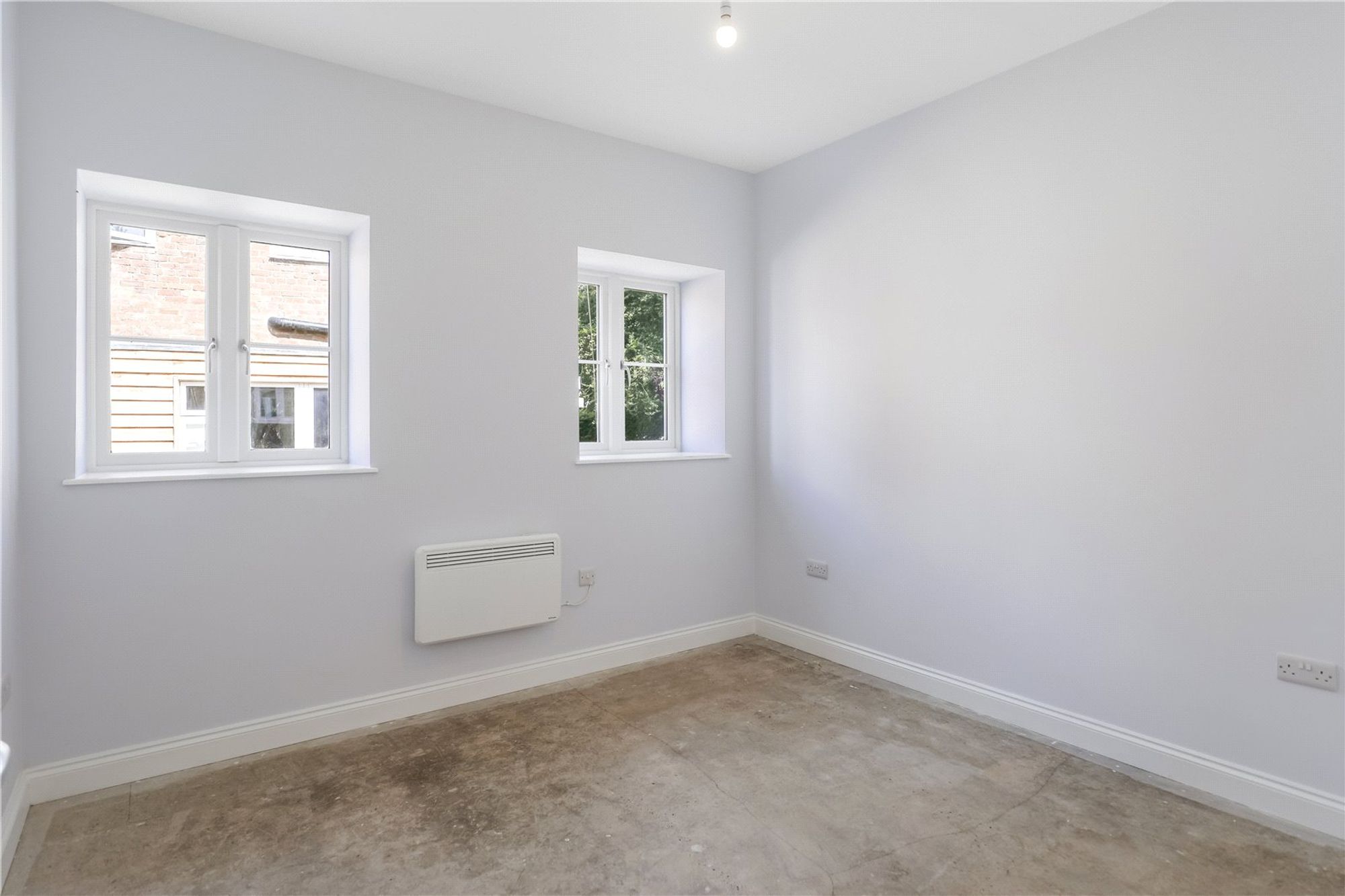 There are two well-proportioned bedrooms. The principal bedroom benefits from built-in wardrobe space and is further enhanced by an en-suite shower room fitted with a shower cubicle, wash hand basin, WC and heated towel rail. The second bedroom is also of good size and offers flexibility for use as a guest bedroom, home office or additional living space.