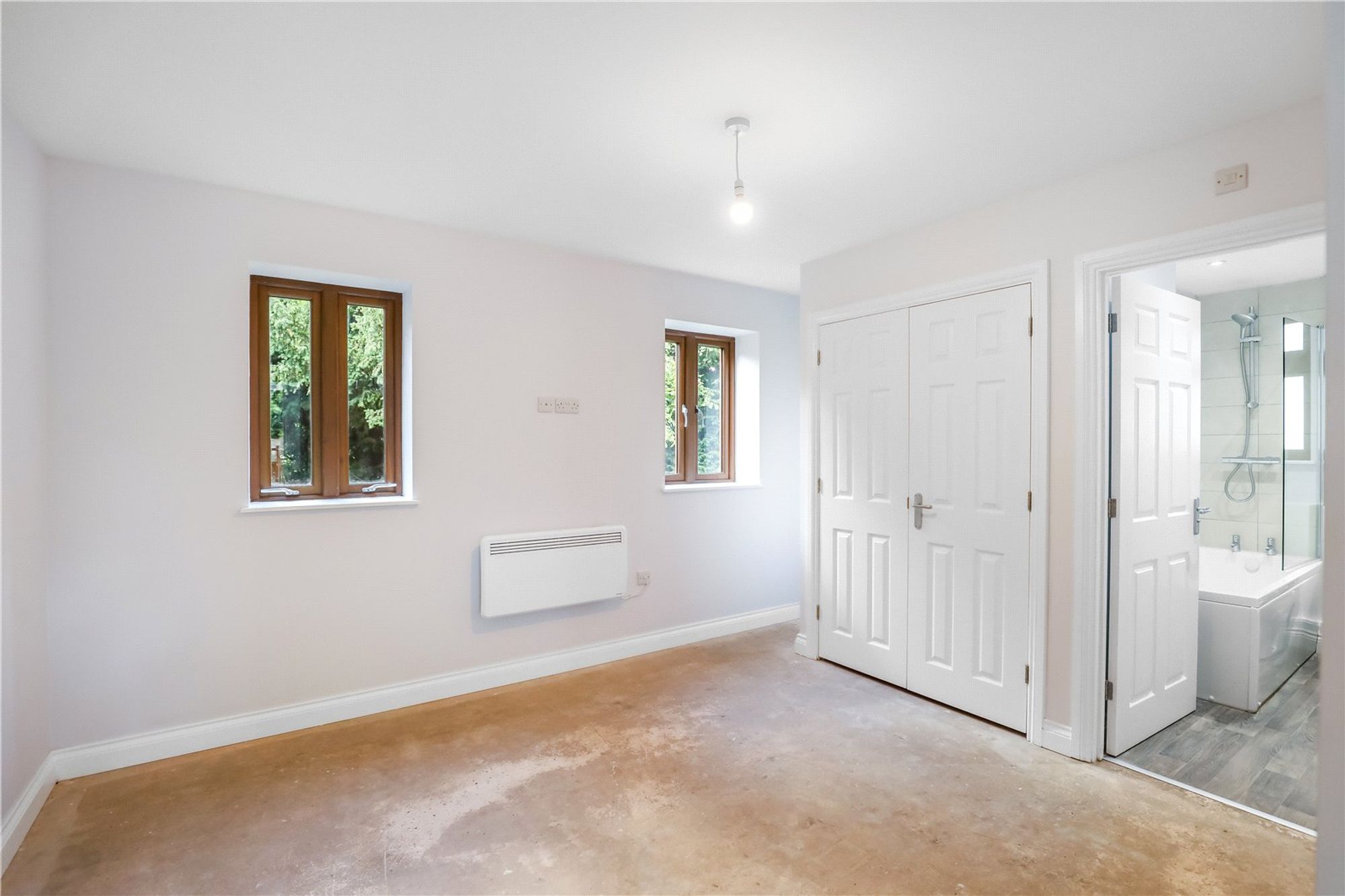 The second bedroom is also well-proportioned and benefits from its own en-suite bathroom, comprising of shower cubicle, wash hand basin, WC and heated towel rail, offering convenience and comfort for family members or guests.
