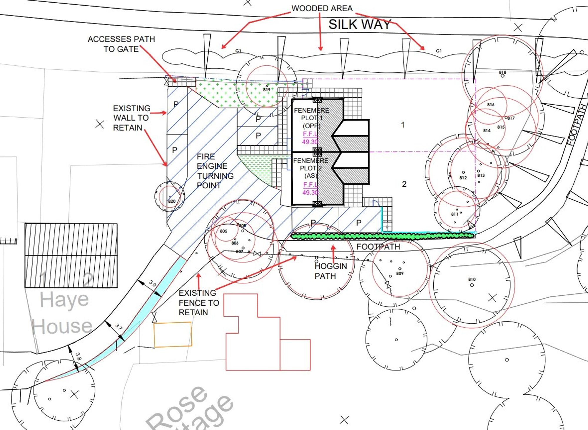 The extent of the title available to purchase is approximately 0.77 acres and includes a public footpath which has been taken in to account through the planning process.