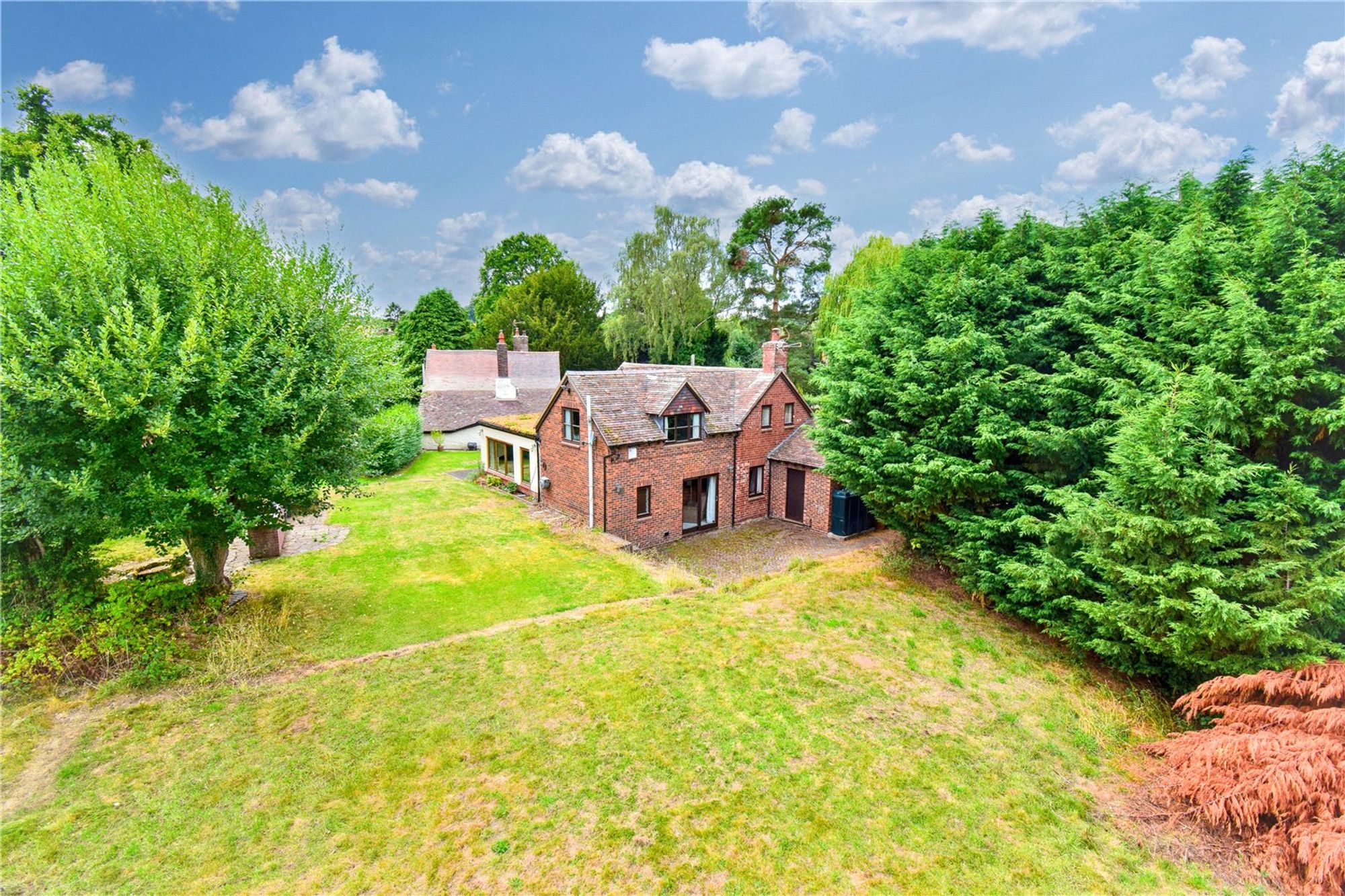Side access leads to the rear garden, which is predominantly laid to lawn and bordered by flowerbeds, mature trees, and established shrubs. The garden offers a high degree of privacy while still enjoying open views across the Severn Valley Railway and the picturesque countryside beyond.