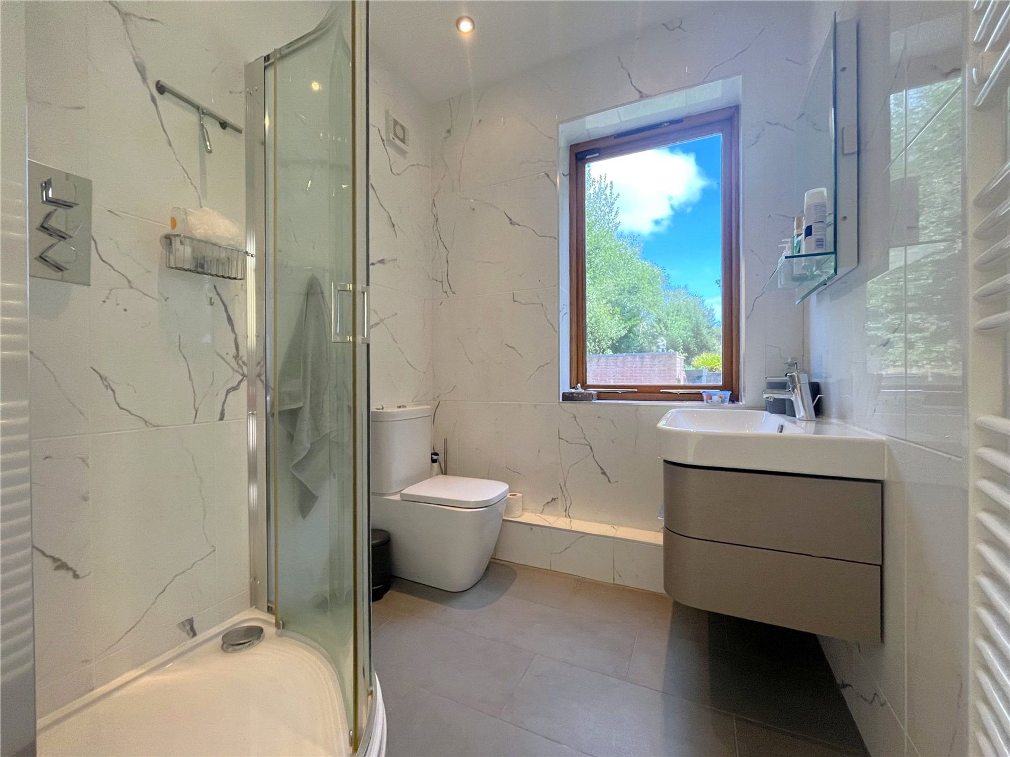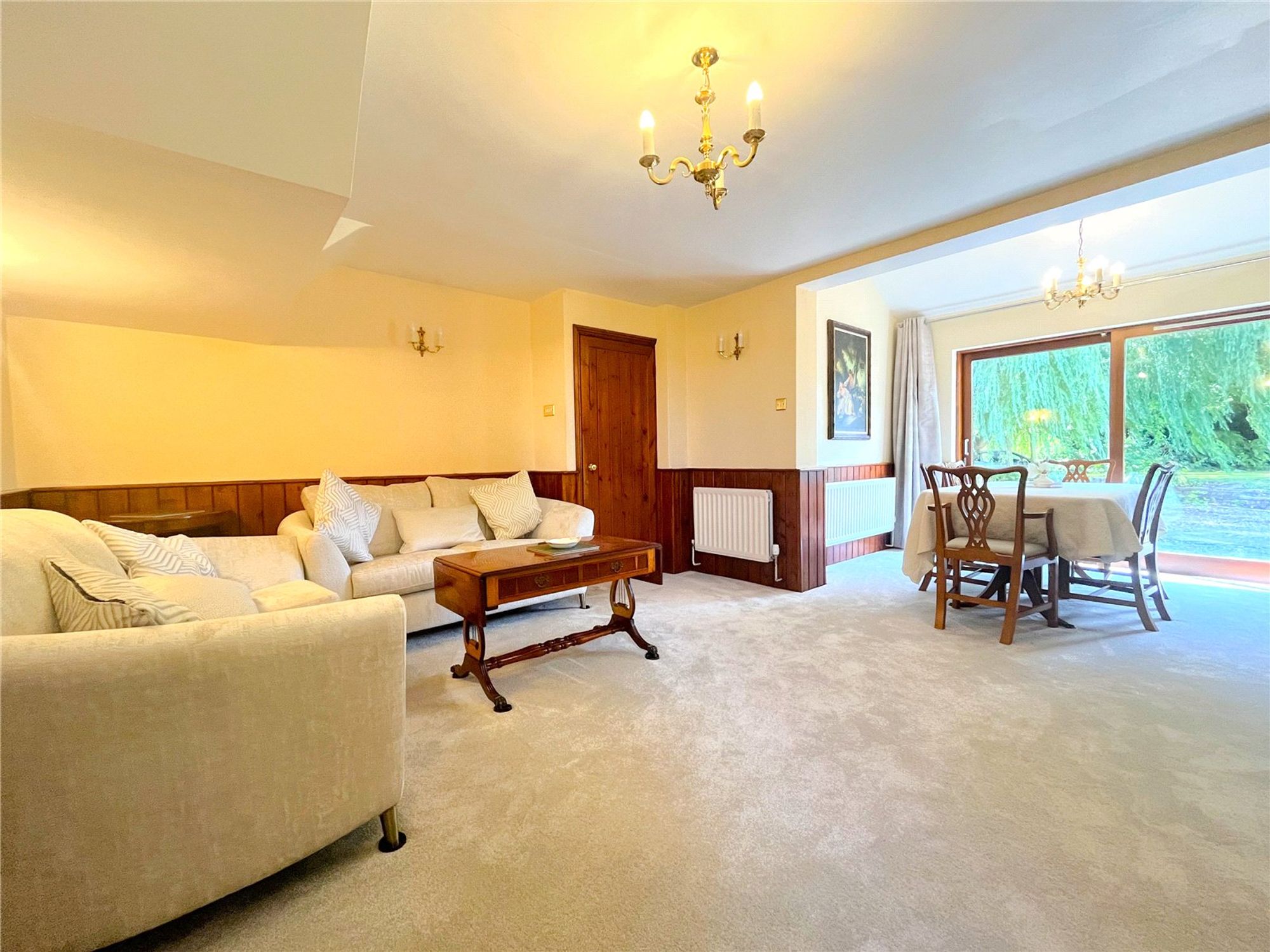 An open-plan, spacious lounge features a fireplace with an adjacent dining area enjoying sliding patio doors opening out to the front gardens. Adjoining the lounge is a versatile room that could serve as a ground floor bedroom or an additional reception room. This room benefits from an adjoining en-suite shower room.