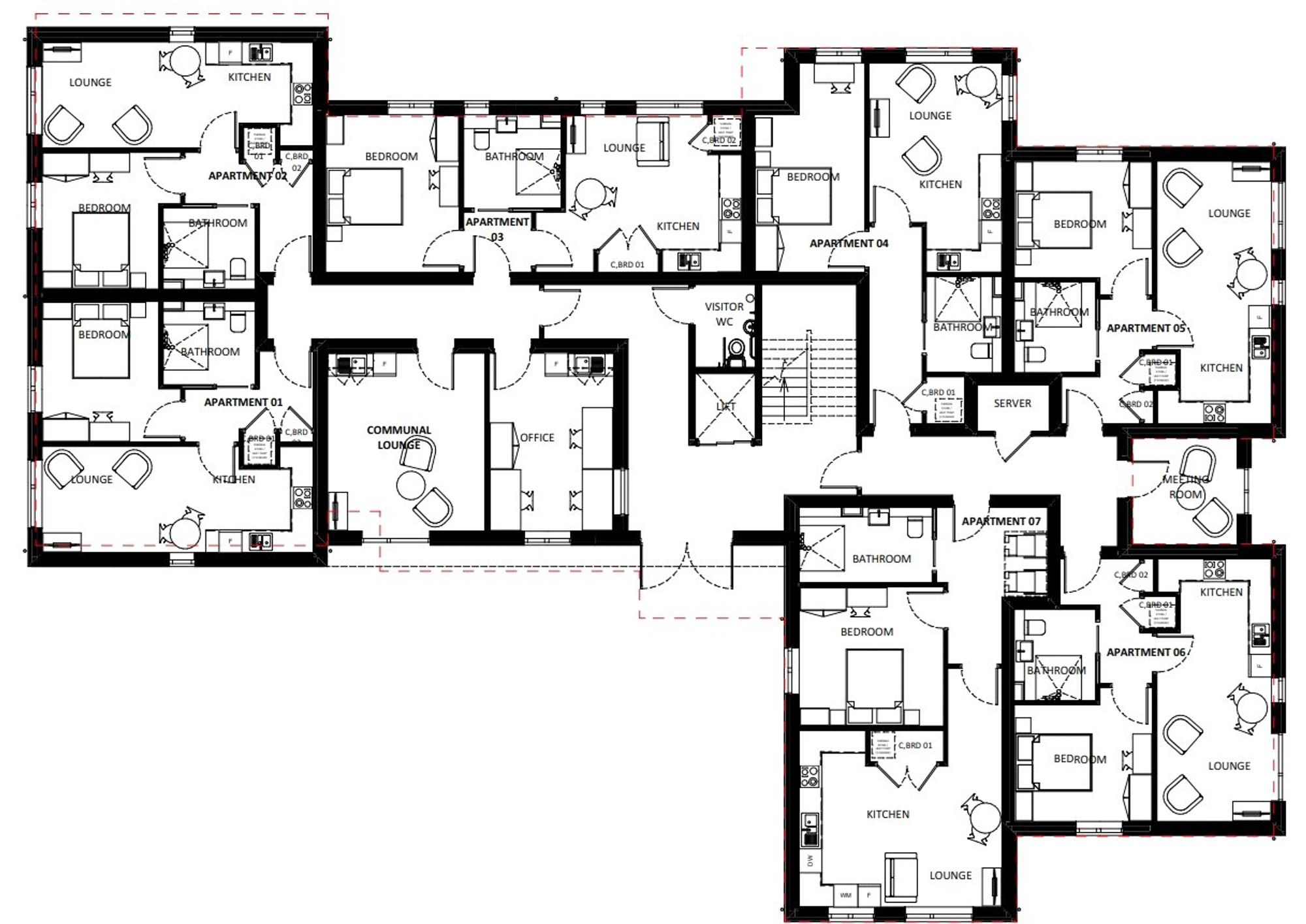 Included in the scheme is provision for 7 parking spaces, communal gardens, bike storage and bin storage.
