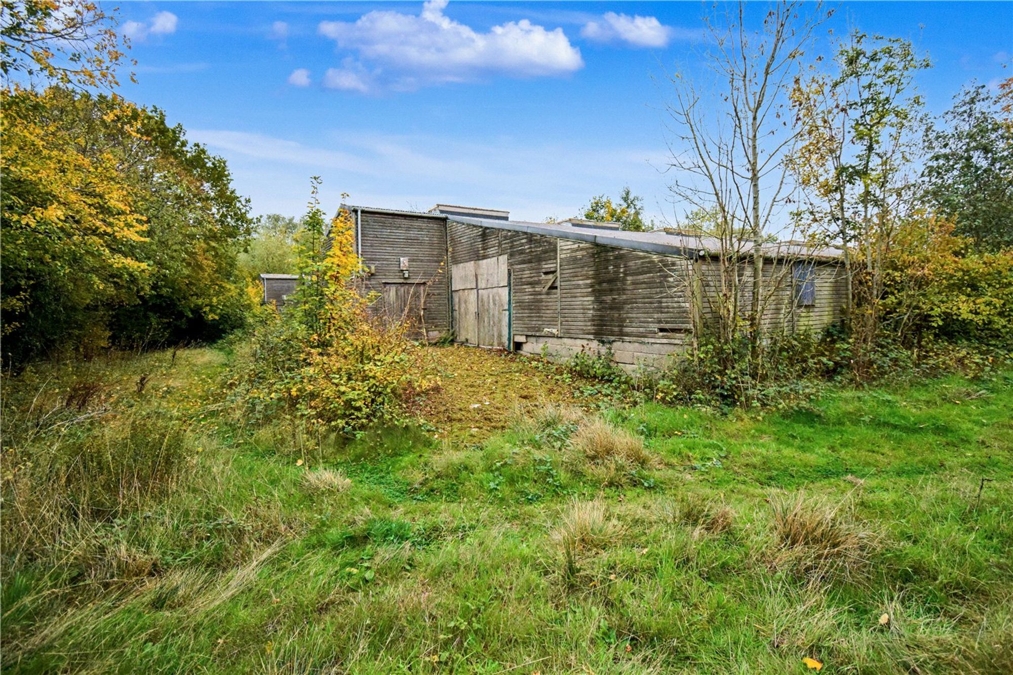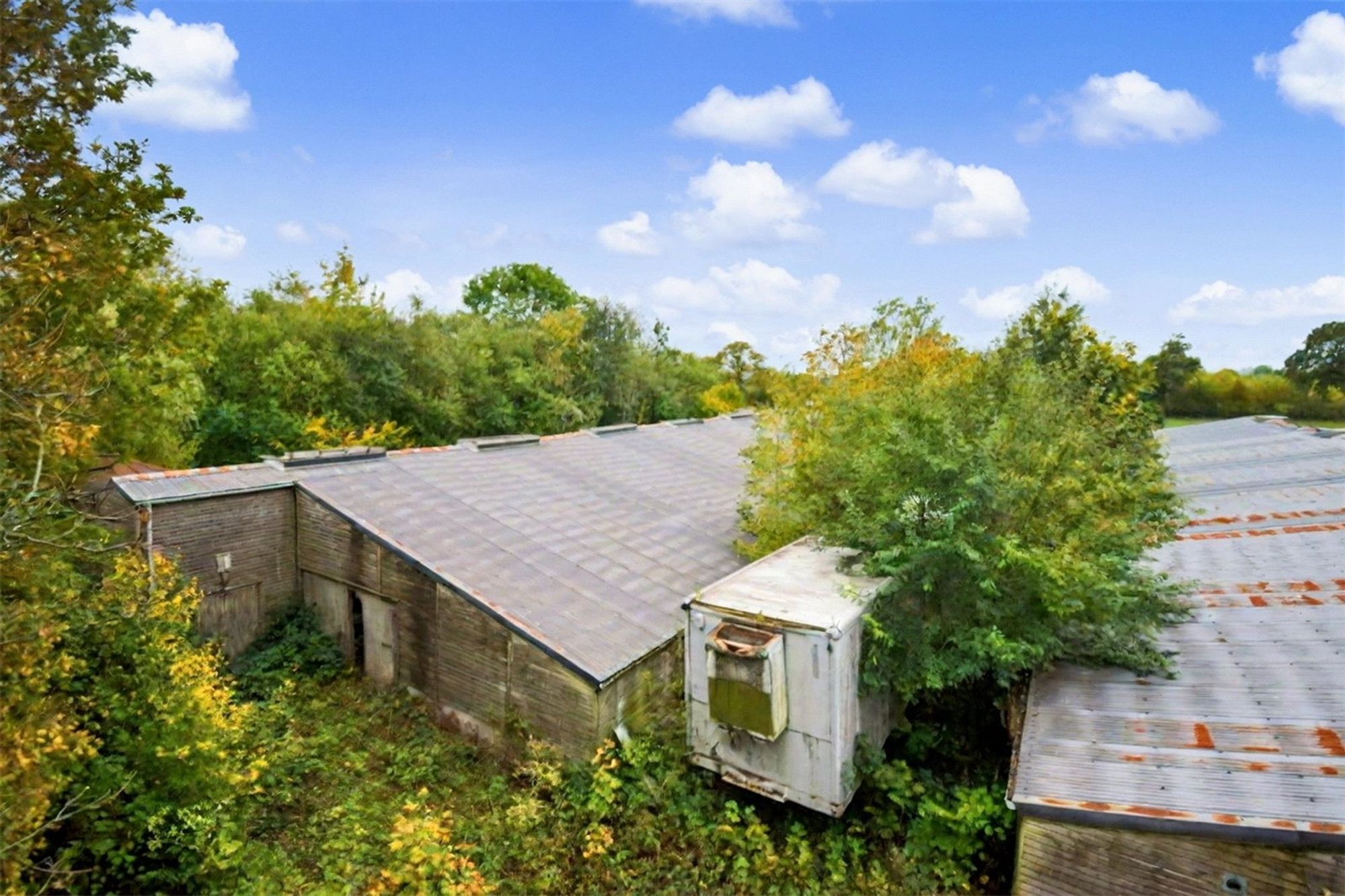 On this land stand two substantial former poultry sheds, each measuring in the region of 10,000 sq ft. Though now redundant, their skeletal volumes stand as testimony to the site’s former purpose and scale. Both buildings are sold in their current condition “as is” — the purchaser should note that they require significant repair or indeed removal; they may either be refurbished or replaced according to the buyer’s vision.
