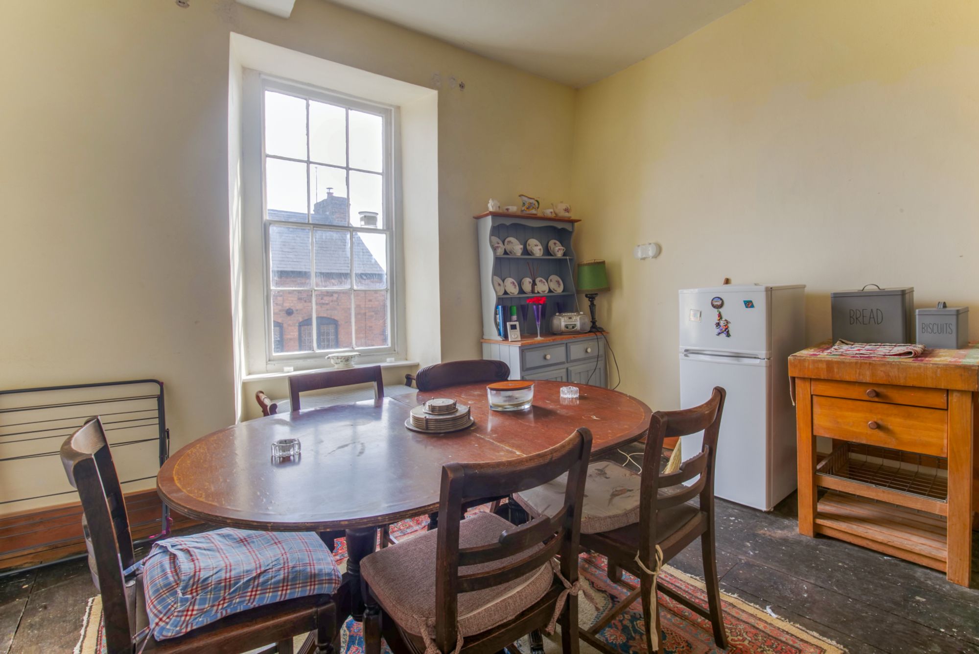 The second floor provides a spacious dining room with room for a large table and chairs, making it an ideal space for entertaining. Adjoining the dining room is the kitchen, fitted with base and wall units. A well-appointed shower room, complete with a corner shower, wash hand basin and WC, serves this level.