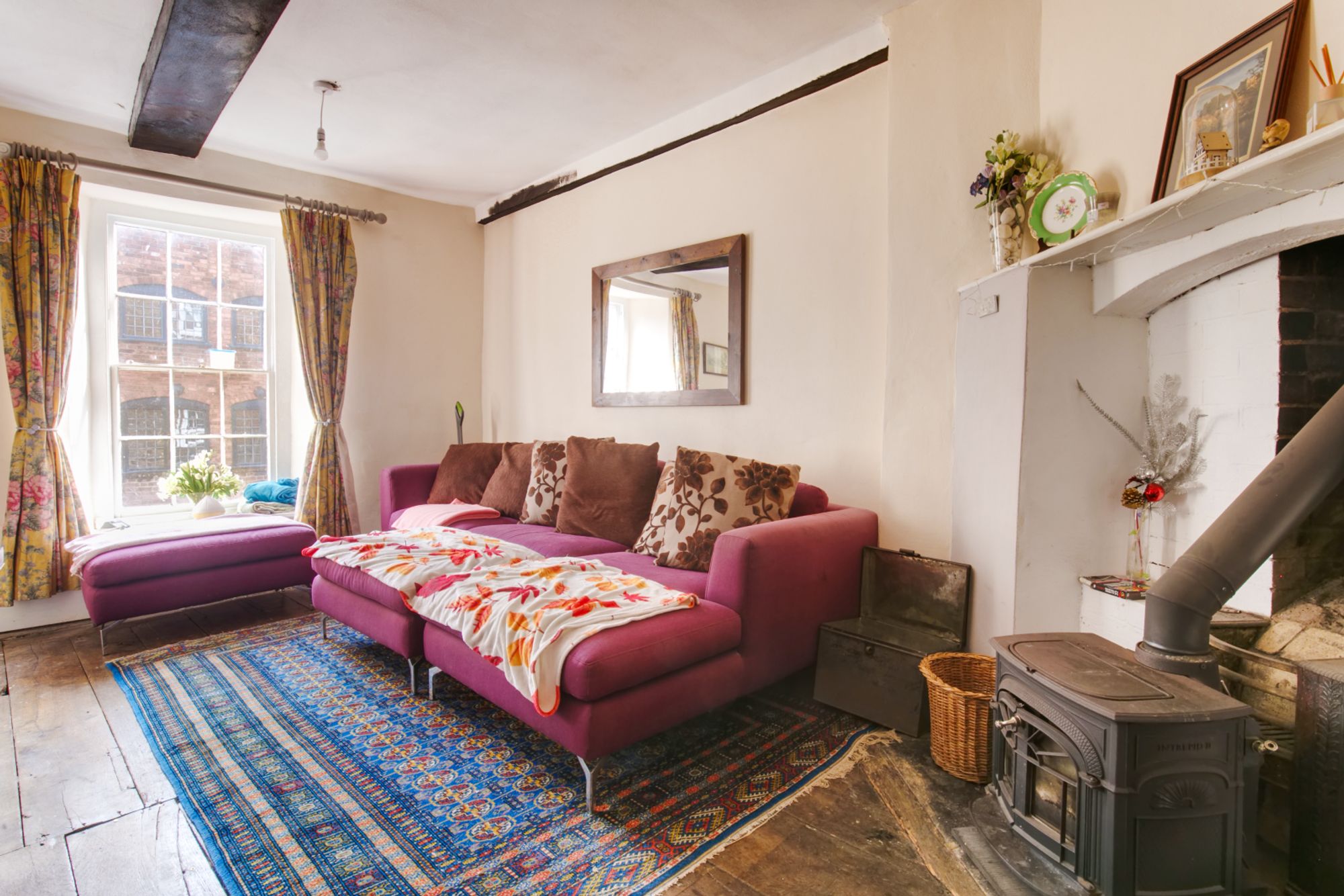 Upon entering the property, you are welcomed into a delightful sitting room featuring an abundance of character. Original timber floorboards, exposed ceiling beams and a wood-burning stove set within a traditional fireplace create a cosy and inviting space. A large sash window to the front elevation allows for ample natural light, complementing the period charm.