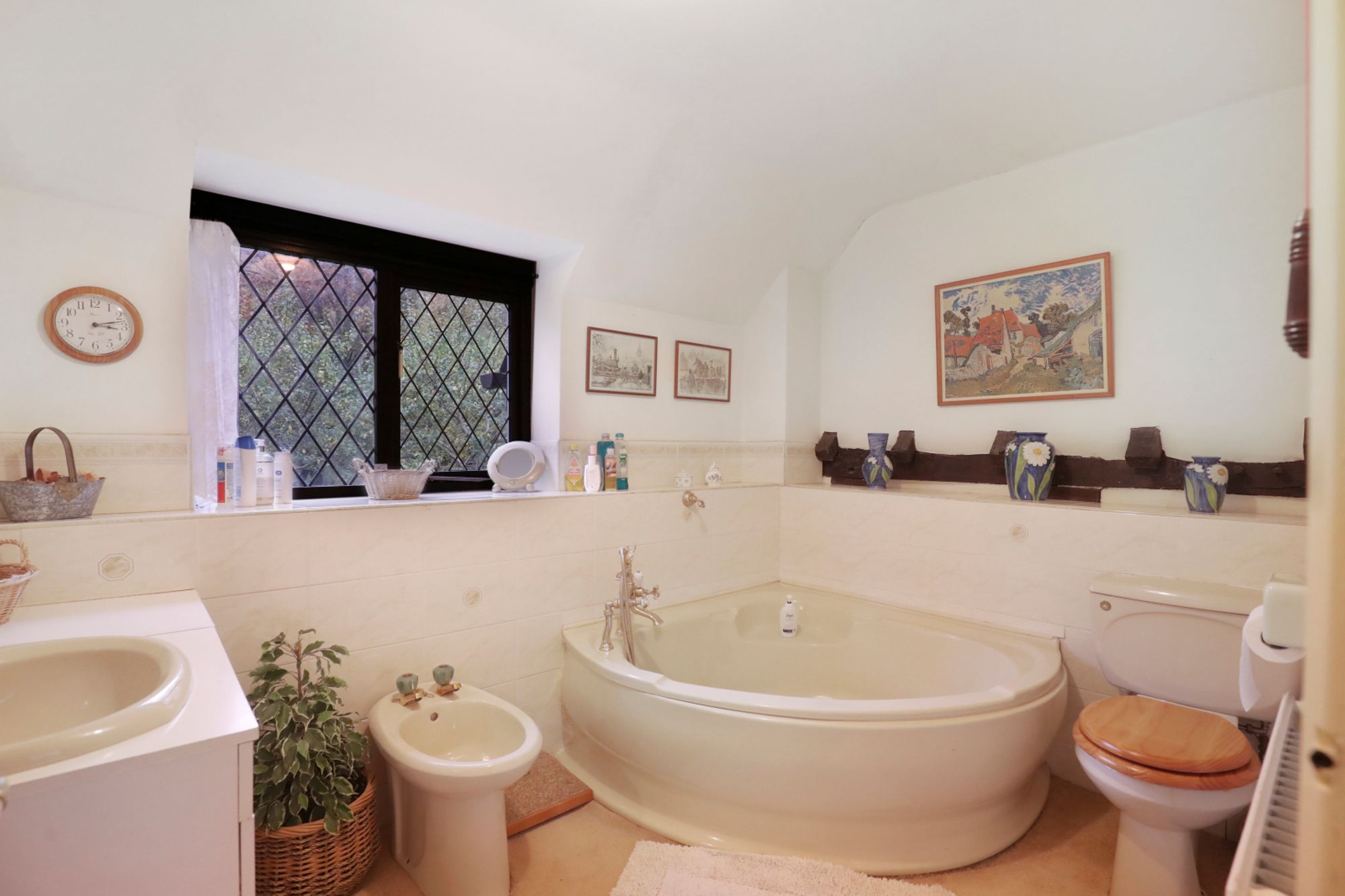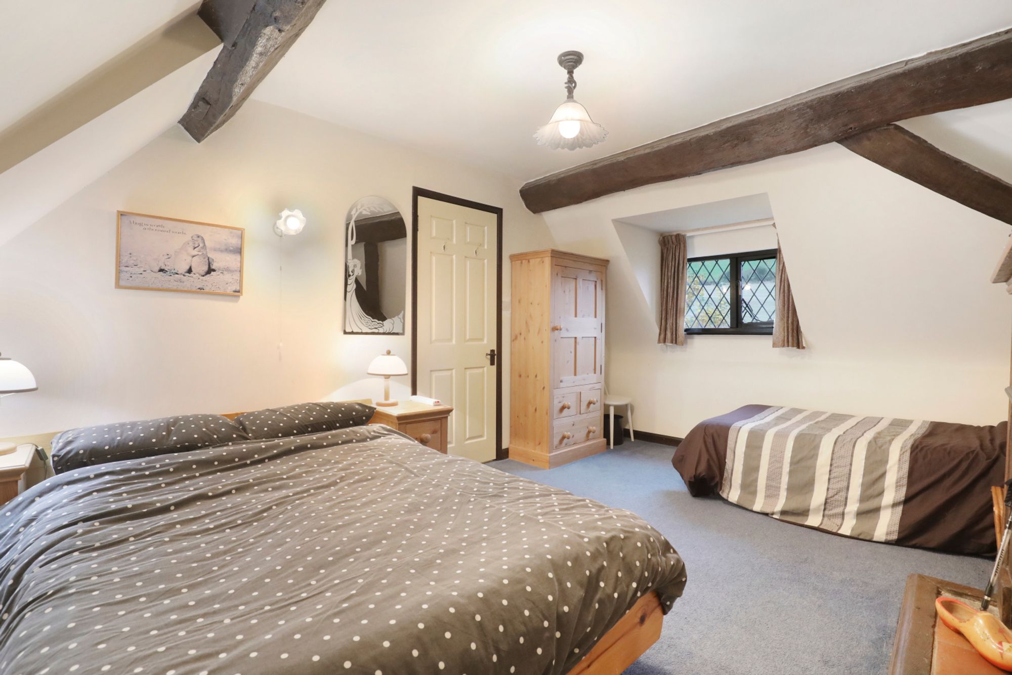 Upstairs, there are three beautifully appointed bedrooms, each filled with character and warmth. The principal bedroom features large fitted wardrobes and an ensuite bathroom with a deep soaking tub, a separate shower, and classic fixtures, designed to provide a private retreat with countryside views that create a sense of calmness. The two additional bedrooms are equally charming, each with its own unique views and ample storage. Both rooms are generously proportioned and filled with natural light, making them comfortable and adaptable spaces, whether for family members or as guest rooms. (There’s ample space in the large open loft area to add 2 further bedrooms if required).