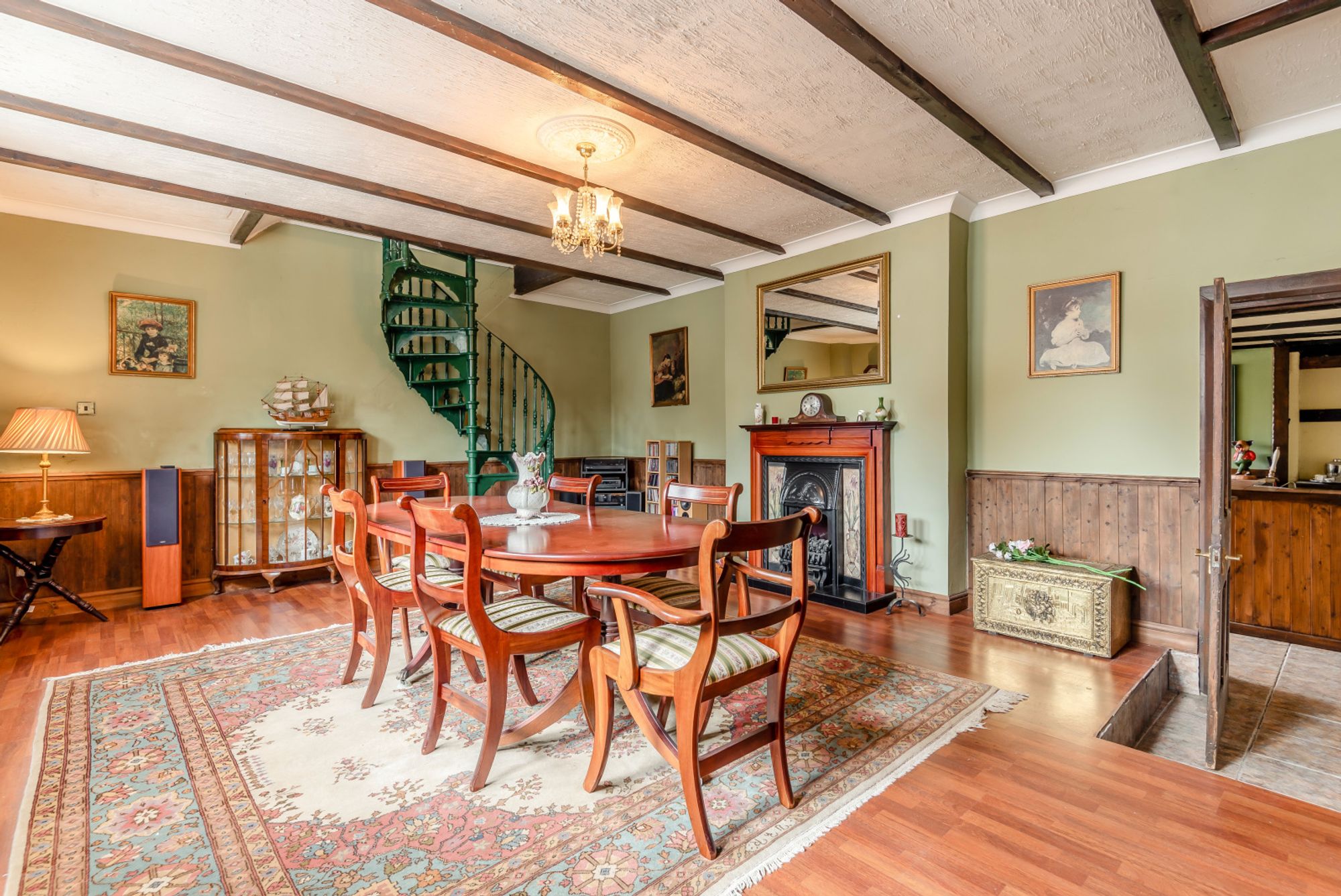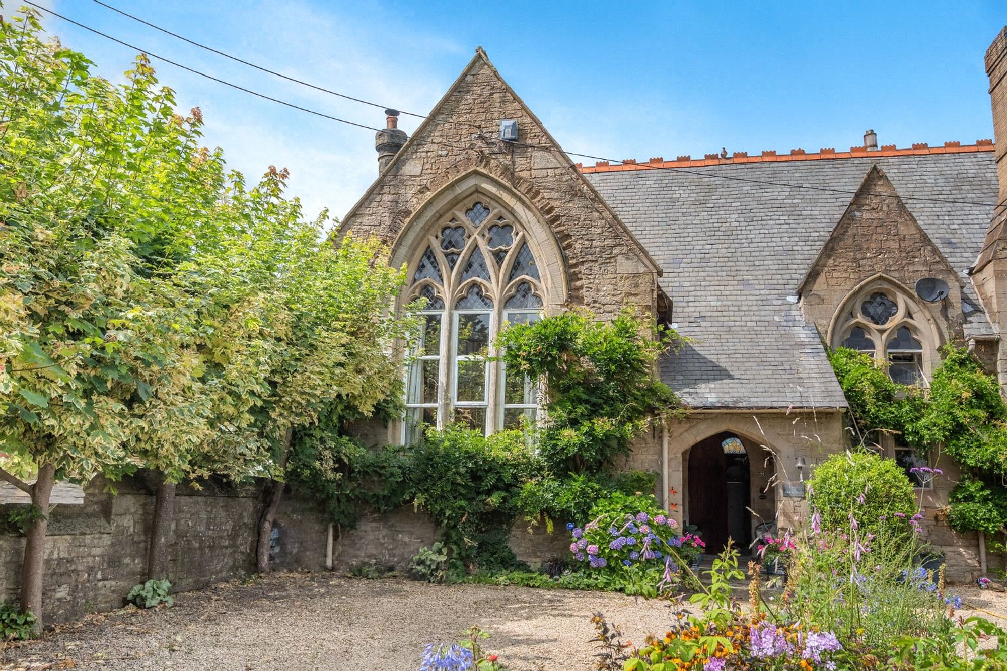 This striking former school building offers a rare opportunity to acquire a unique character home steeped in history. Retaining many original Gothic-style features, the property boasts impressive stonework, arched windows, exposed beams and spacious accommodation arranged over two floors. Set in a private position behind wrought-iron gates, it enjoys mature gardens, generous parking and the benefit of versatile outbuildings.The property is entered via a welcoming hallway which leads into the main living room. This charming space is arranged on split levels, with exposed timber beams overhead and a feature brick fireplace housing a wood-burning stove. Steps rise to the kitchen area, which is fitted with traditional units, work surfaces and space for appliances. From the kitchen, a door opens into the formal dining room – a spacious and elegant reception area with wood flooring, a period fireplace and a decorative spiral staircase leading to the first floor. This room is ideal for entertaining and enjoys views over the gardens.The landing provides access to three bedrooms. The principal bedroom is generously proportioned, with attractive arched windows and exposed roof timbers adding character. The further two bedrooms offer flexibility for guests, family or home office use. A family bathroom and a separate WC complete the accommodation on this level.The property is approached through wrought-iron gates opening to a gravelled driveway providing ample parking. The gardens are beautifully planted with an abundance of colourful flowers, shrubs and established trees, creating a delightful, private setting. Two useful outbuildings offer excellent storage or workshop space, with potential for a variety of uses subject to any necessary consents.Buyers Compliance Administration Fee: In accordance with The Money Laundering Regulations 2007, Agents are required to carry out due diligence on all Clients to confirm their identity, including eventual buyers of a property. The Agents use electronic verification system to verify Clients’ identity. This is not a credit check so will have no effect on credit history though may check details you supply against any particulars on any database to which they have access. By placing an offer on a property, you agree that if your offer is accepted, subject to contract, we as Agents for the seller can complete this check for a fee of £75 inc VAT (£62.50 + VAT) per property transaction, non-refundable under any circumstance. A record of the search will be retained by the Agents