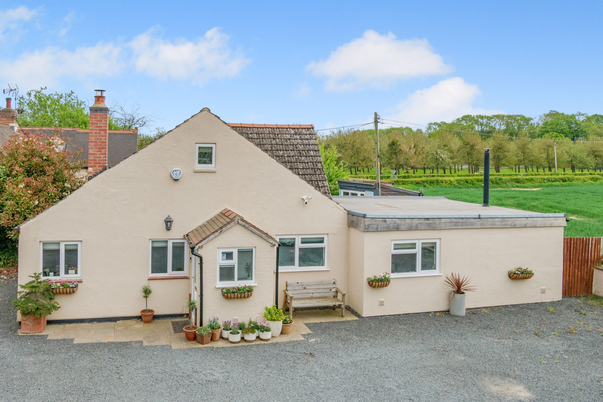 Lynch Cottage is approached via a brick wall which opens onto a large gravelled driveway, providing ample parking for multiple vehicles. The front of the property is smartly presented with a collection of potted plants and wall-mounted floral baskets creating a welcoming feel.