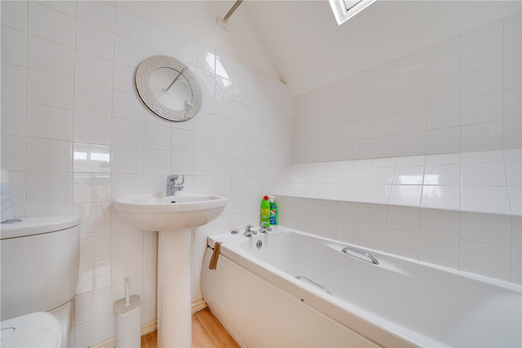 On the first floor there are three bedrooms, including a well-sized principal room, along with two further bedrooms that provide flexibility for use as family rooms, guest accommodation, or a home office. The family bathroom is fitted with a white suite comprising bath, wash hand basin and WC, complemented by neutral tiling.