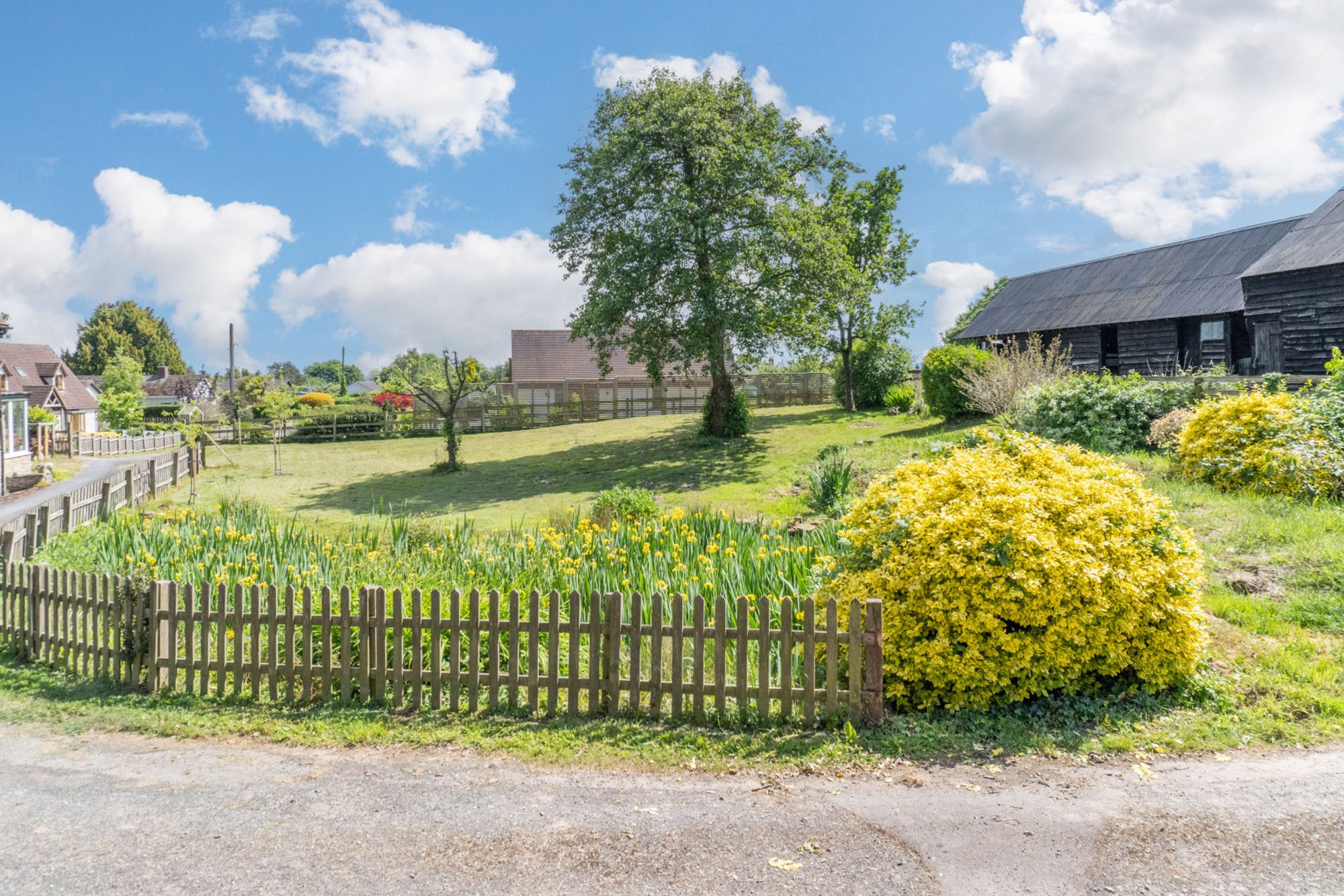 Outside, a gravelled driveway leads to the house, providing ample parking. The total plot extends to approximately 0.6 of an acre. The front garden has a mature wildlife pond featuring ample plants and the rest of the frontage is predominantly laid to lawn with a couple of mature trees and bordered by fencing and plants.