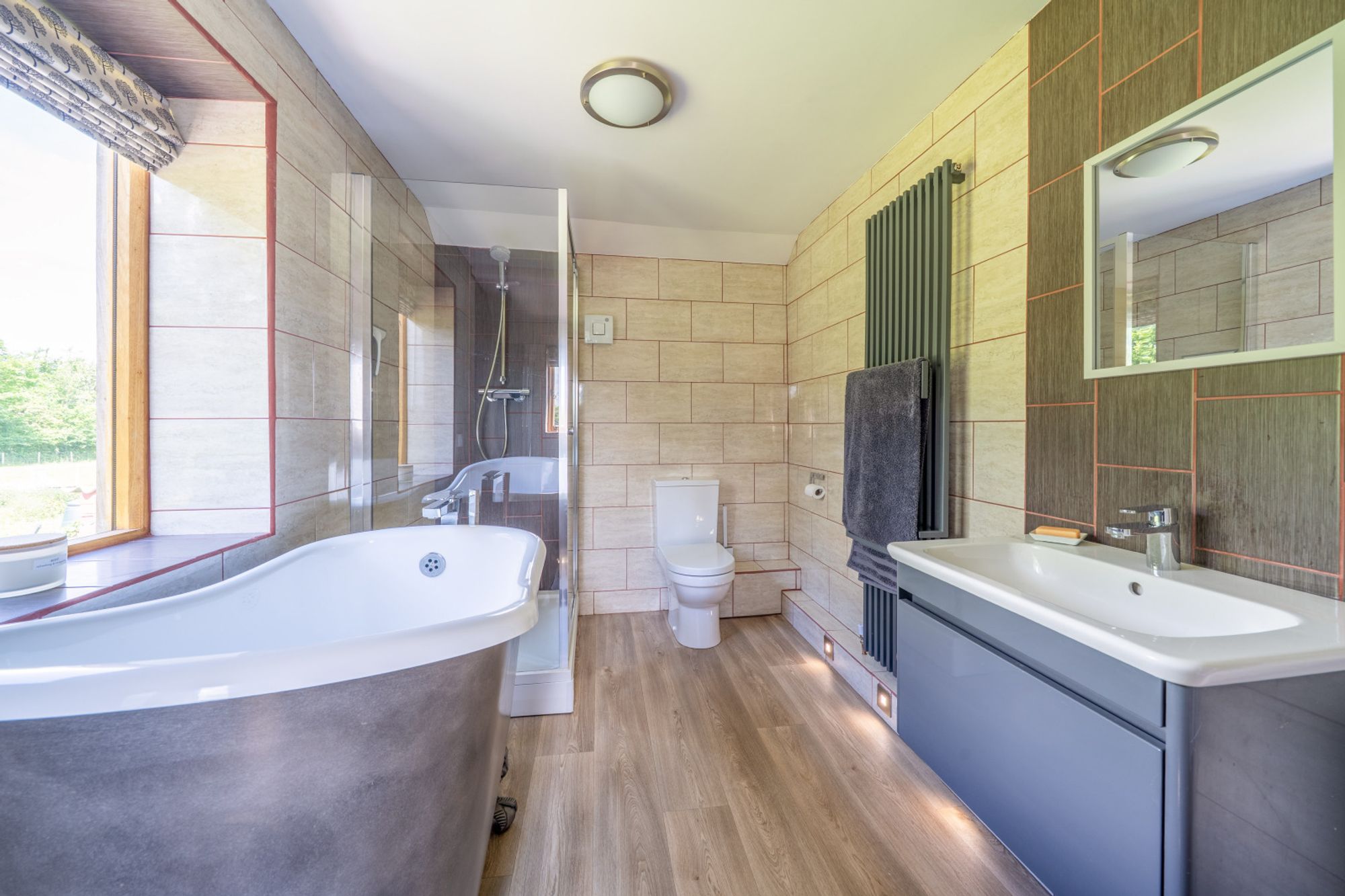 A utility room is conveniently located off the kitchen, offering another sink, worktop space, room for appliances and door to outside. Adjacent to this is a modern ground floor shower room with WC.