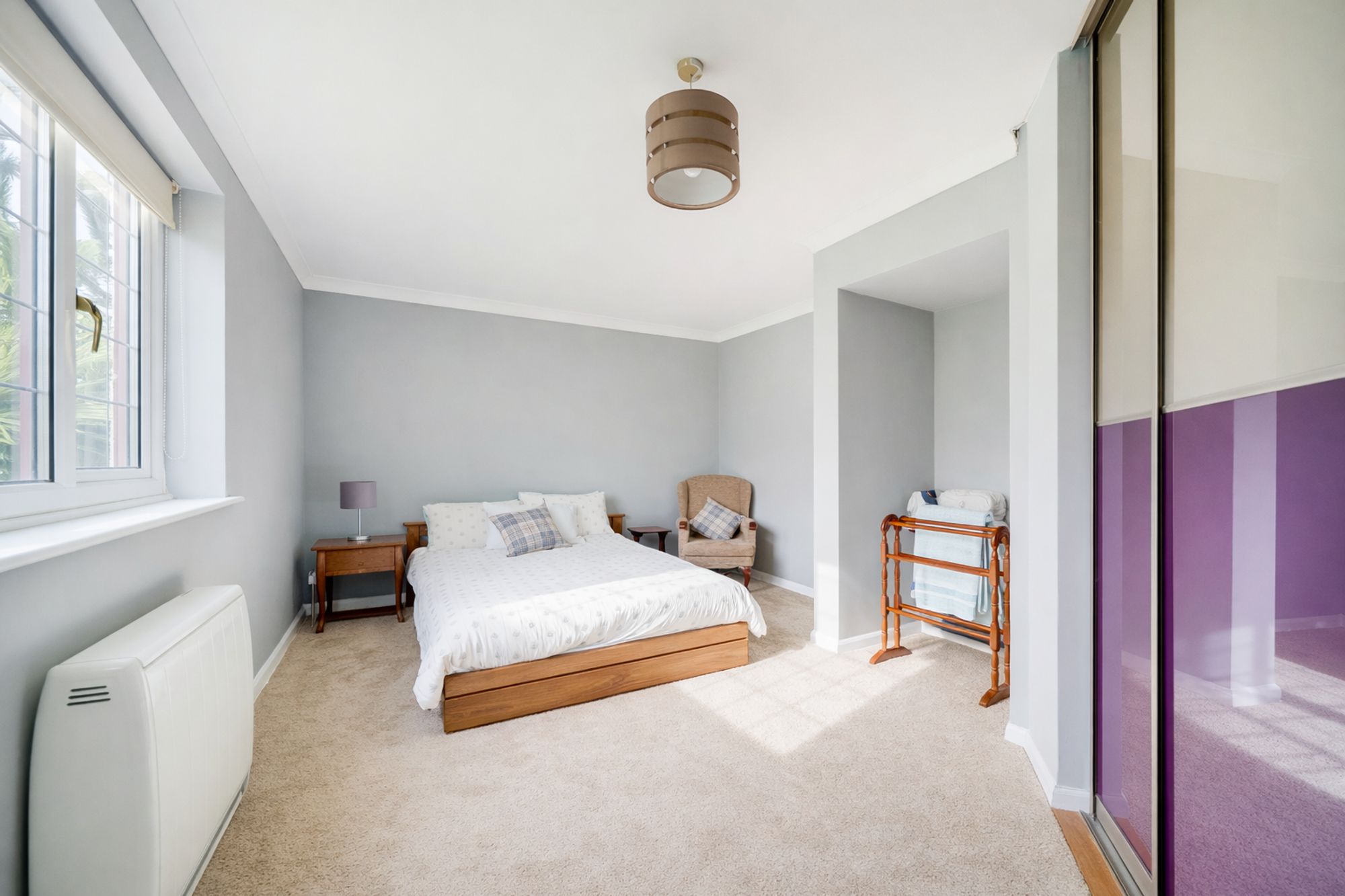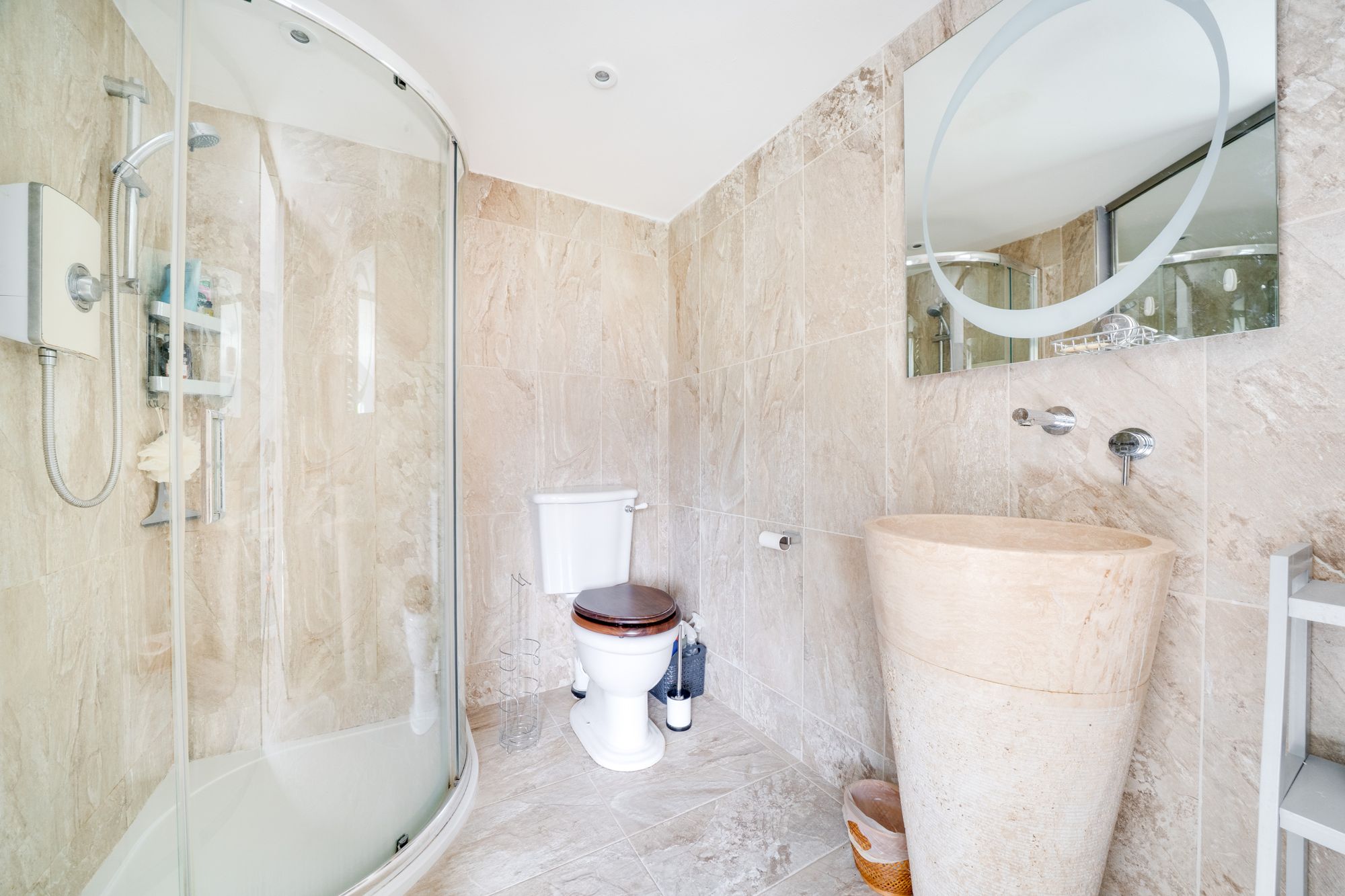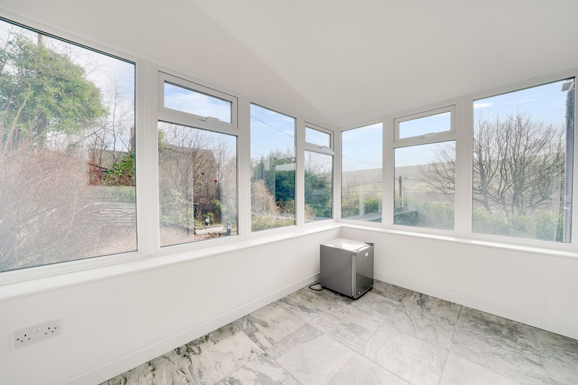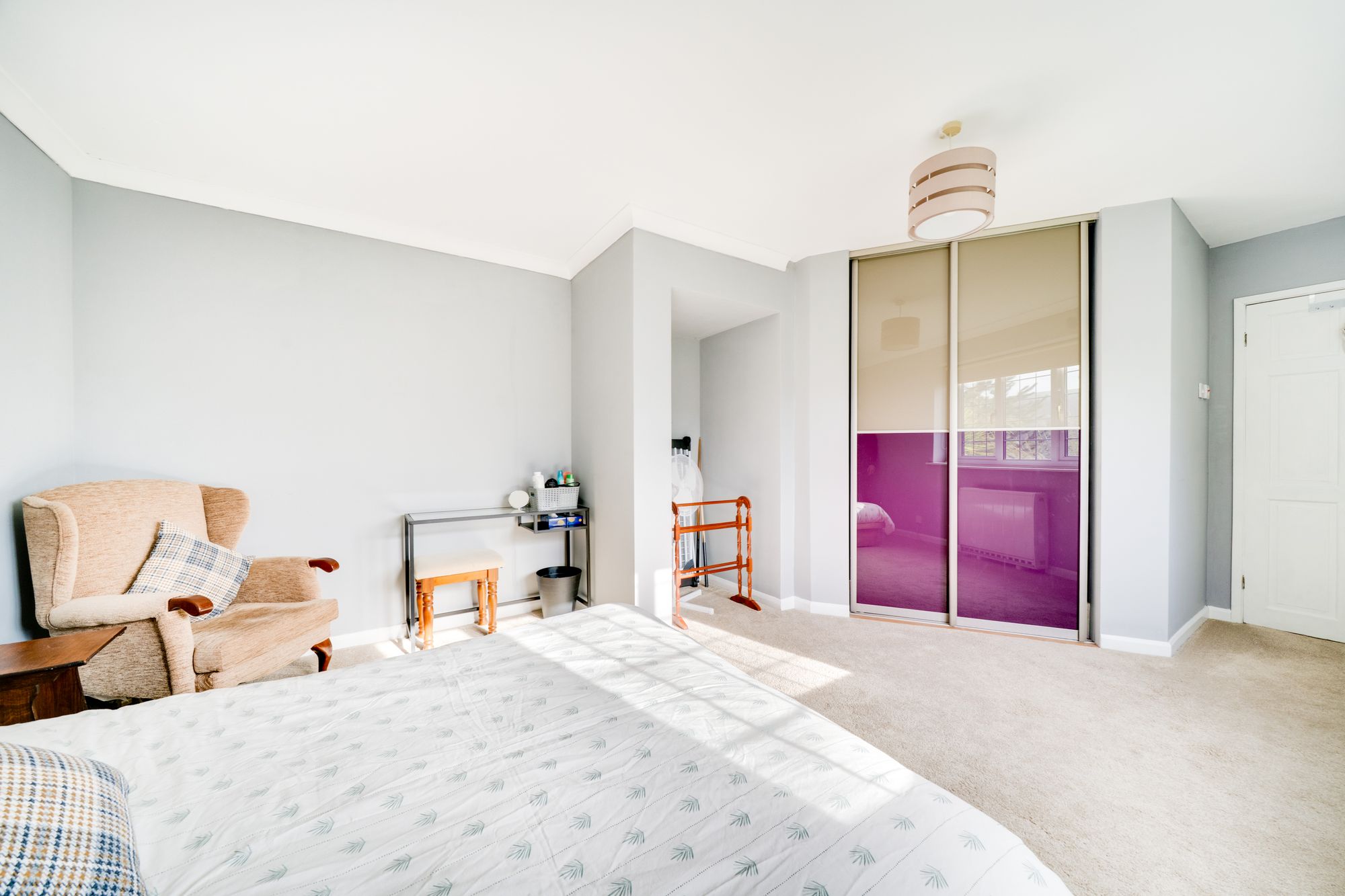 The property is approached via a driveway providing ample parking before reaching the entrance. Stepping inside, the ground floor offers versatile accommodation including a spacious double bedroom. The room features a useful alcove where fitted storage could be installed if desired and is served by an en-suite shower room, creating an ideal arrangement for guests or multi-generational living. Also located on this level is a conservatory, which overlooks the garden and could easily form part of a comfortable downstairs suite.