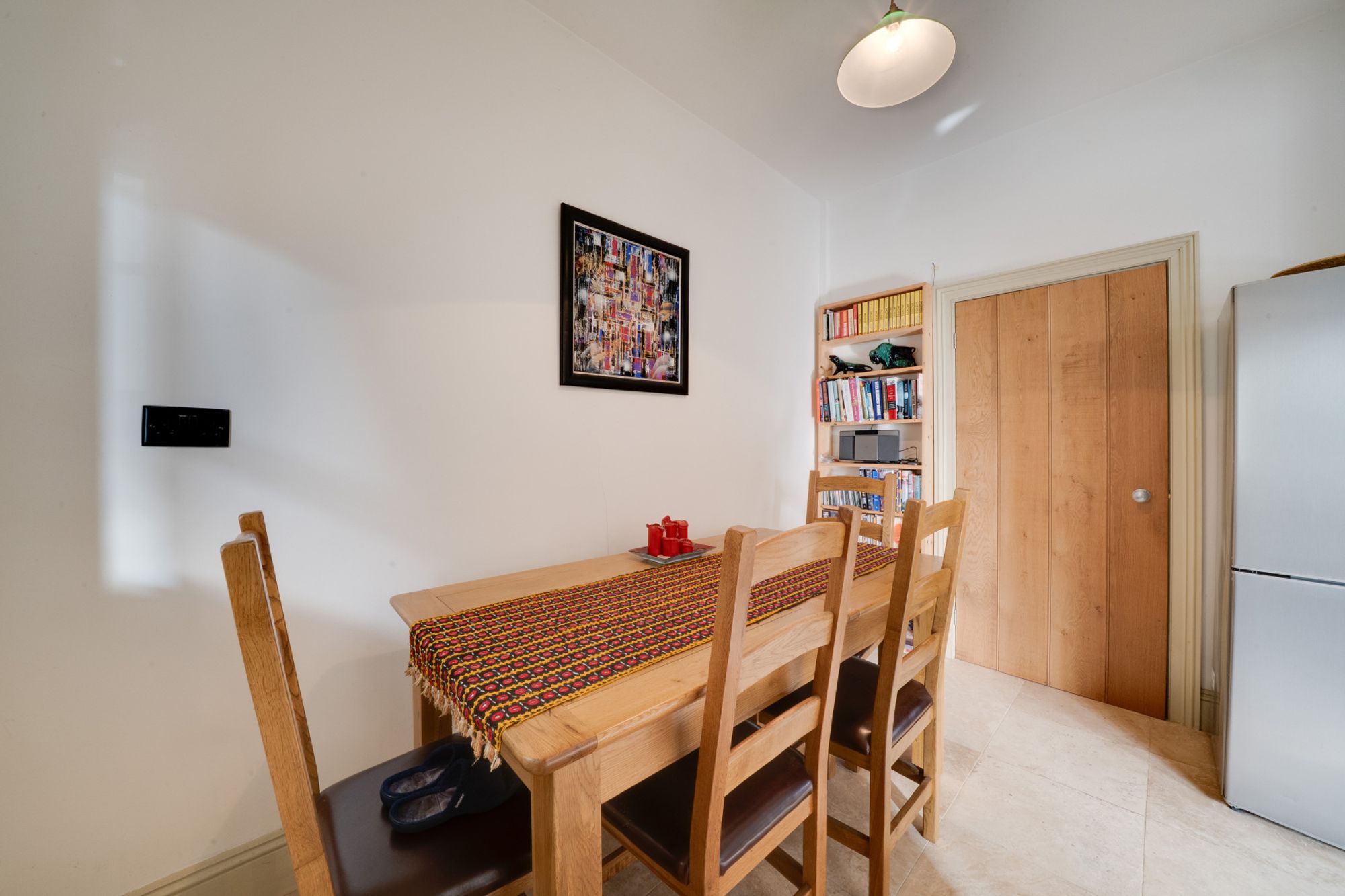 The sitting room is cosy and inviting, with tongue-and-groove style panelling and storage beneath the stairs. A cloakroom and utility room provide further practicality, with the latter giving access to the rear.