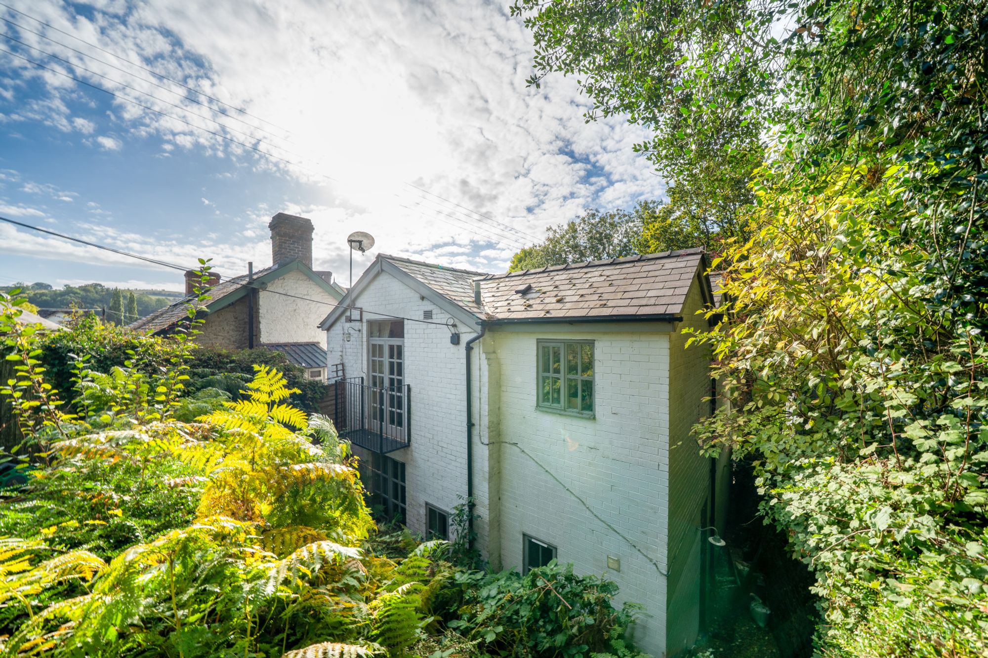 Steps lead to the rear garden, which sits at first-floor level. Mostly laid to lawn, the garden is private and enjoys a tranquil outlook towards the surrounding countryside.